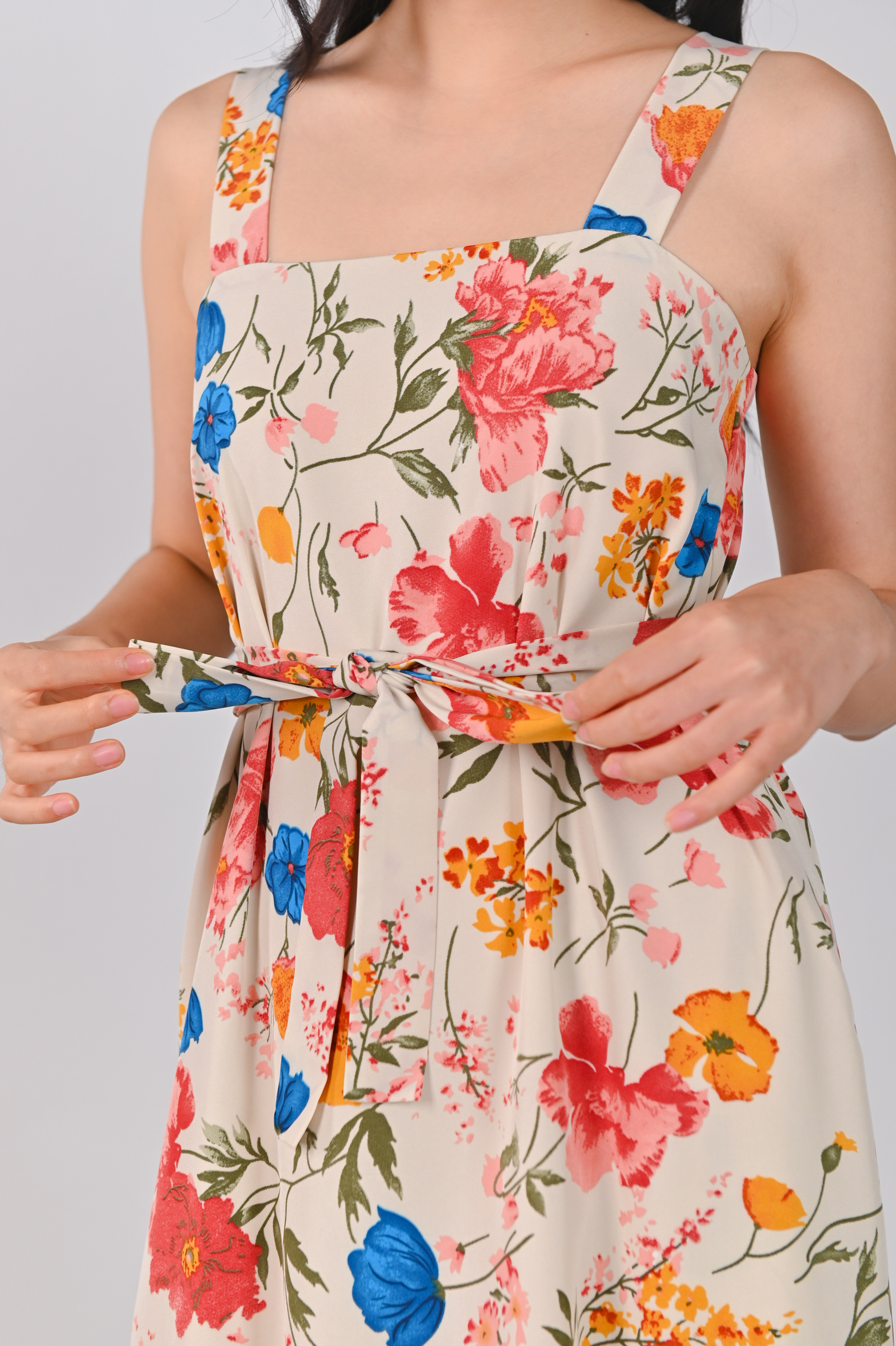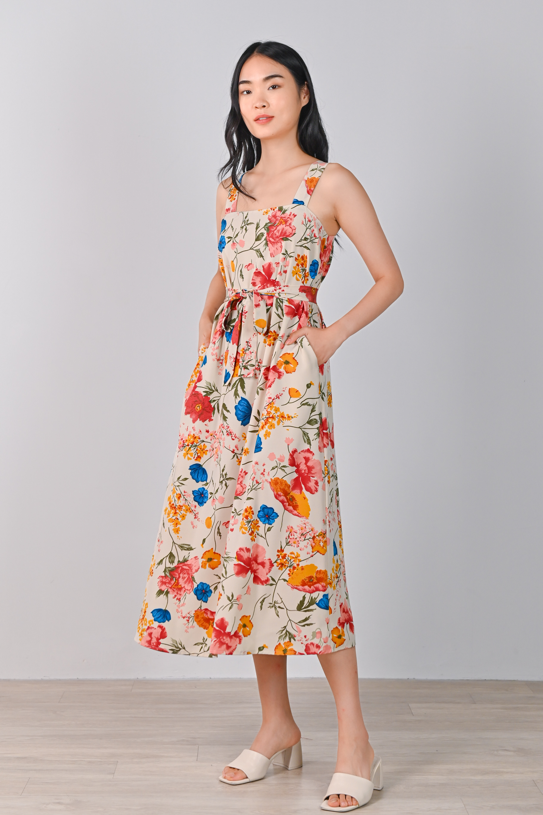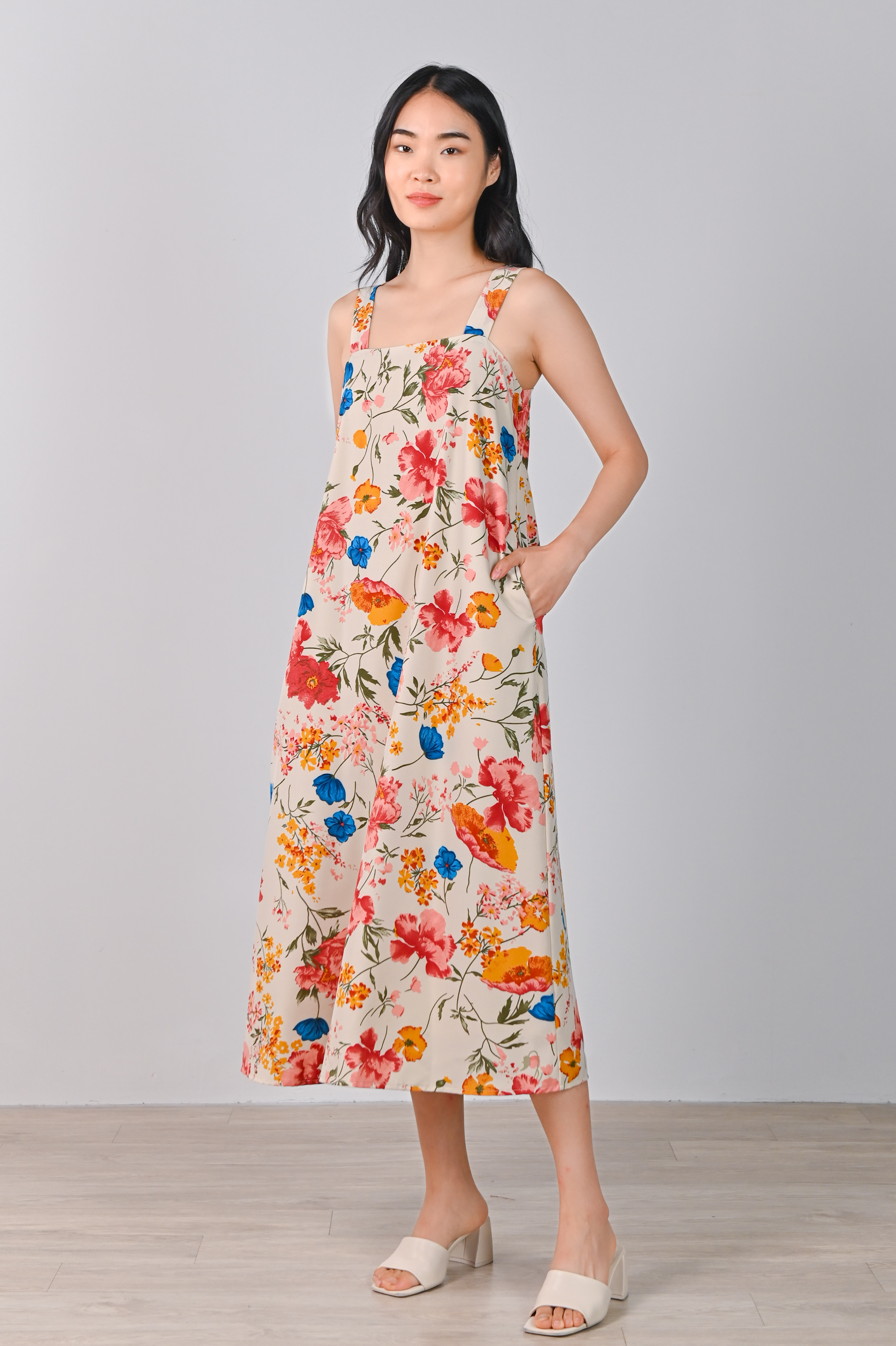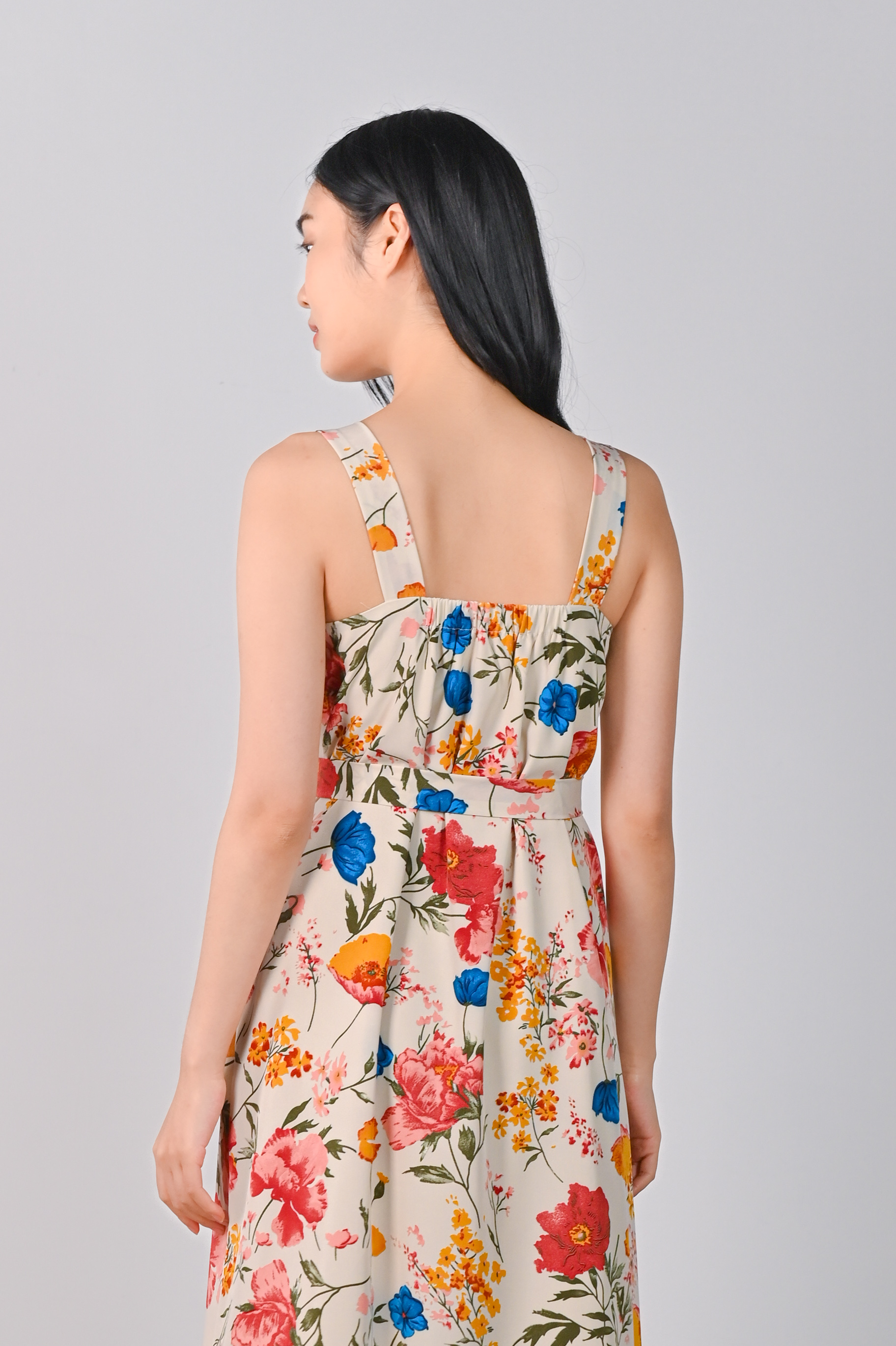 FREESIA THICK-STRAP MIDAXI IN CREAM FLORAL