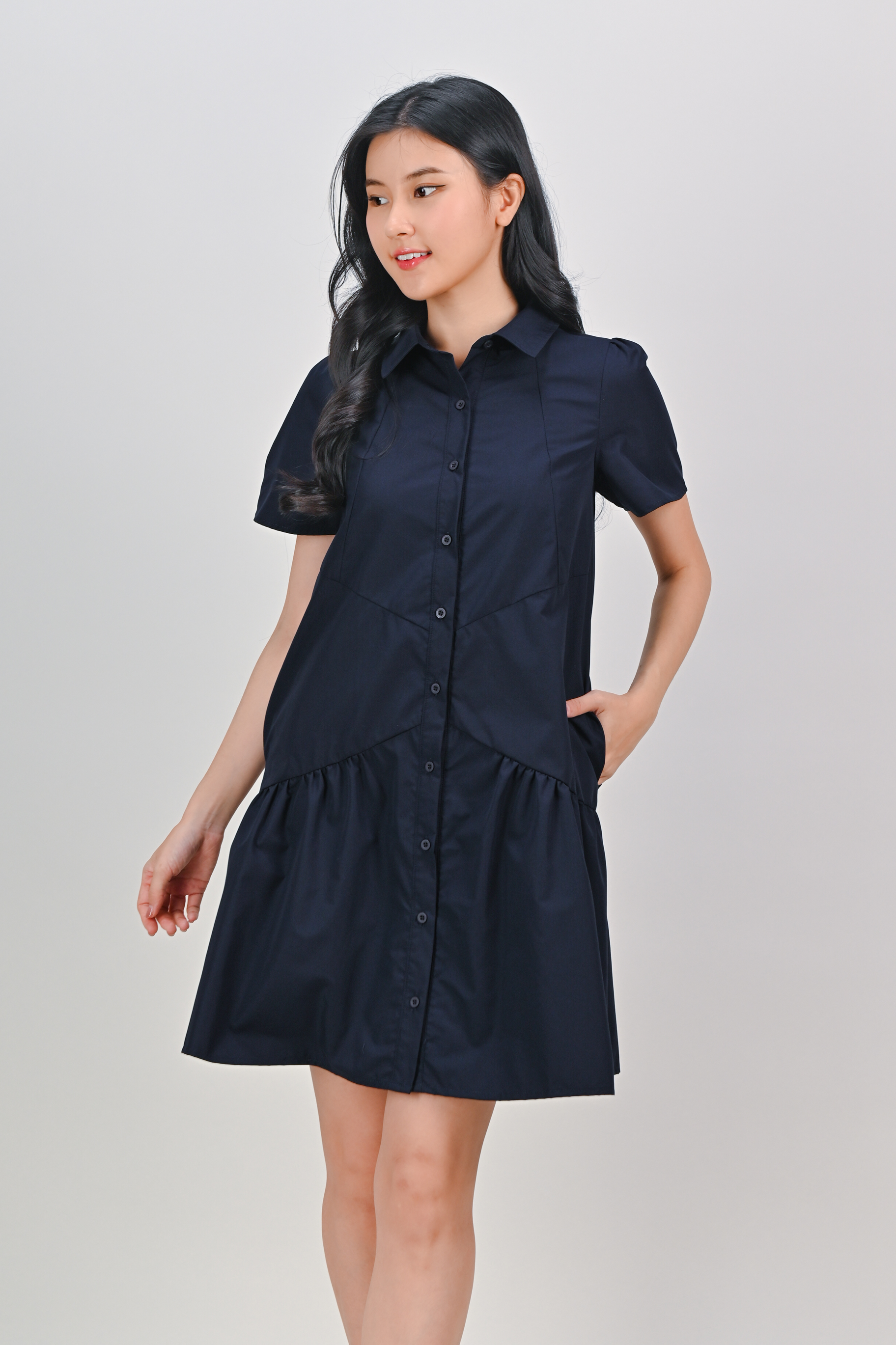 GADOT FLOUNCE SHIRTDRESS IN NAVY