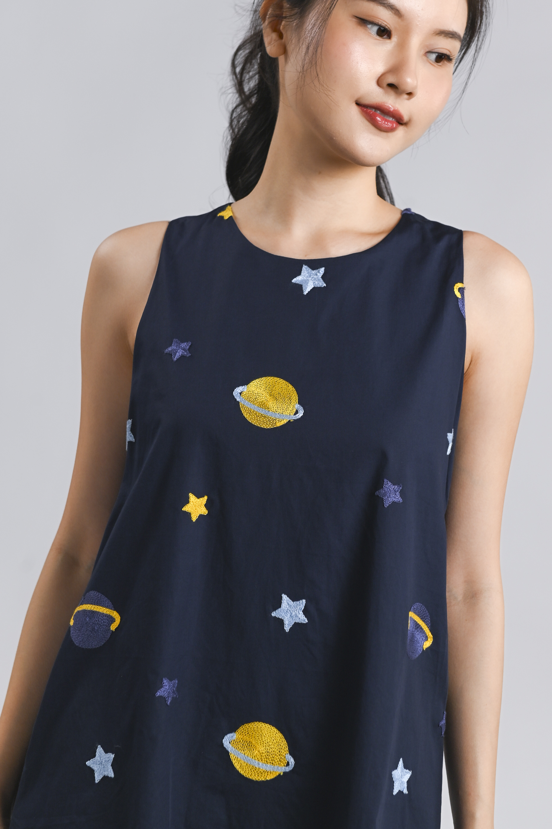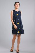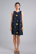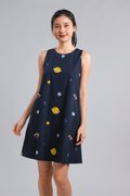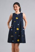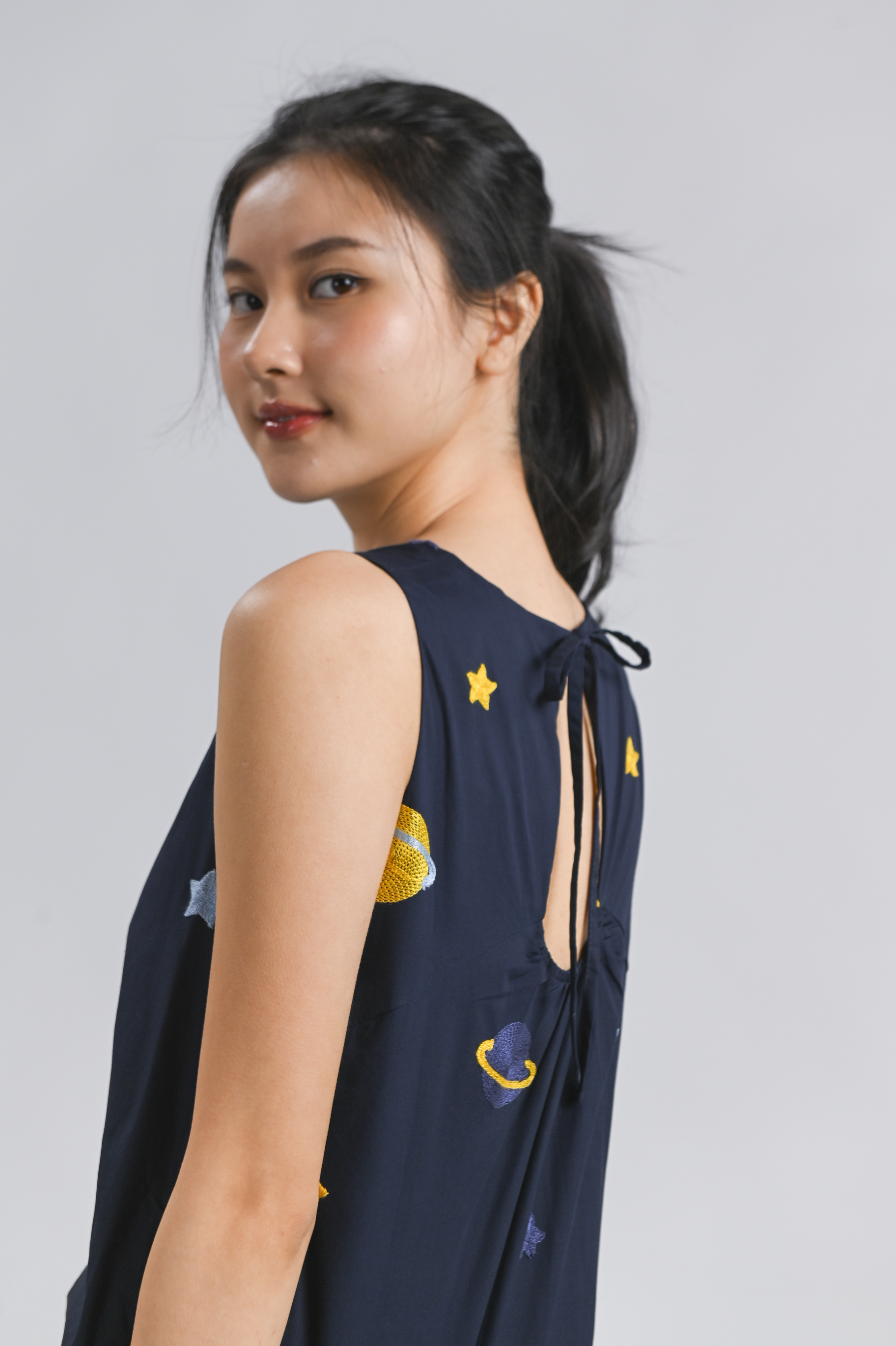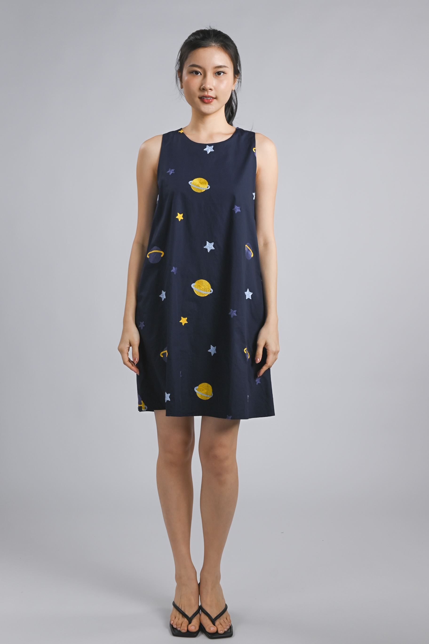 GALAXY EMB. CUT-OUT BACK A-LINE DRESS IN NAVY
