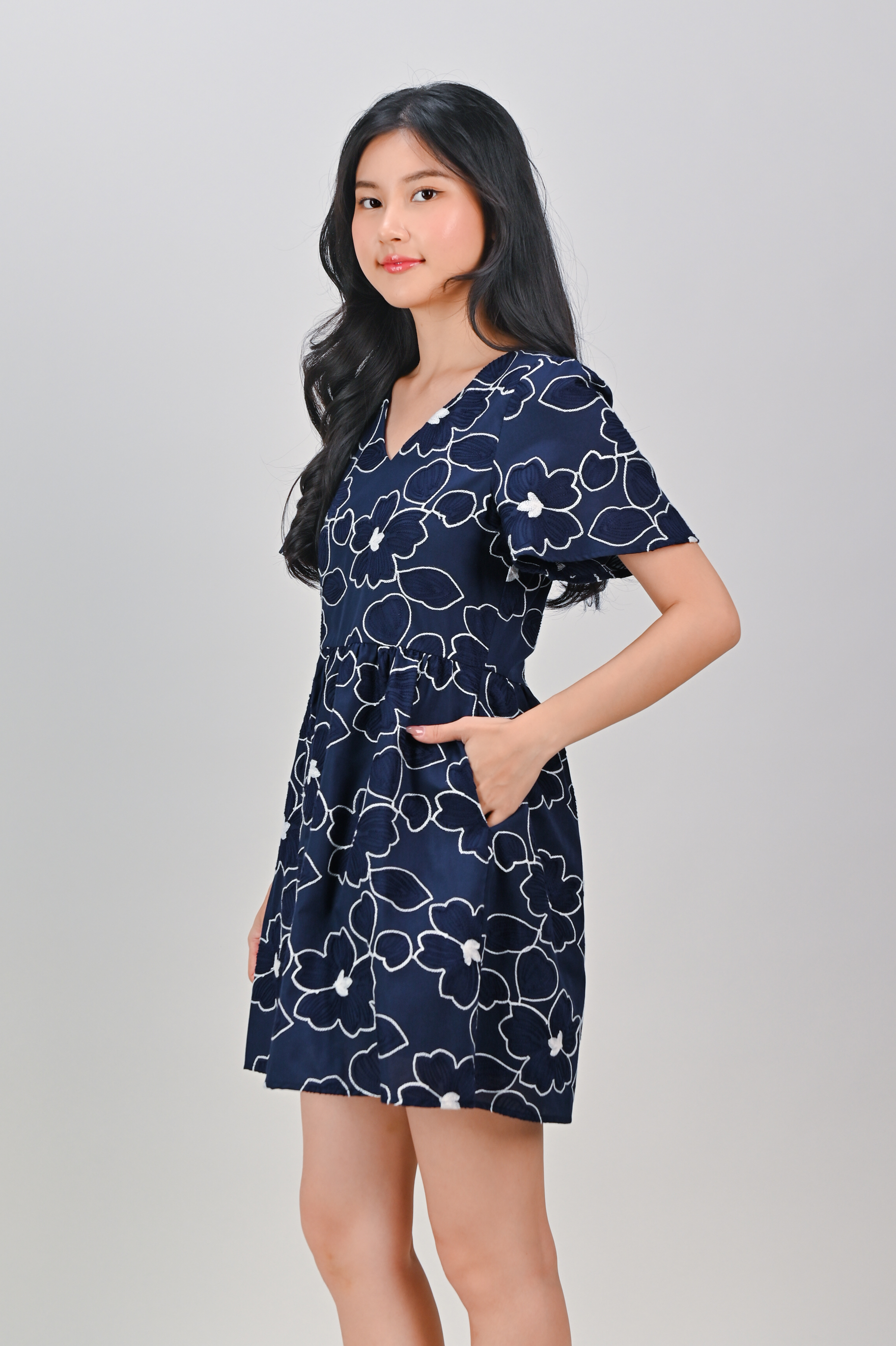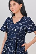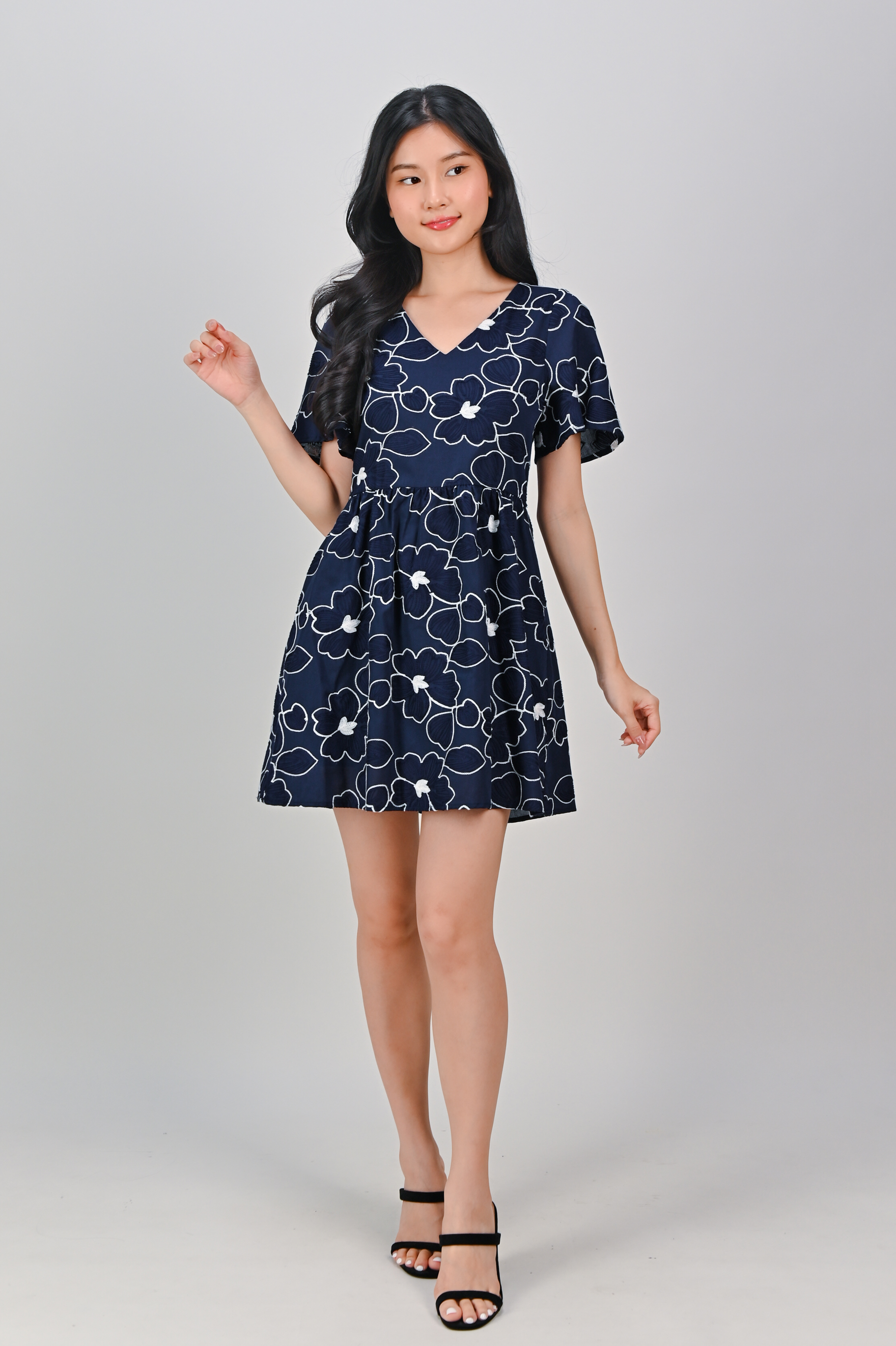GILLY NAVY FLOWERS V-NECK DRESS-ROMPER