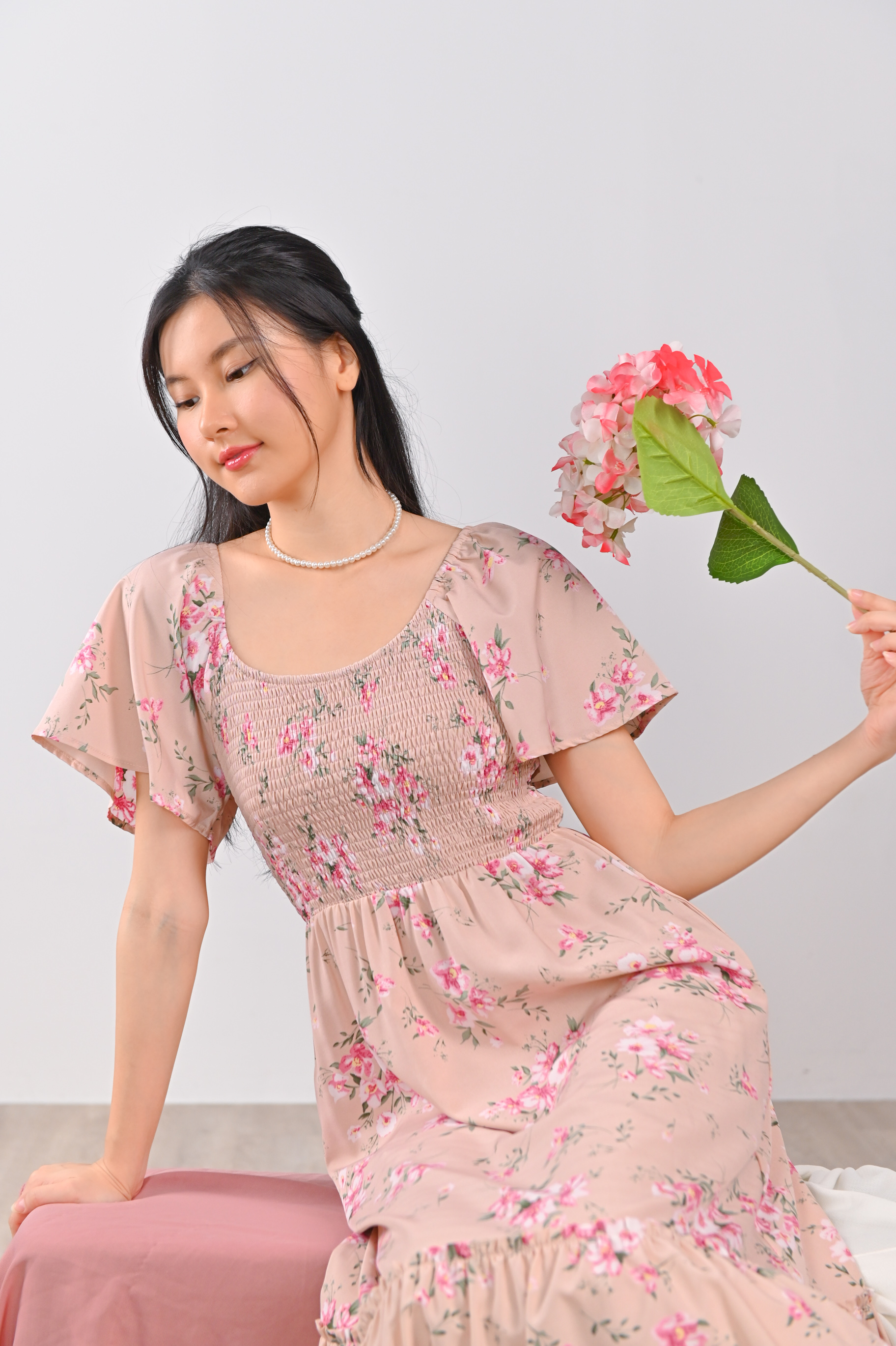 Actual stocks may varyChannel your inner Glinda with our Glinda Pink Floral Smocked Midi Dress! Magical and fabulous! 🎀
