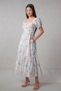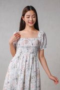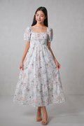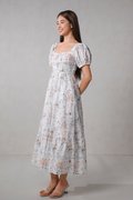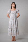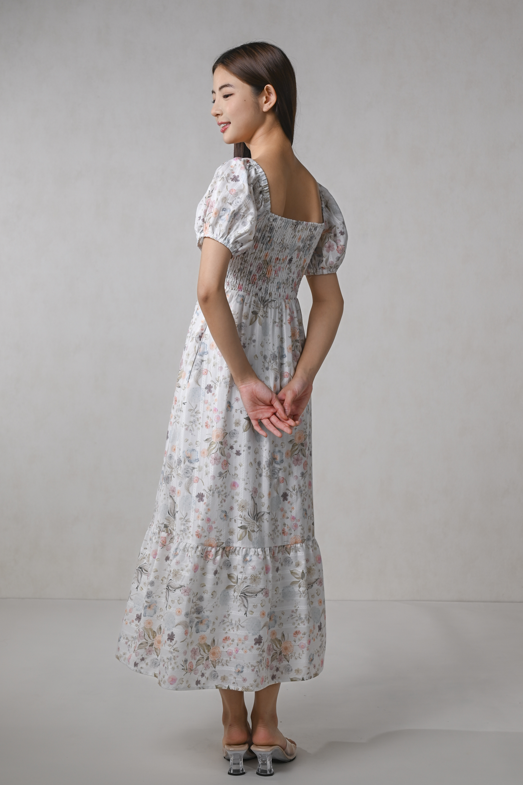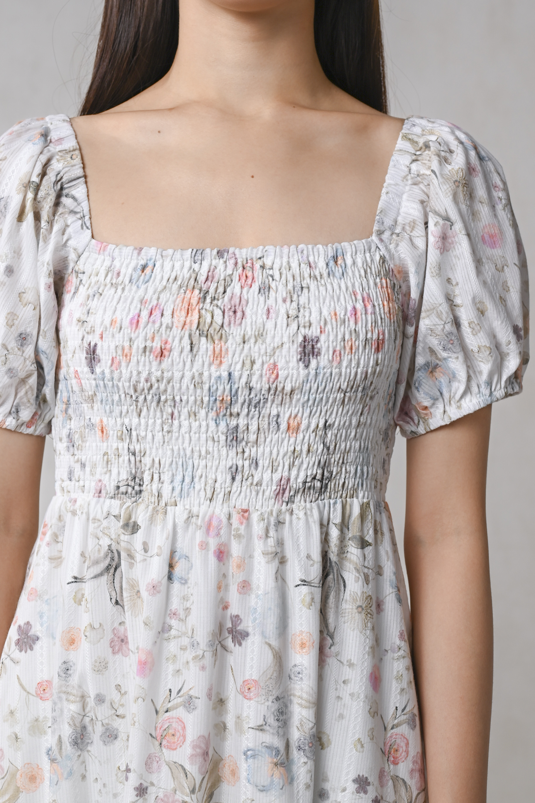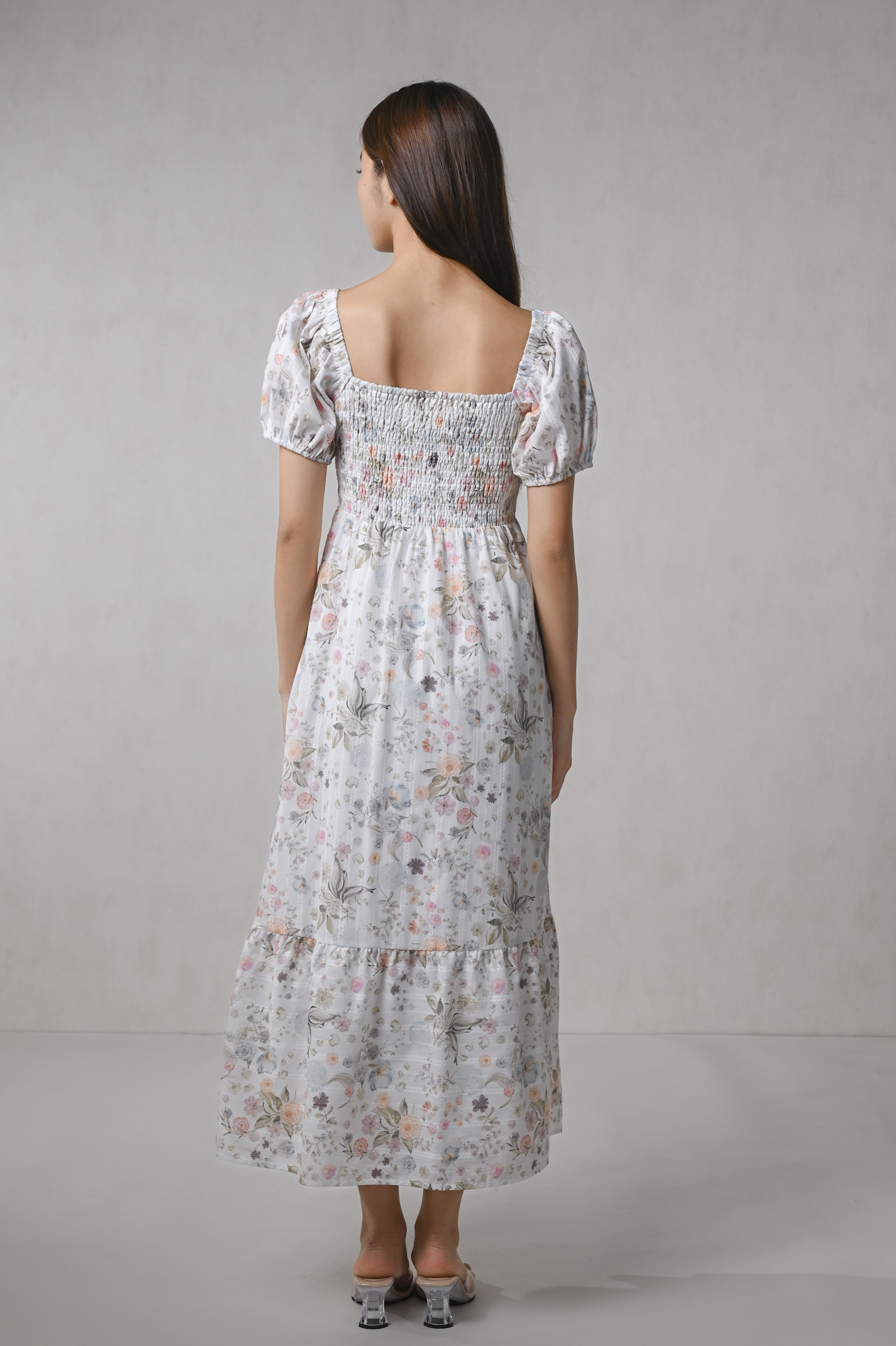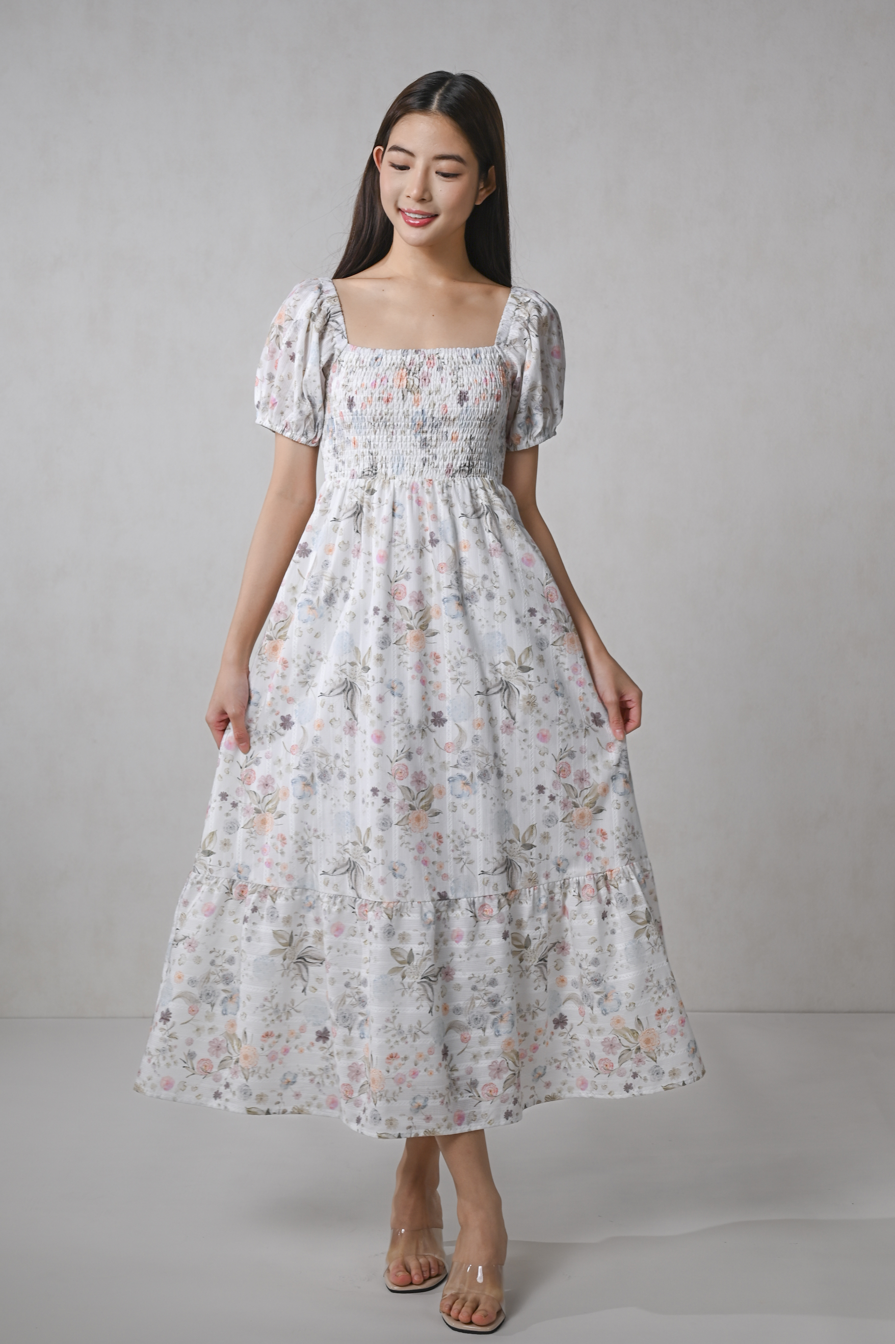 GOLDIE WHITE FLORAL SMOCKED MIDAXI DRESS