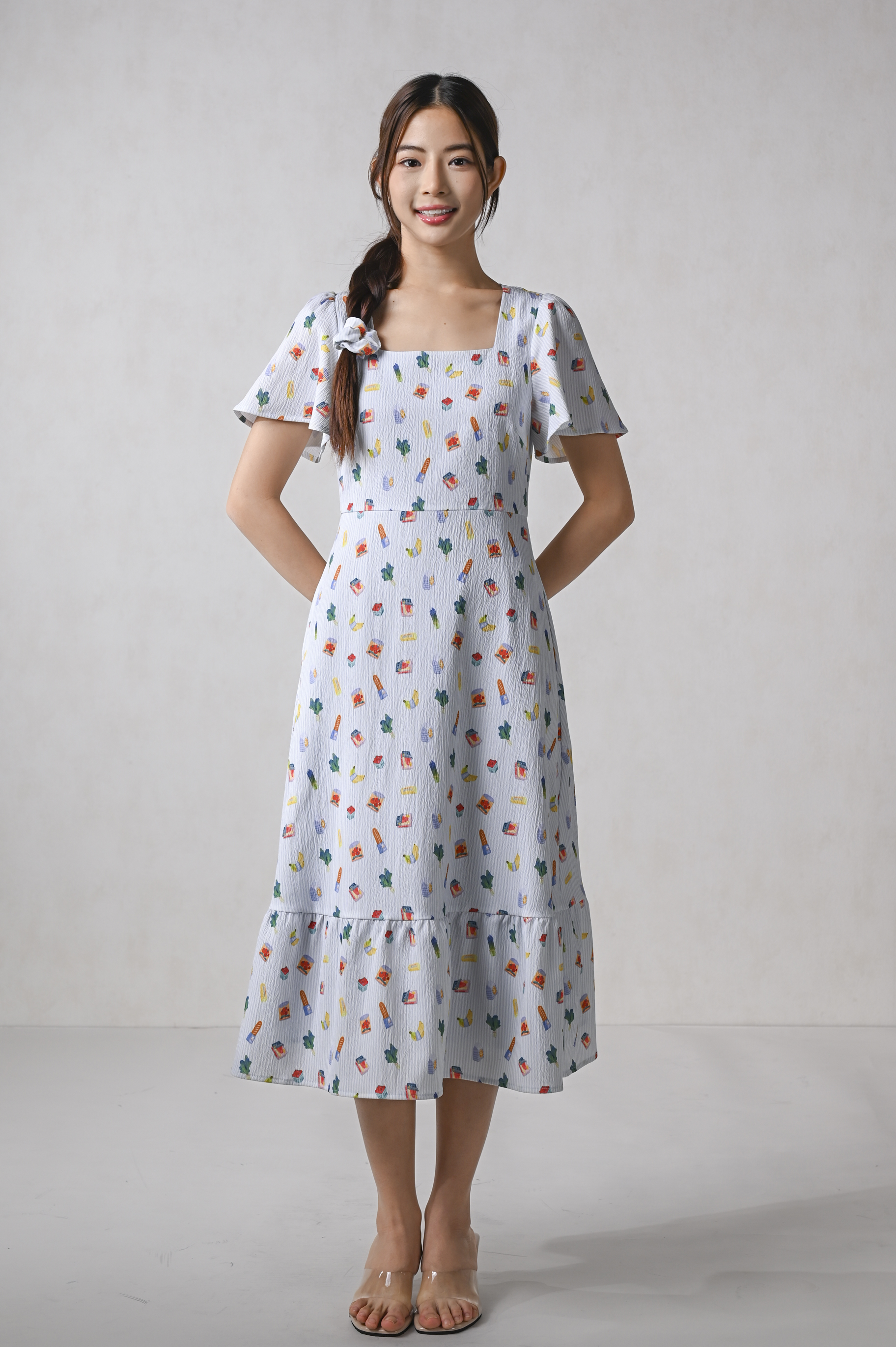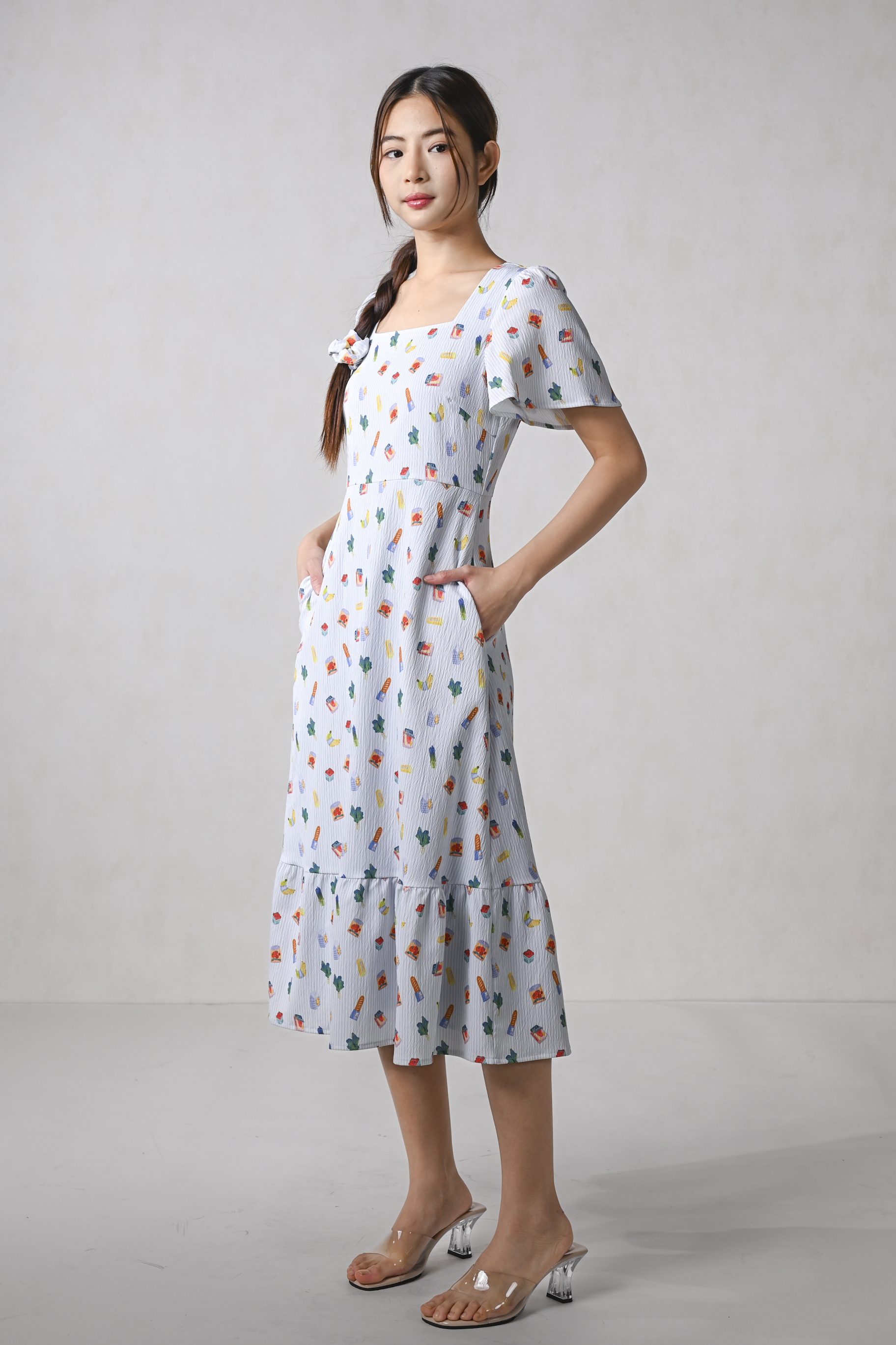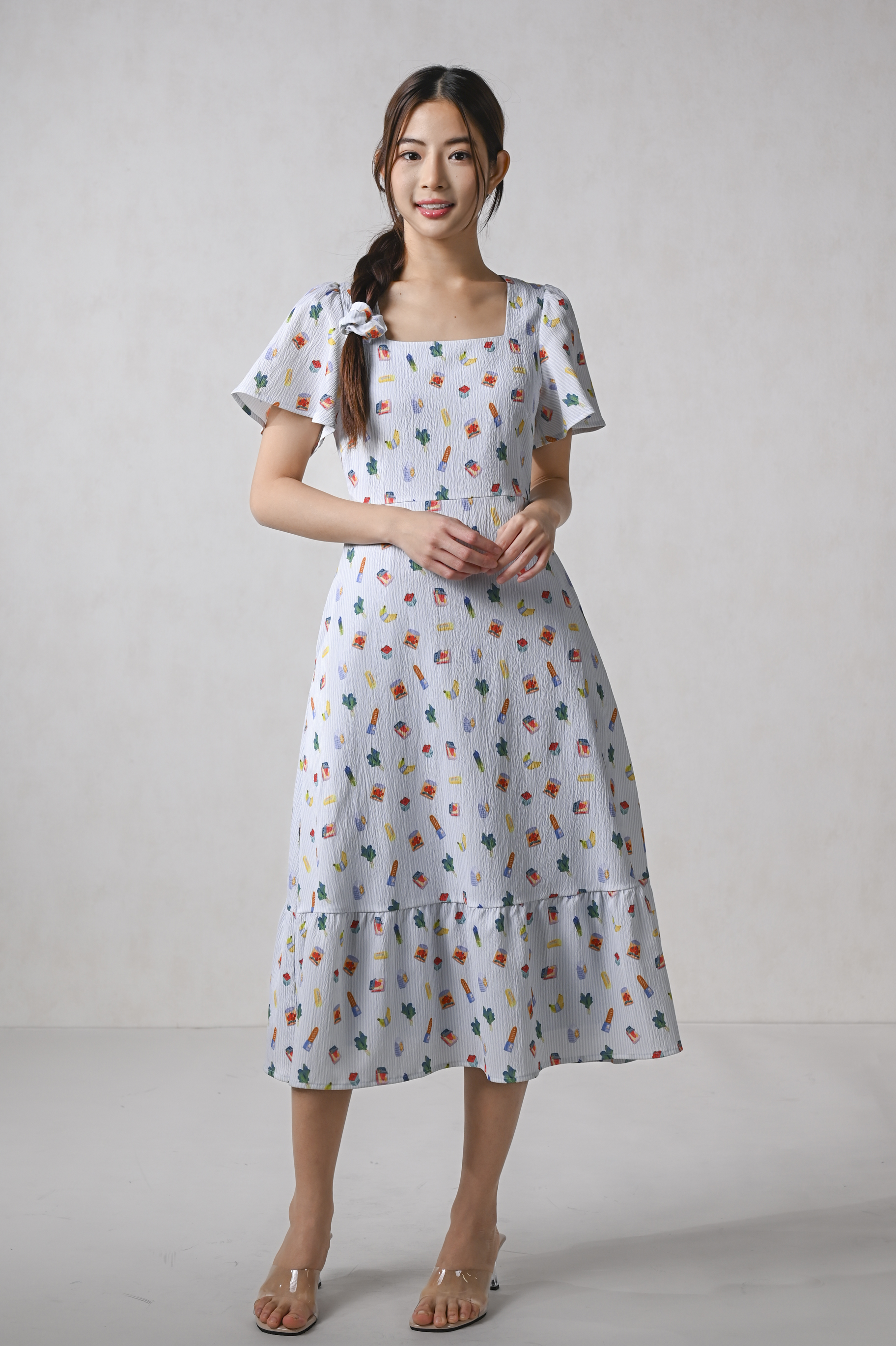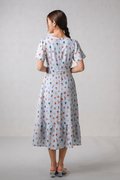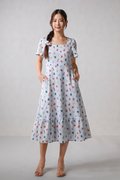 GROCER SQUARE-NECK SLEEVED MIDI DRESS