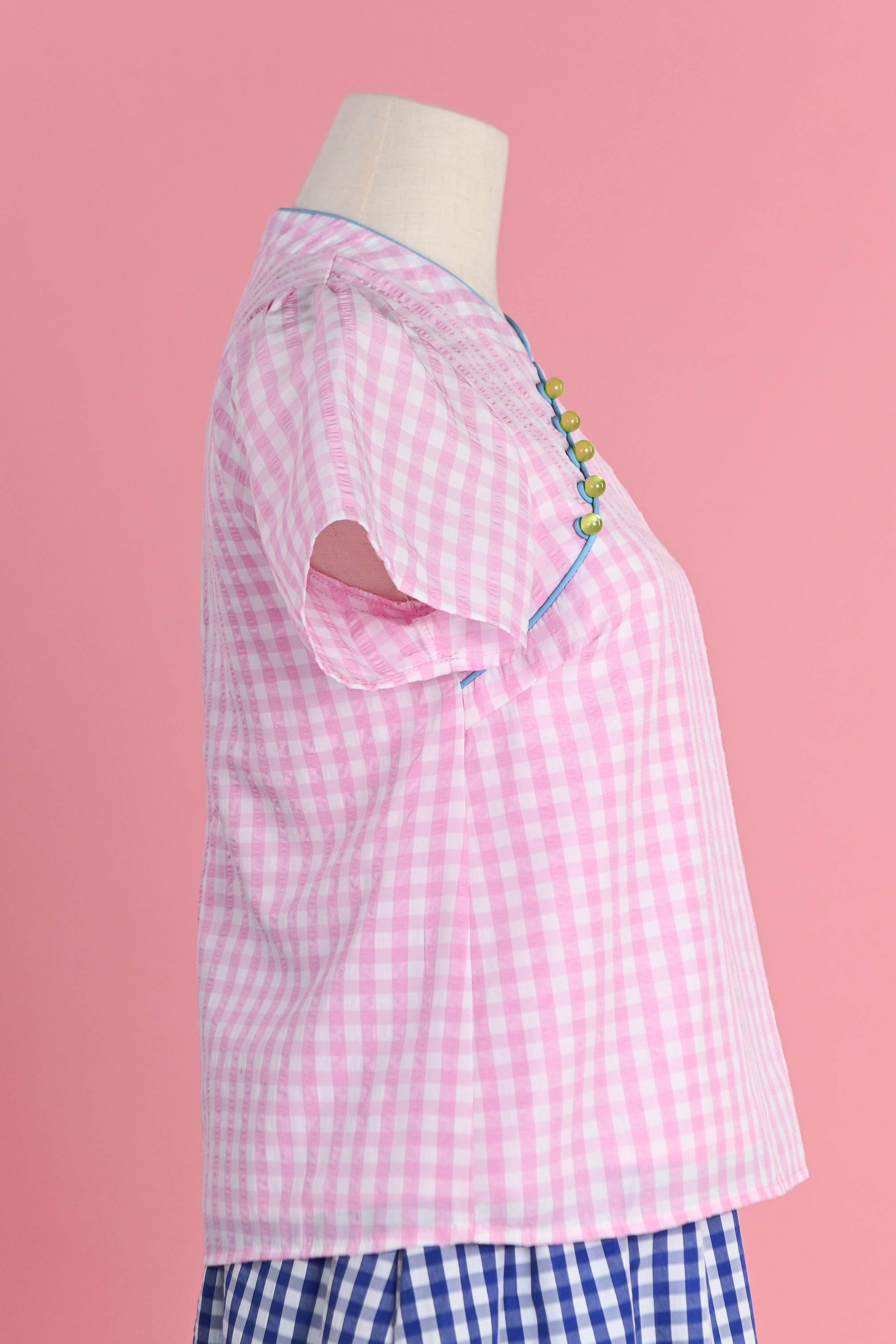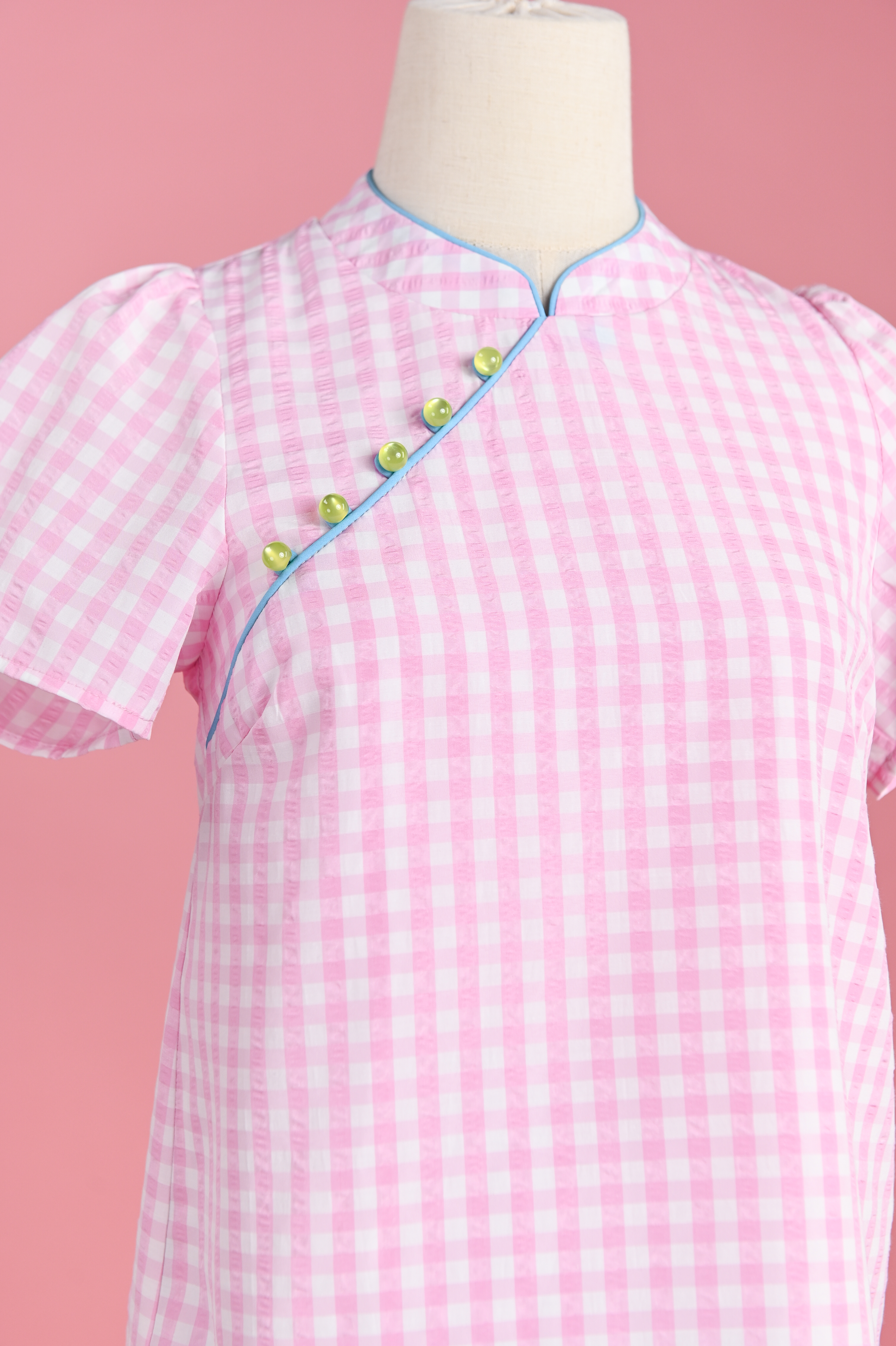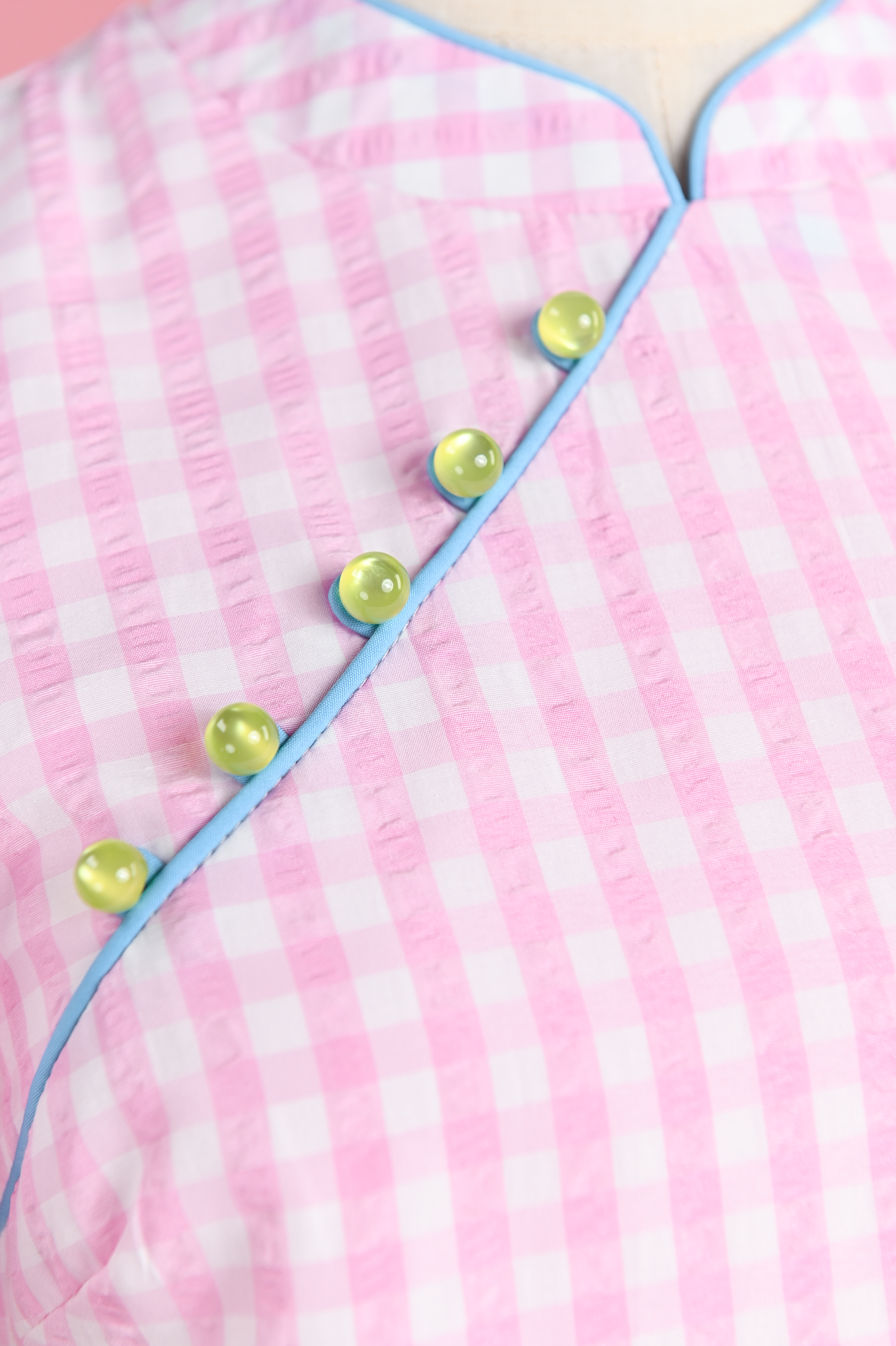 HATTIE GINGHAM CHEONGSAM TOP IN PINK