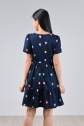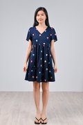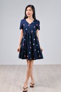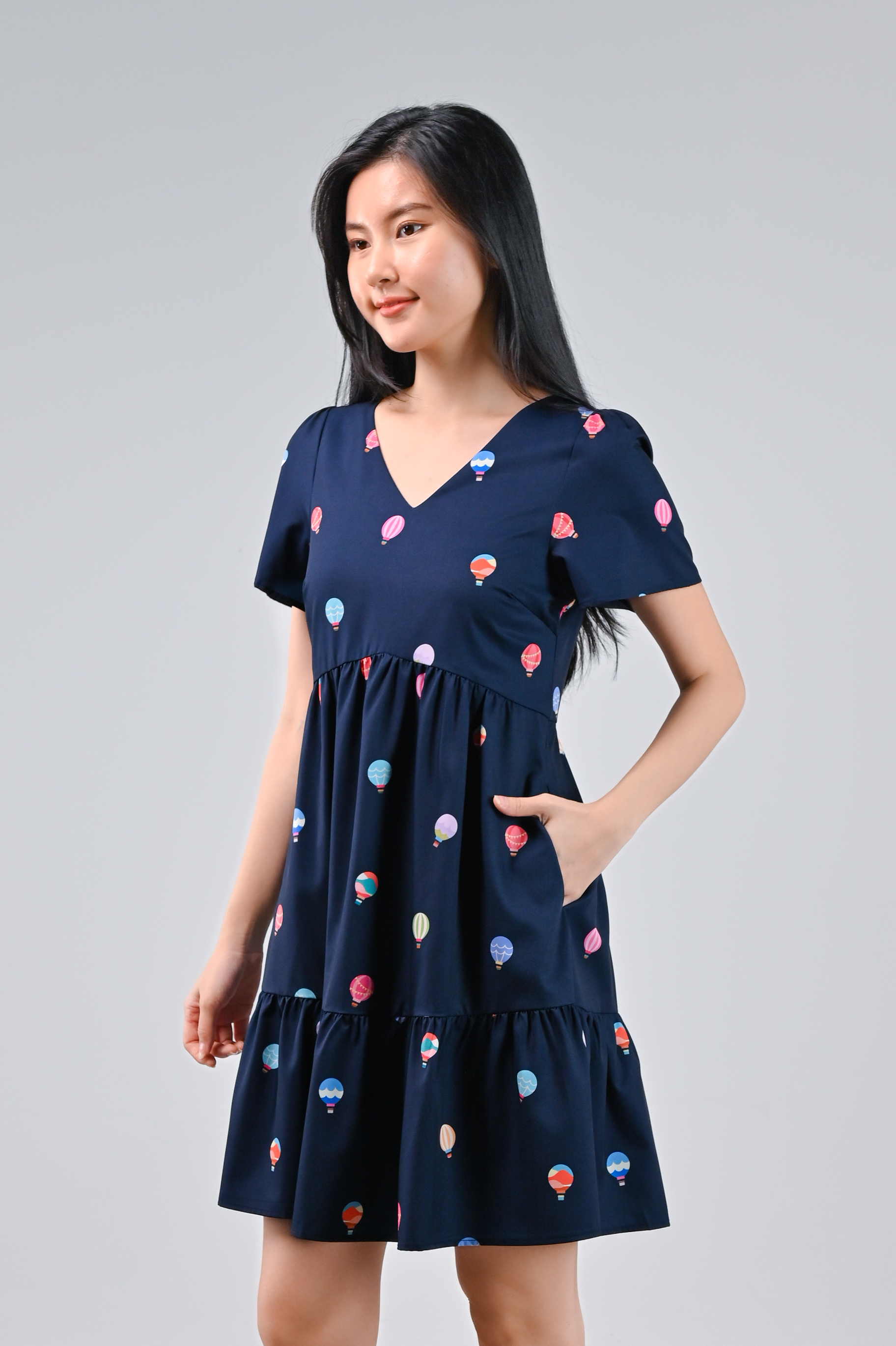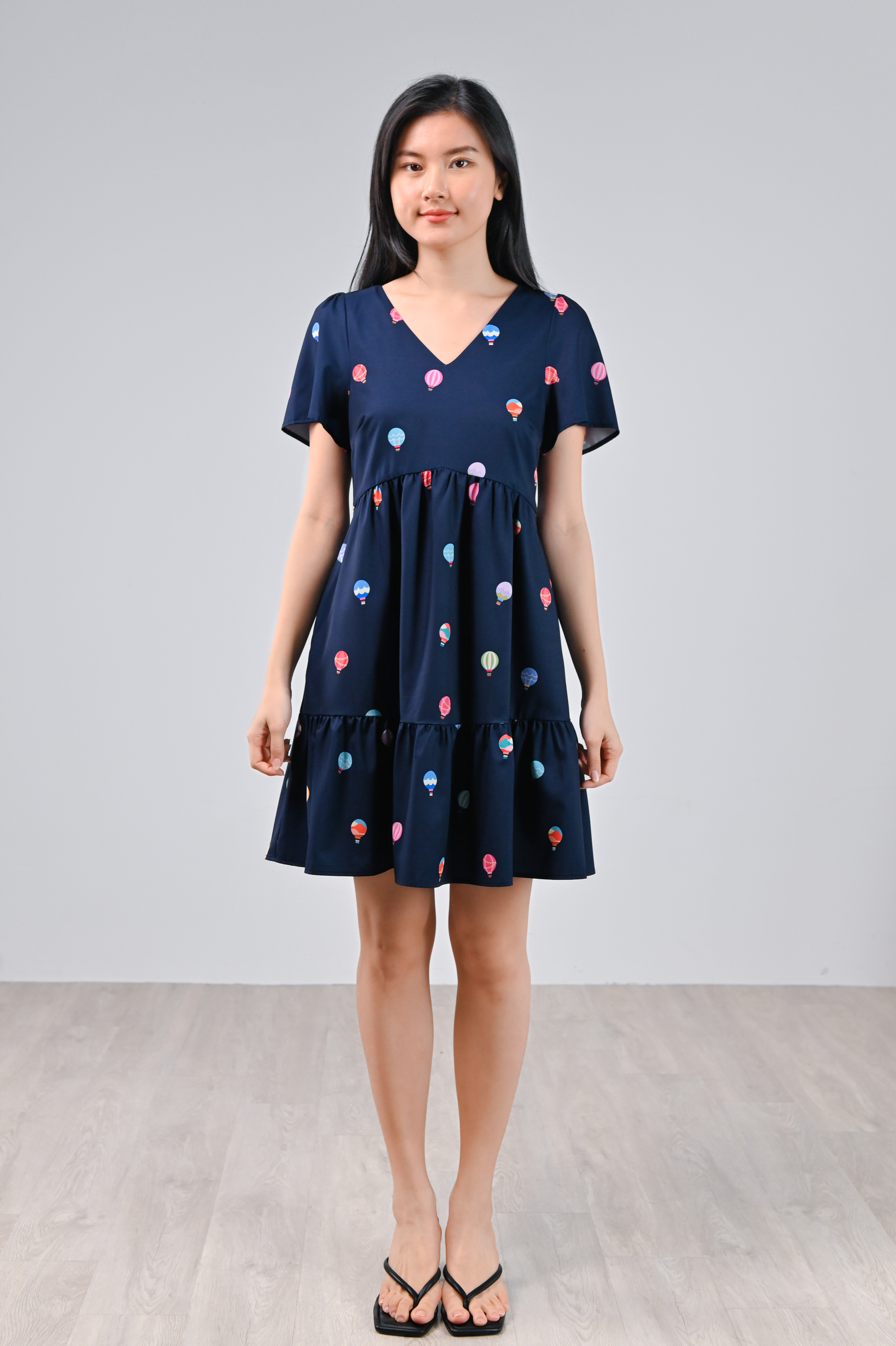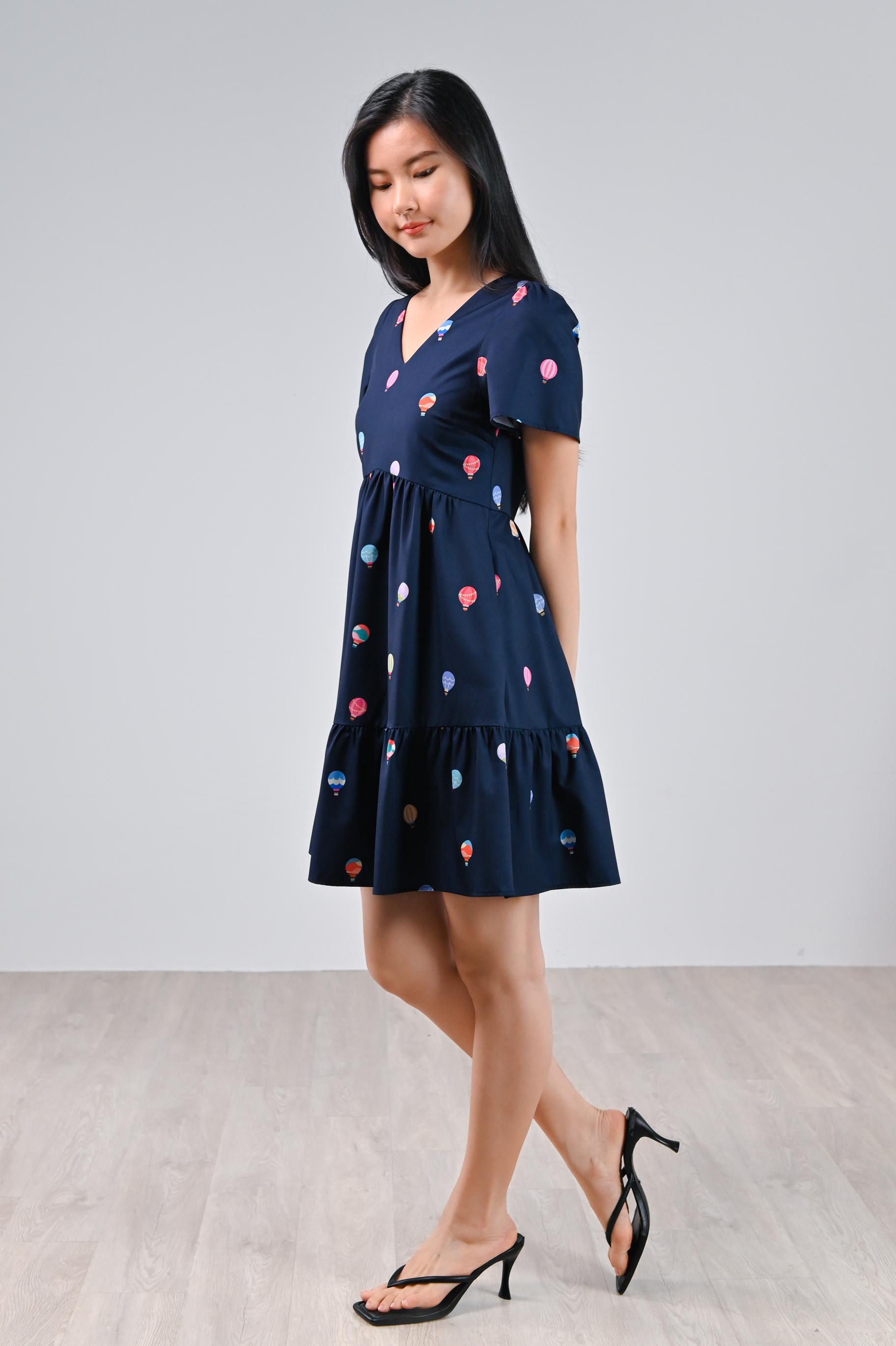 HOT AIR BALLOON NAVY CURVED-WAIST FLOUNCE DRESS