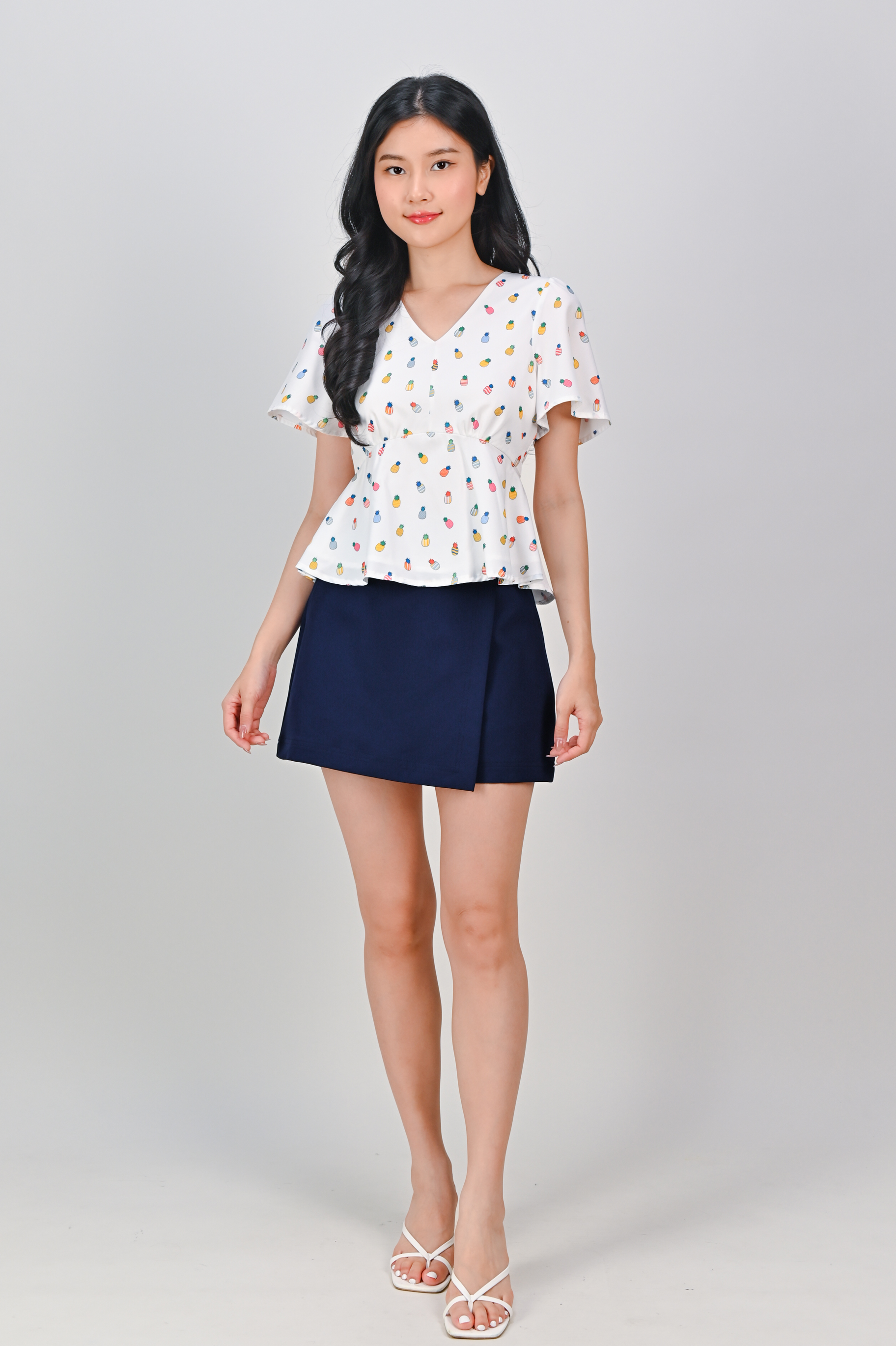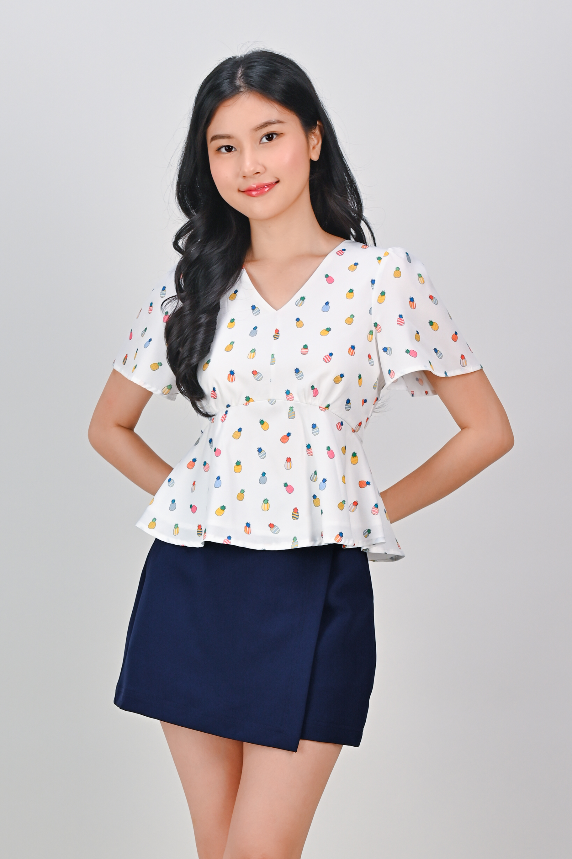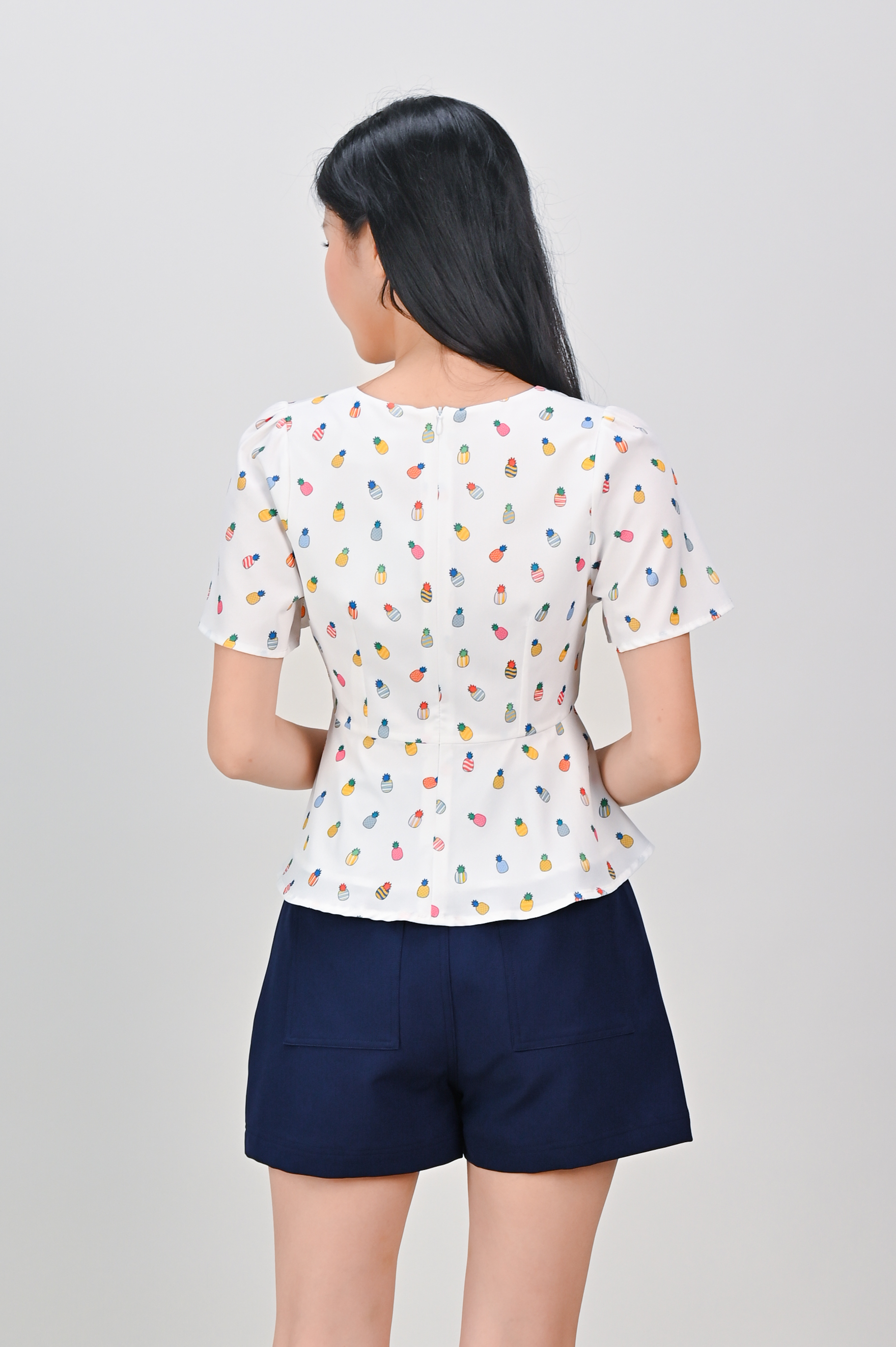 HUAT PINEAPPLES SLEEVED PEPLUM TOP