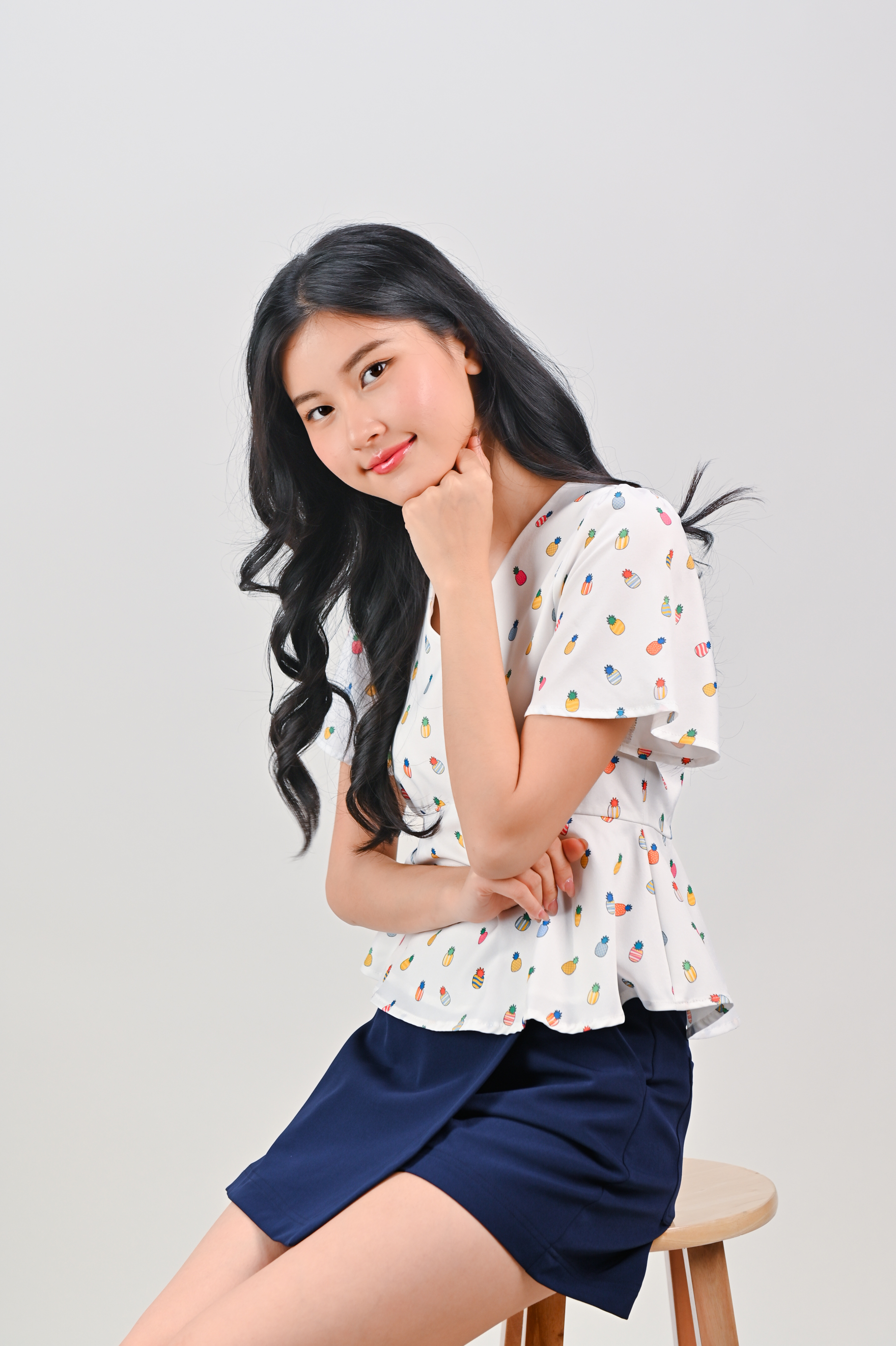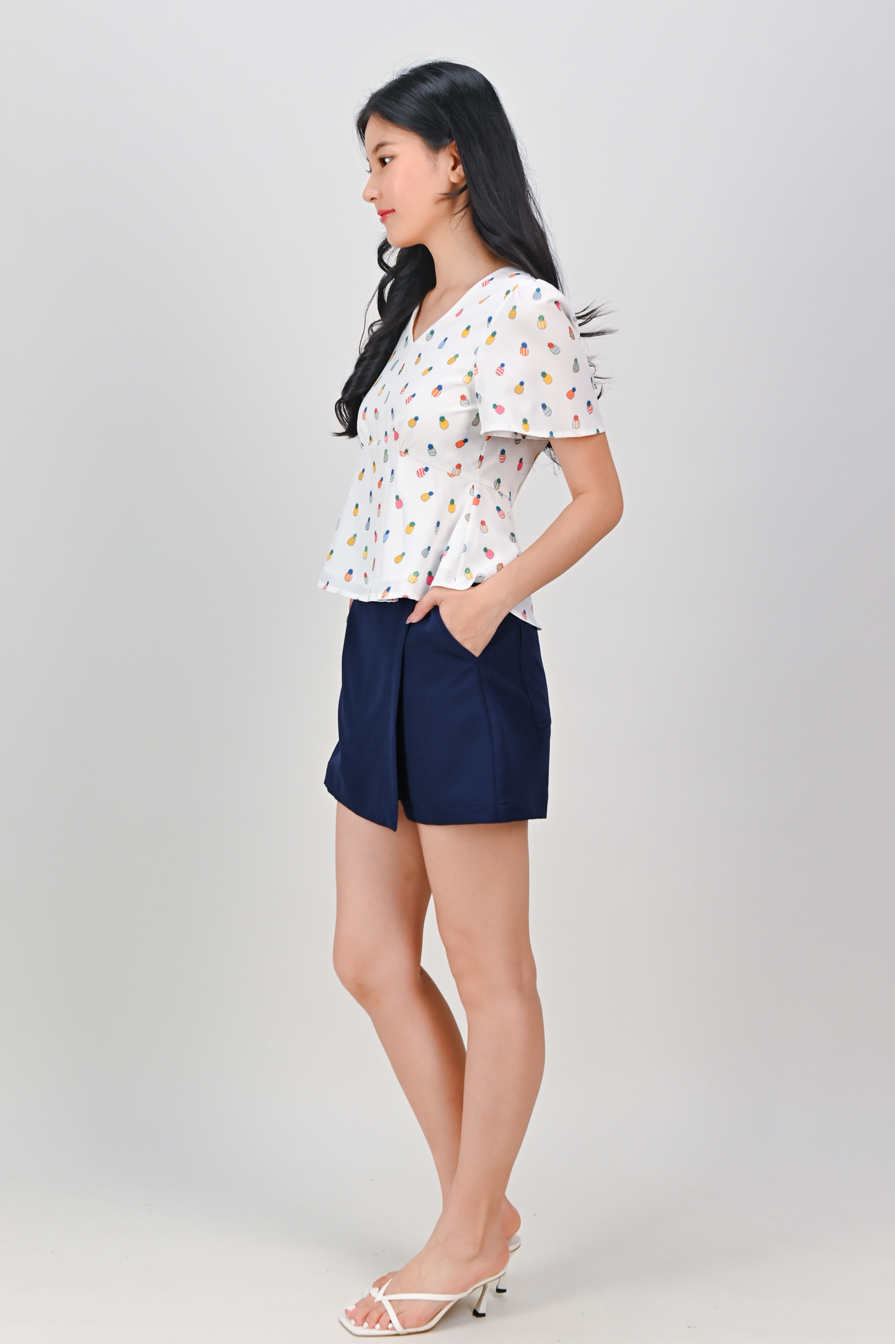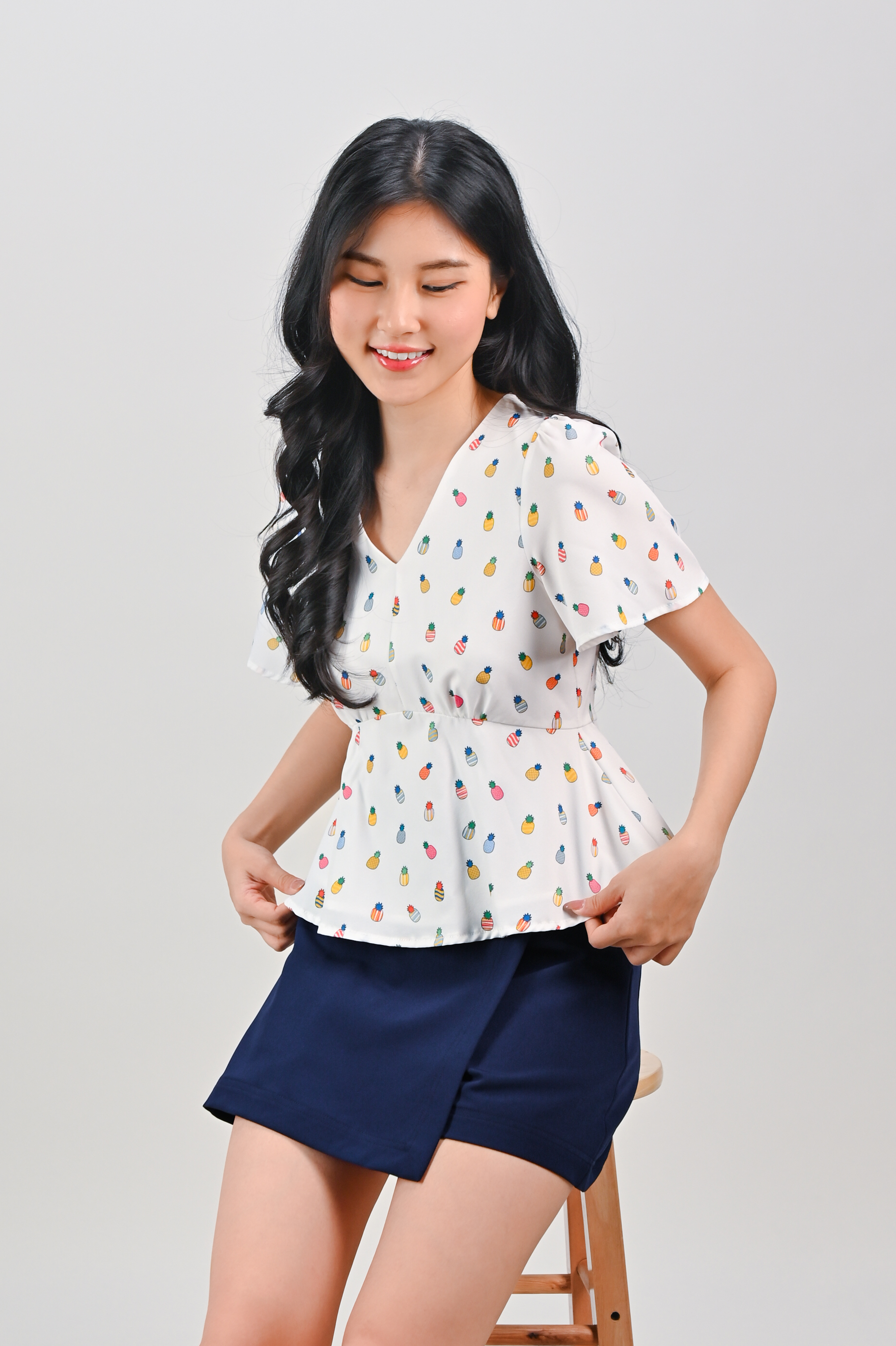 HUAT PINEAPPLES SLEEVED PEPLUM TOP
