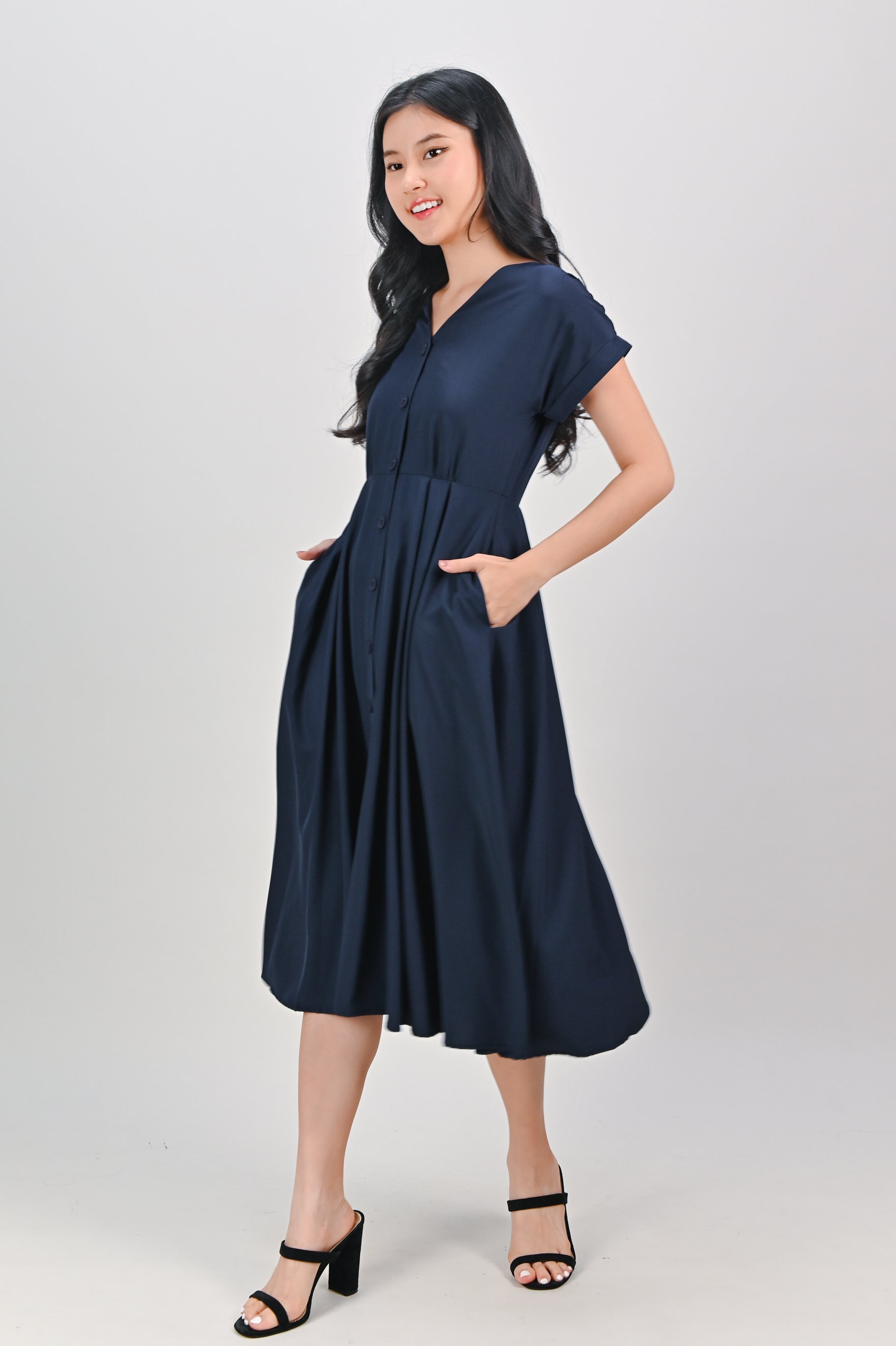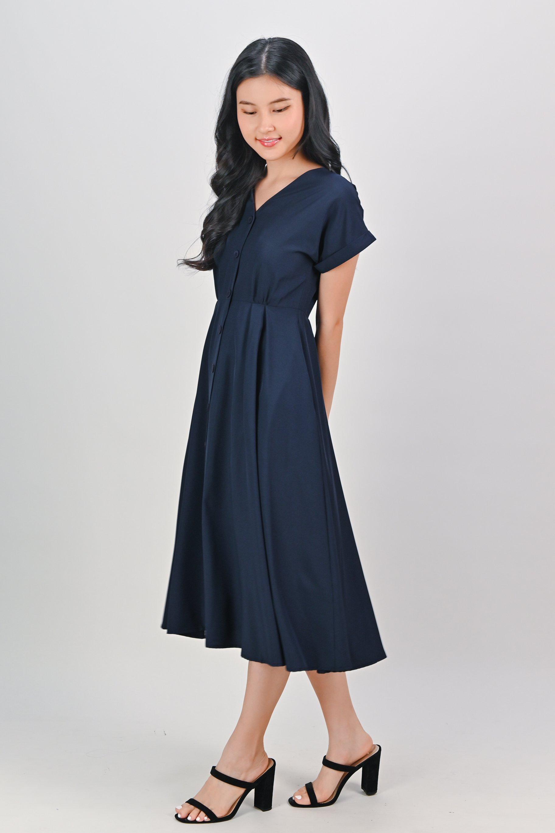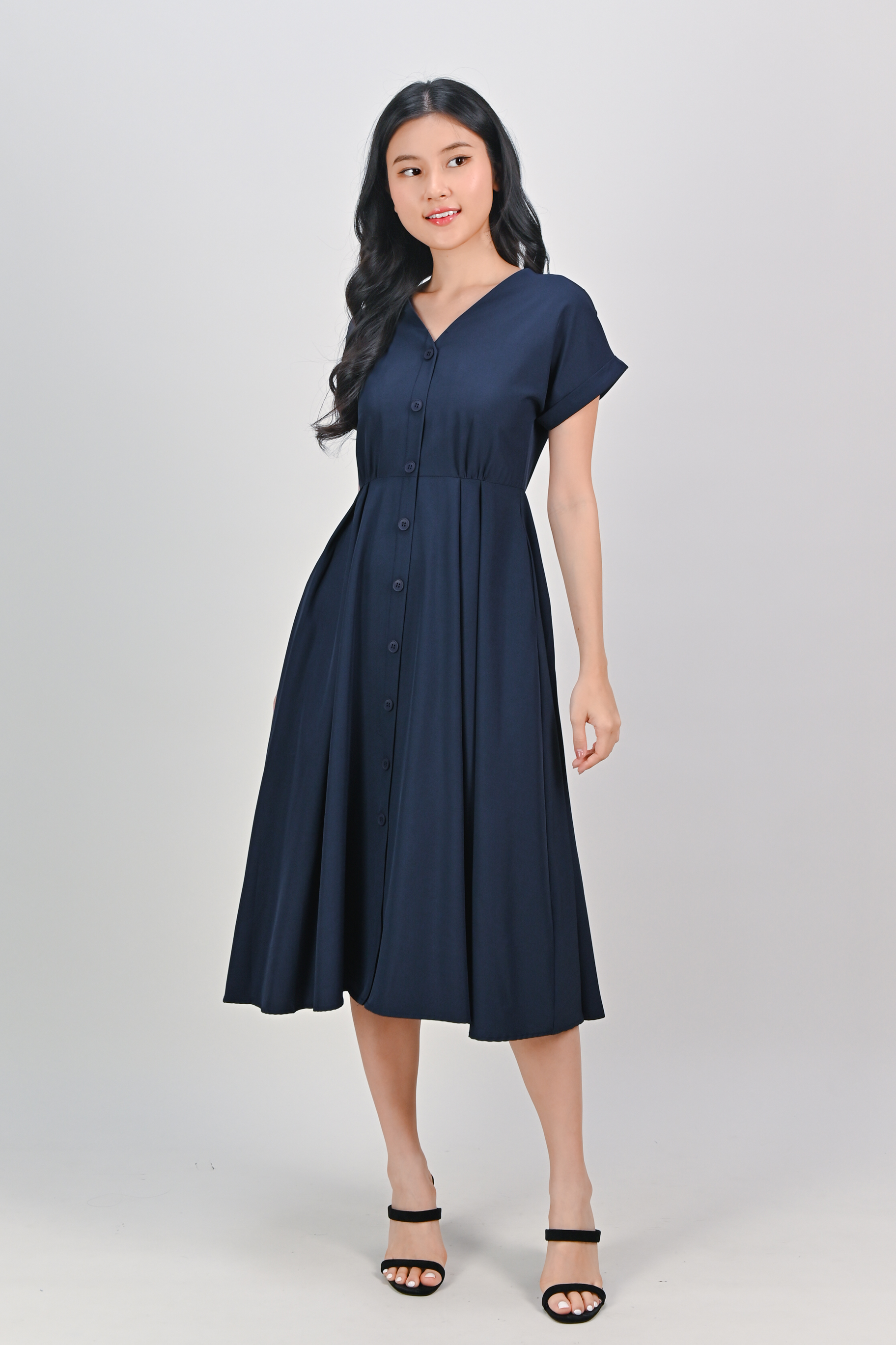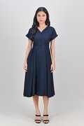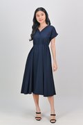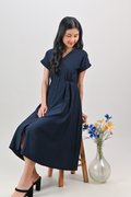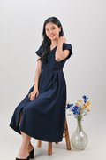HUDGENS SLEEVED BUTTON DRESS IN NAVY