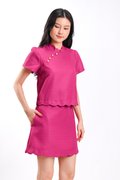 HUIMIN SCALLOP CHEONGSAM TOP IN PINK