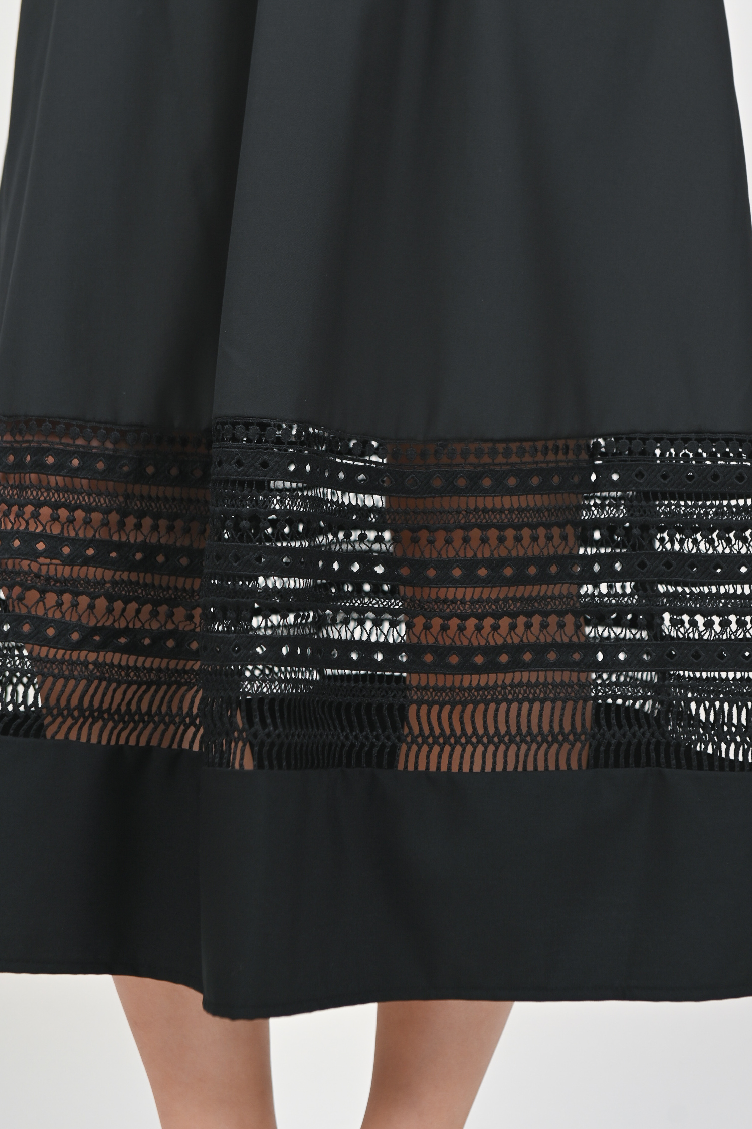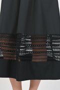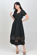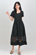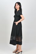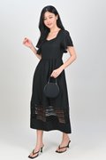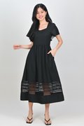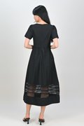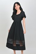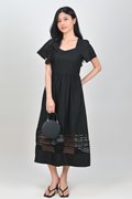 INEZ LACE-INSERT SLEEVED MIDI DRESS IN BLACK