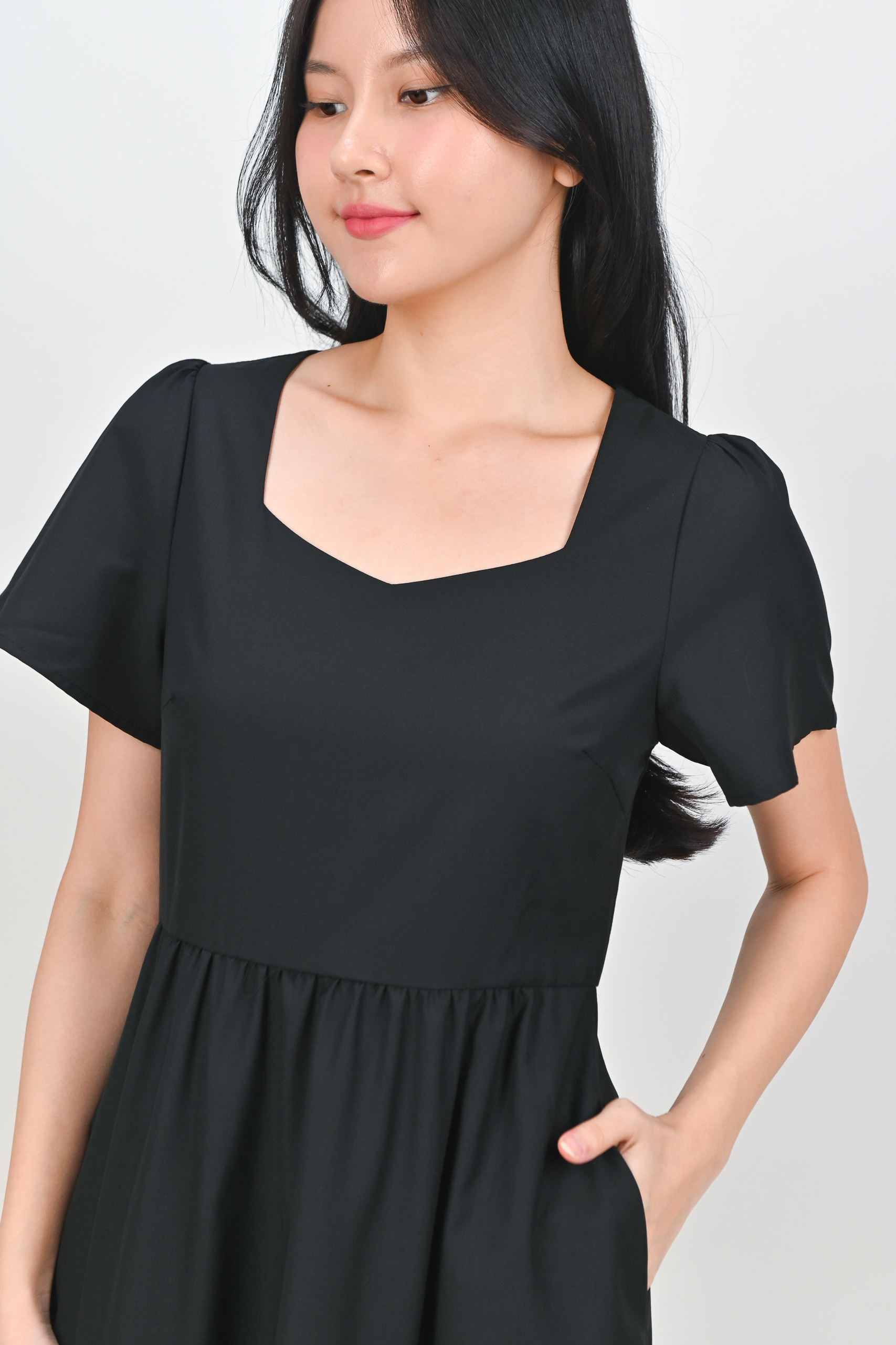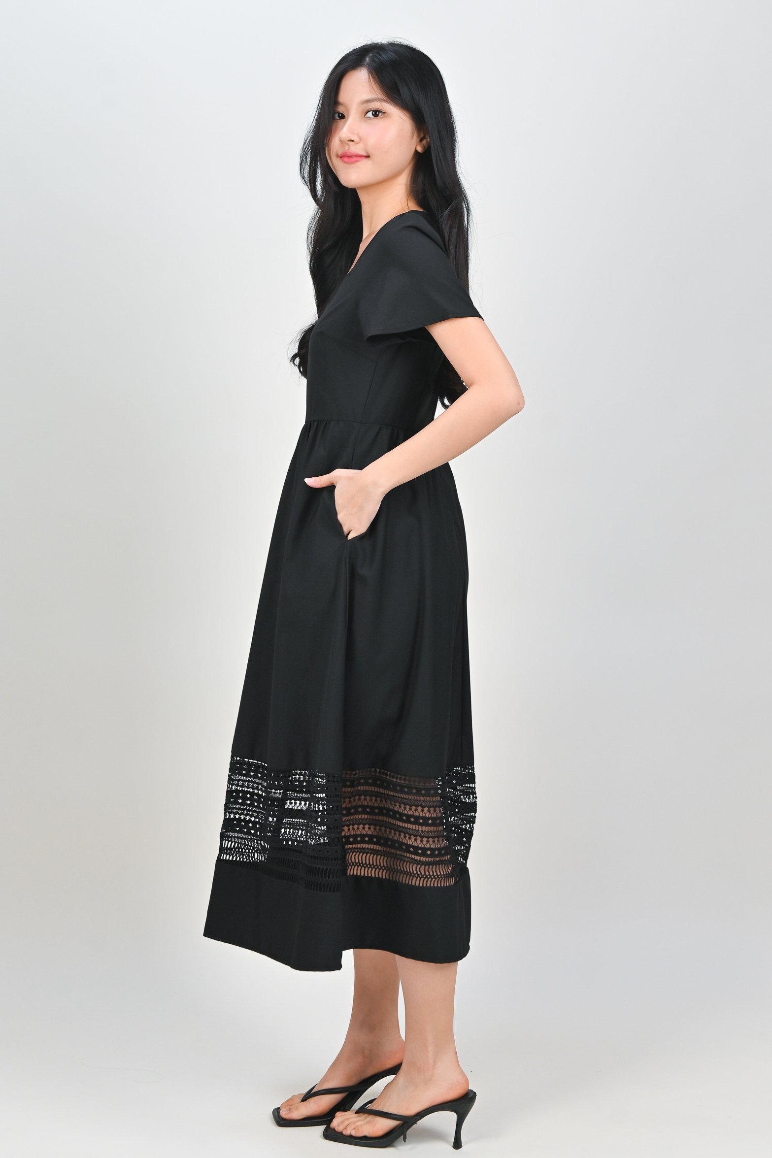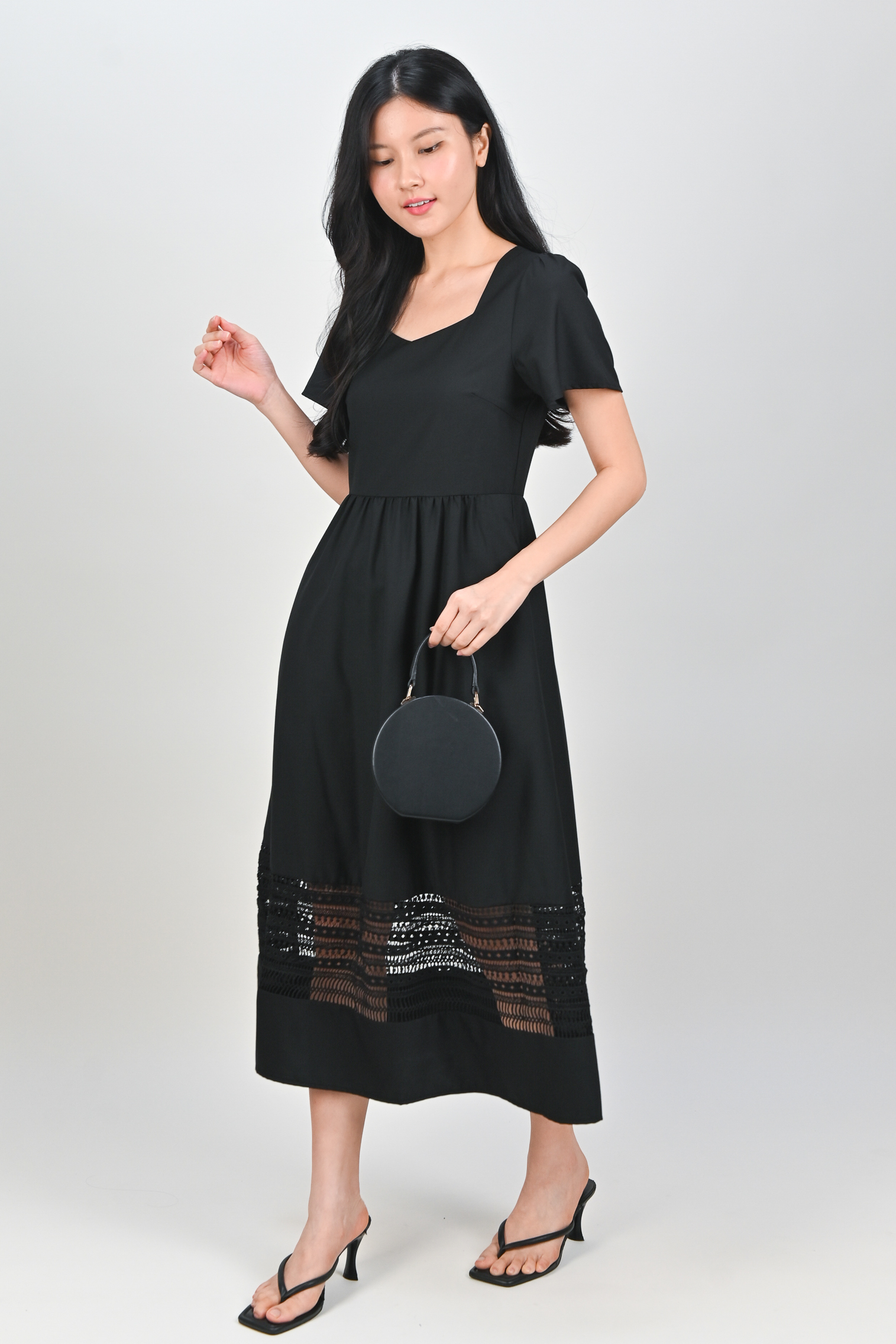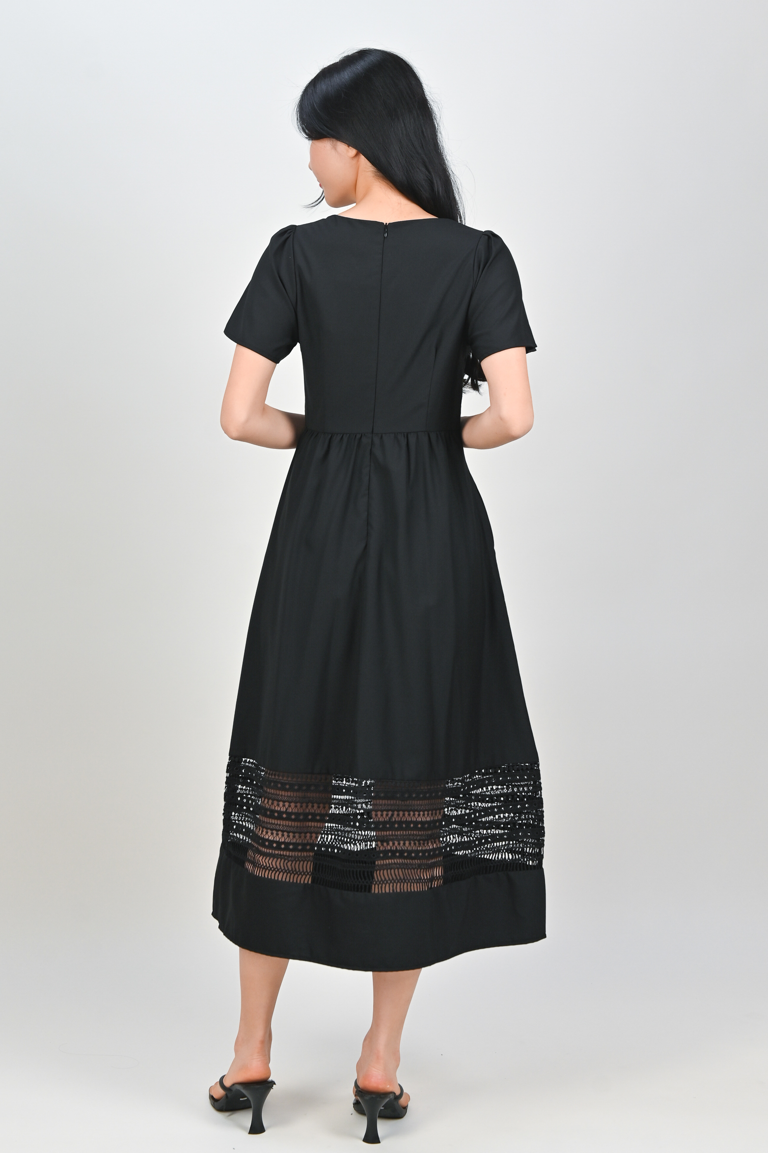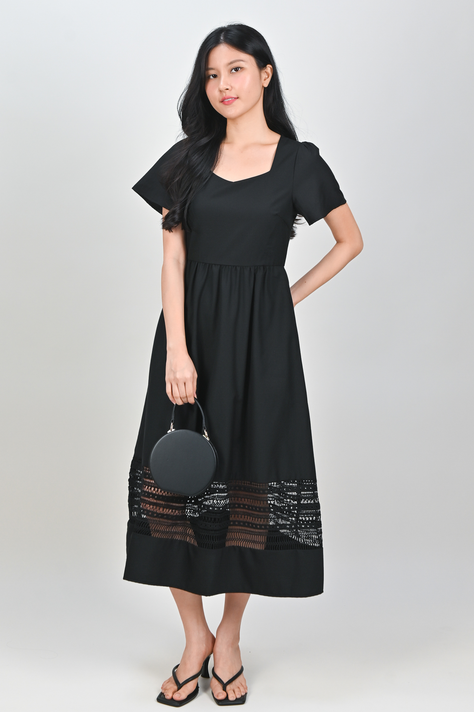 Actual stocks may varyA little lace, a lot of charm 🖤 Our Inez Lace-Insert Midi Dress is here to turn heads and steal hearts! 💃