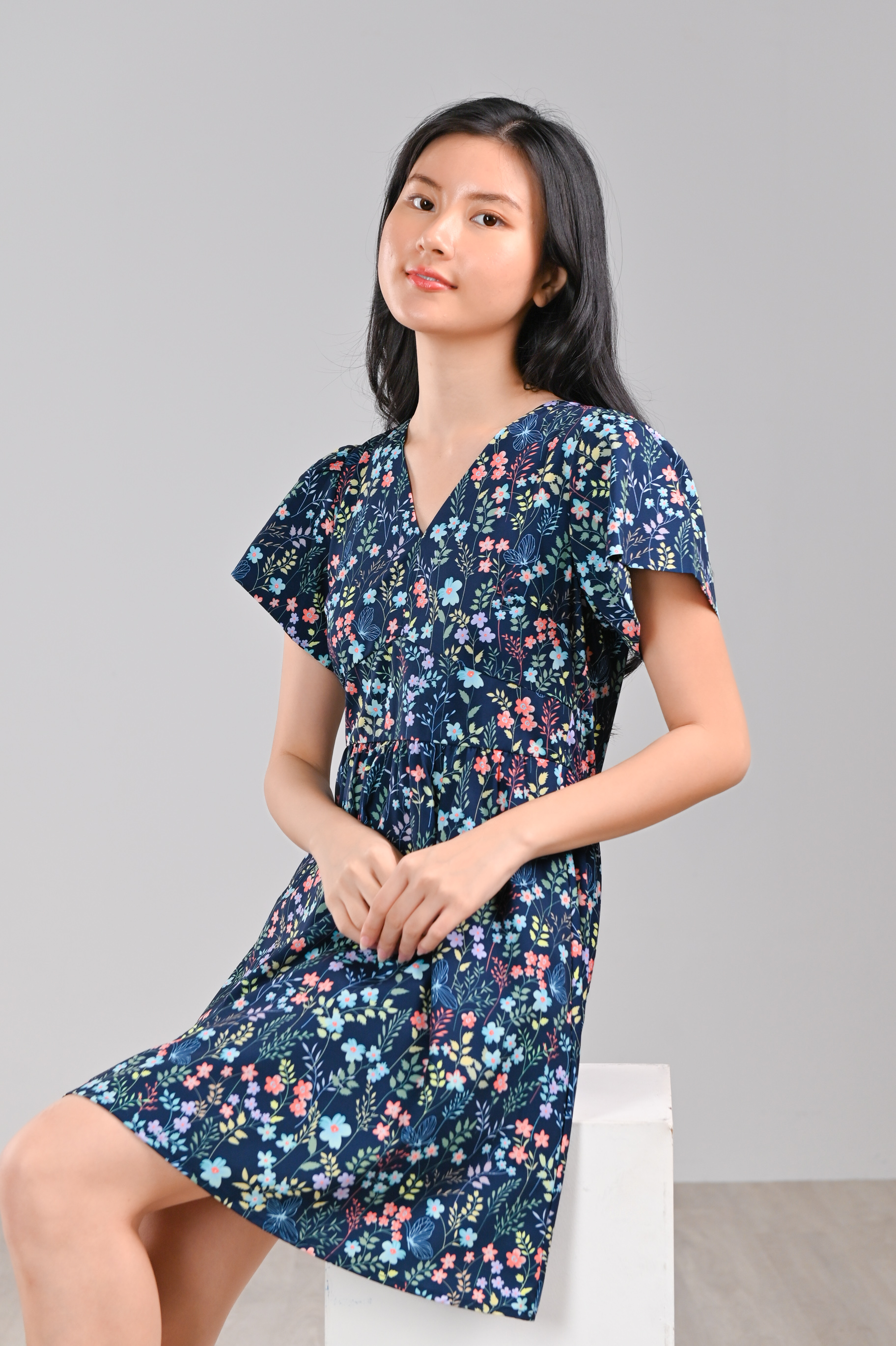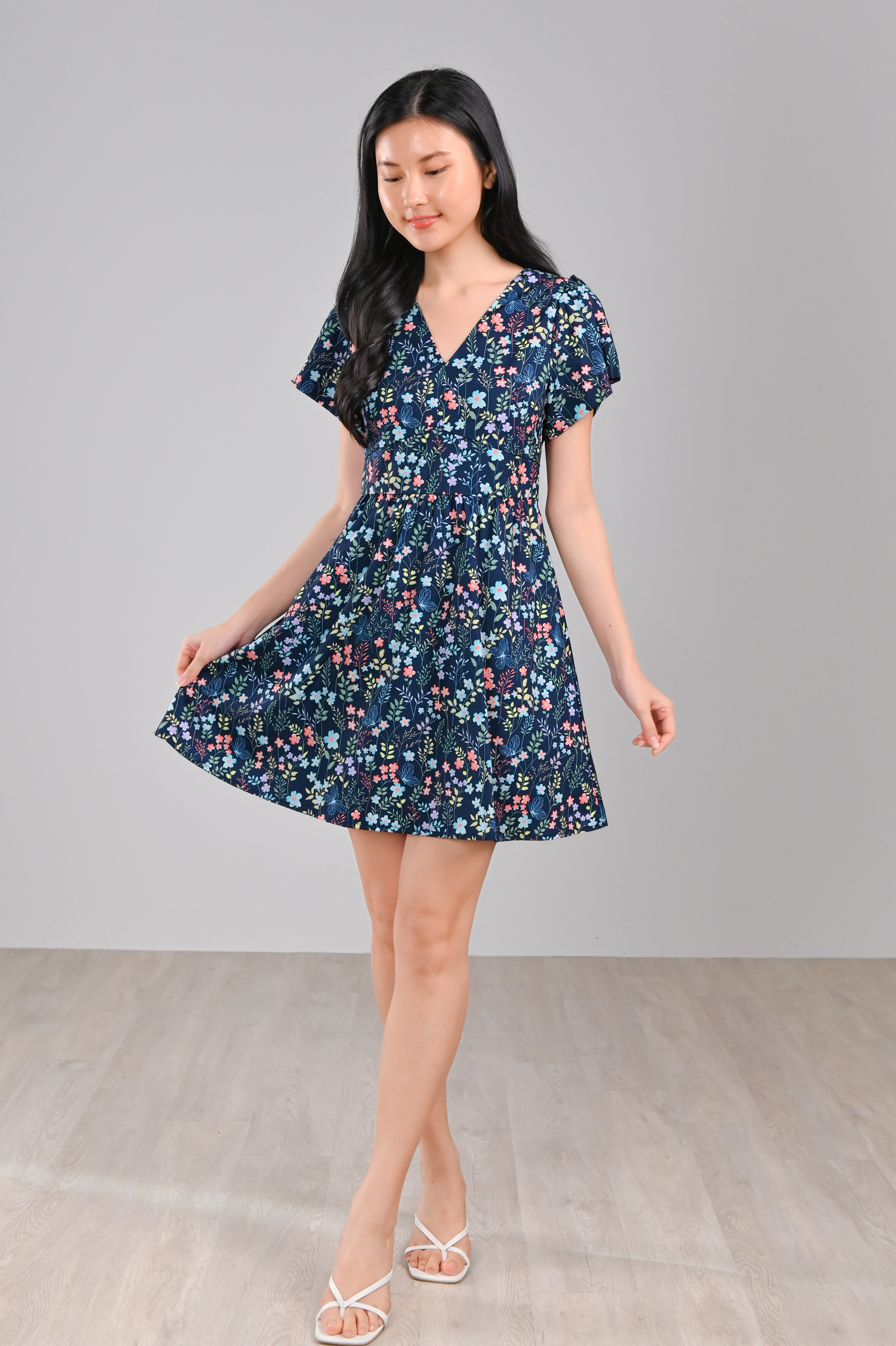 ISADORA NAVY FLORAL V-NECK DRESS-ROMPER