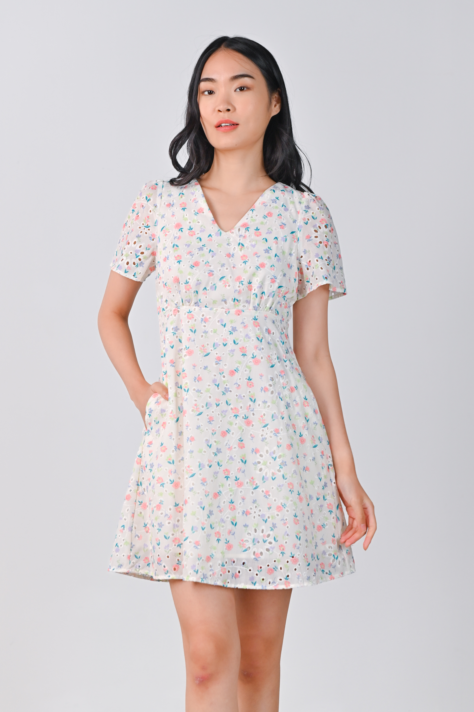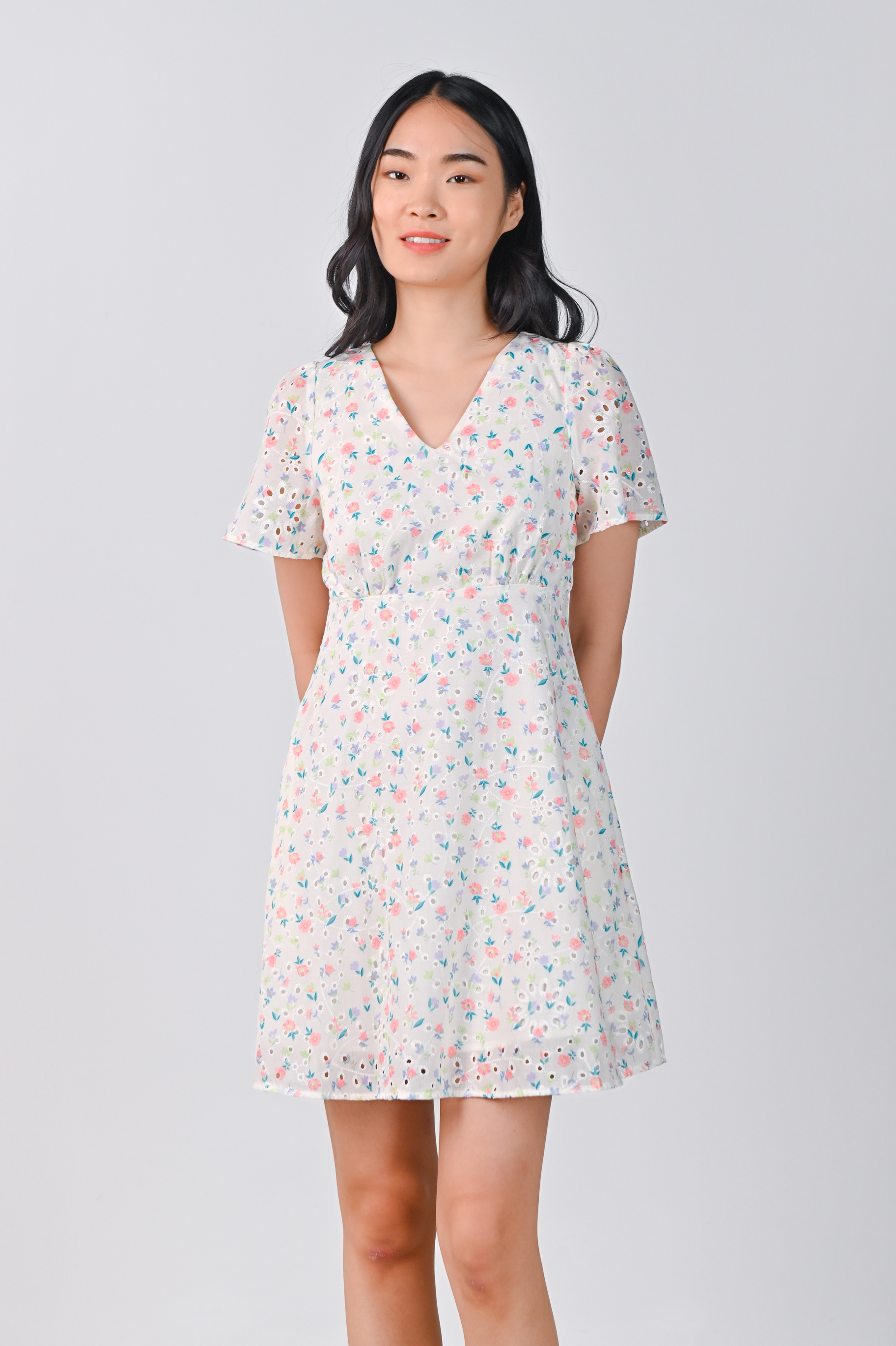 ISLAY PINK FLORAL EYELET SLEEVED DRESS