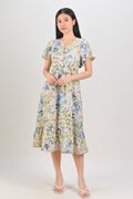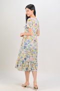 ISLIE WATERCOLOUR SLEEVED BUTTON MIDI DRESS