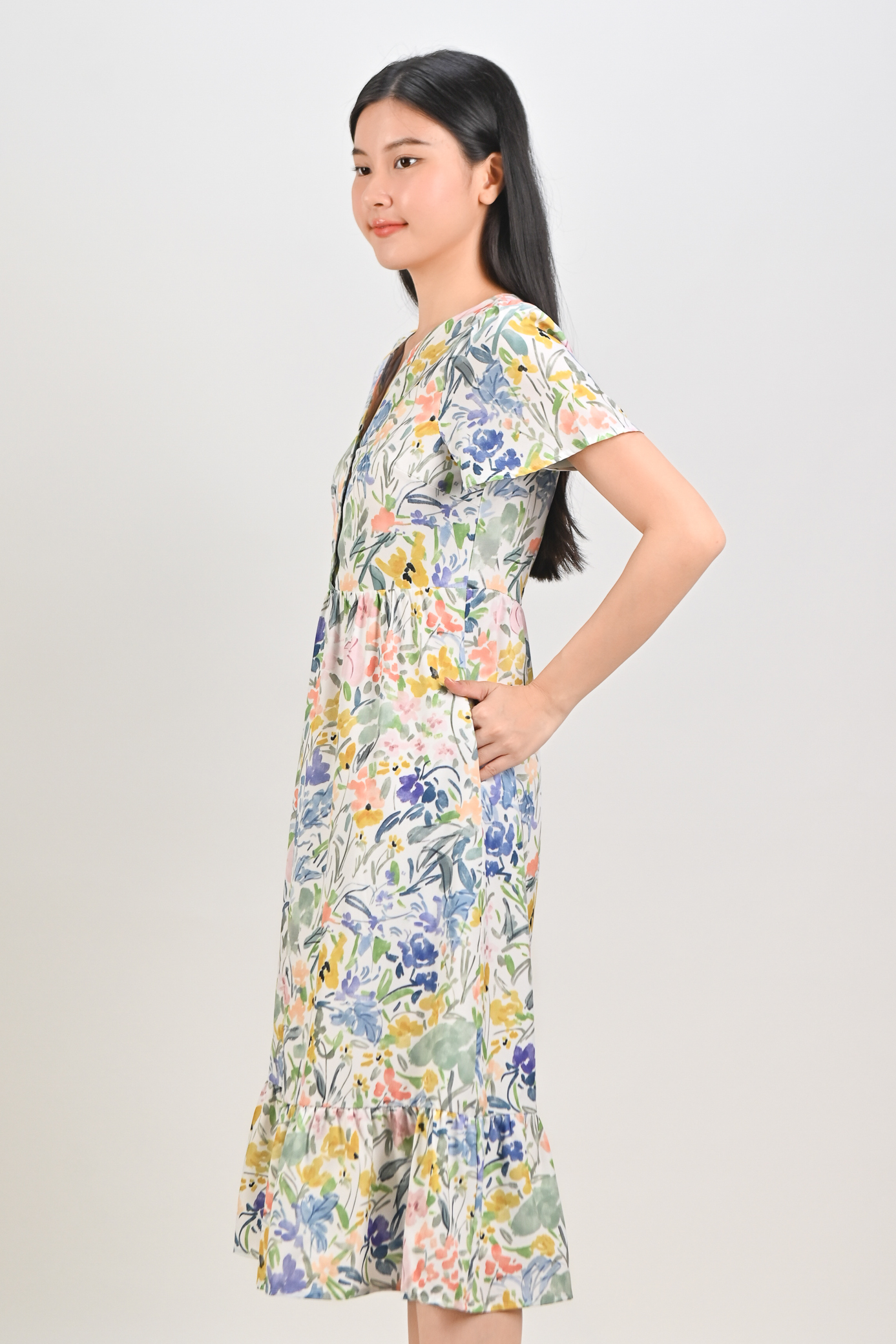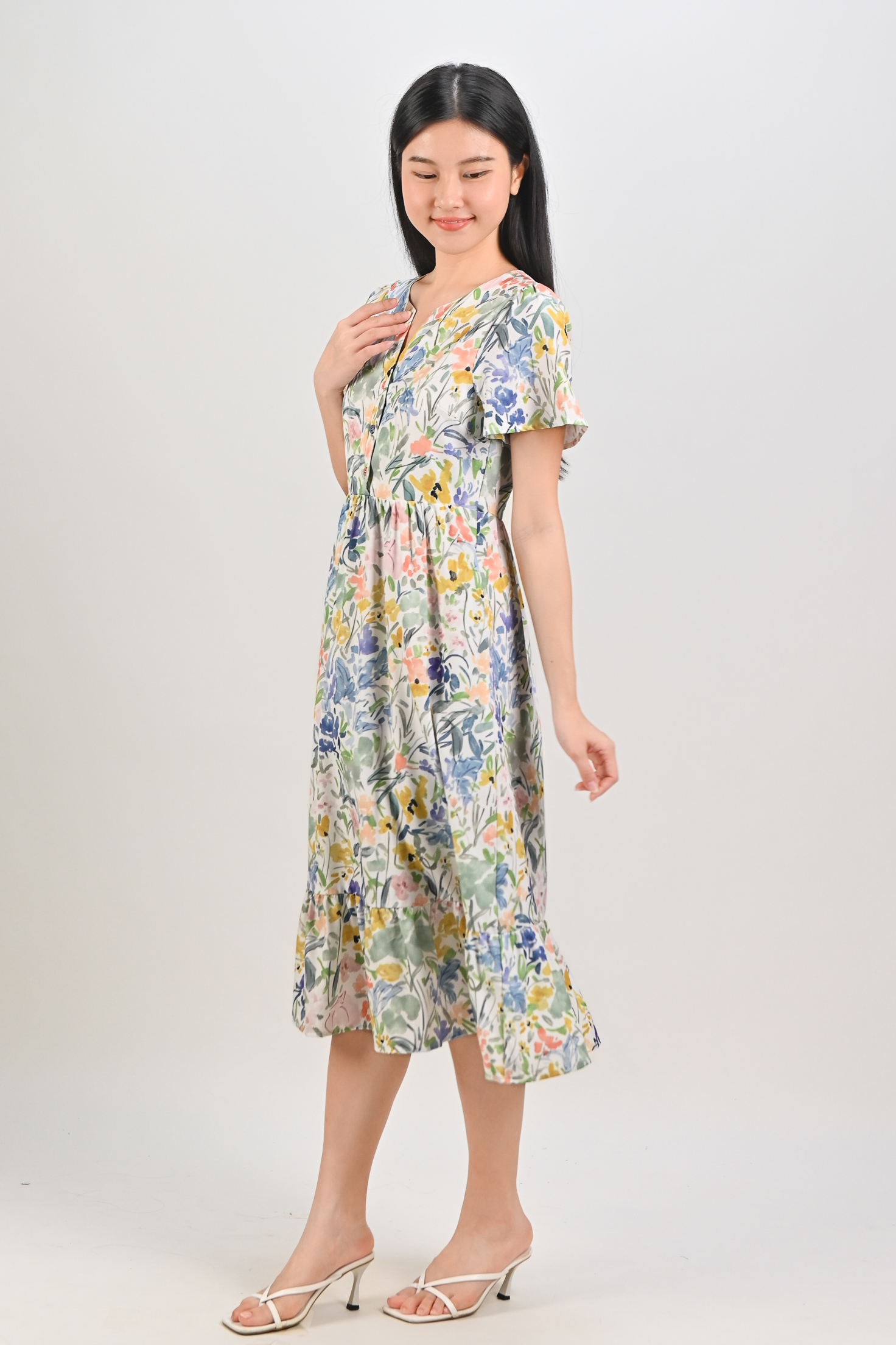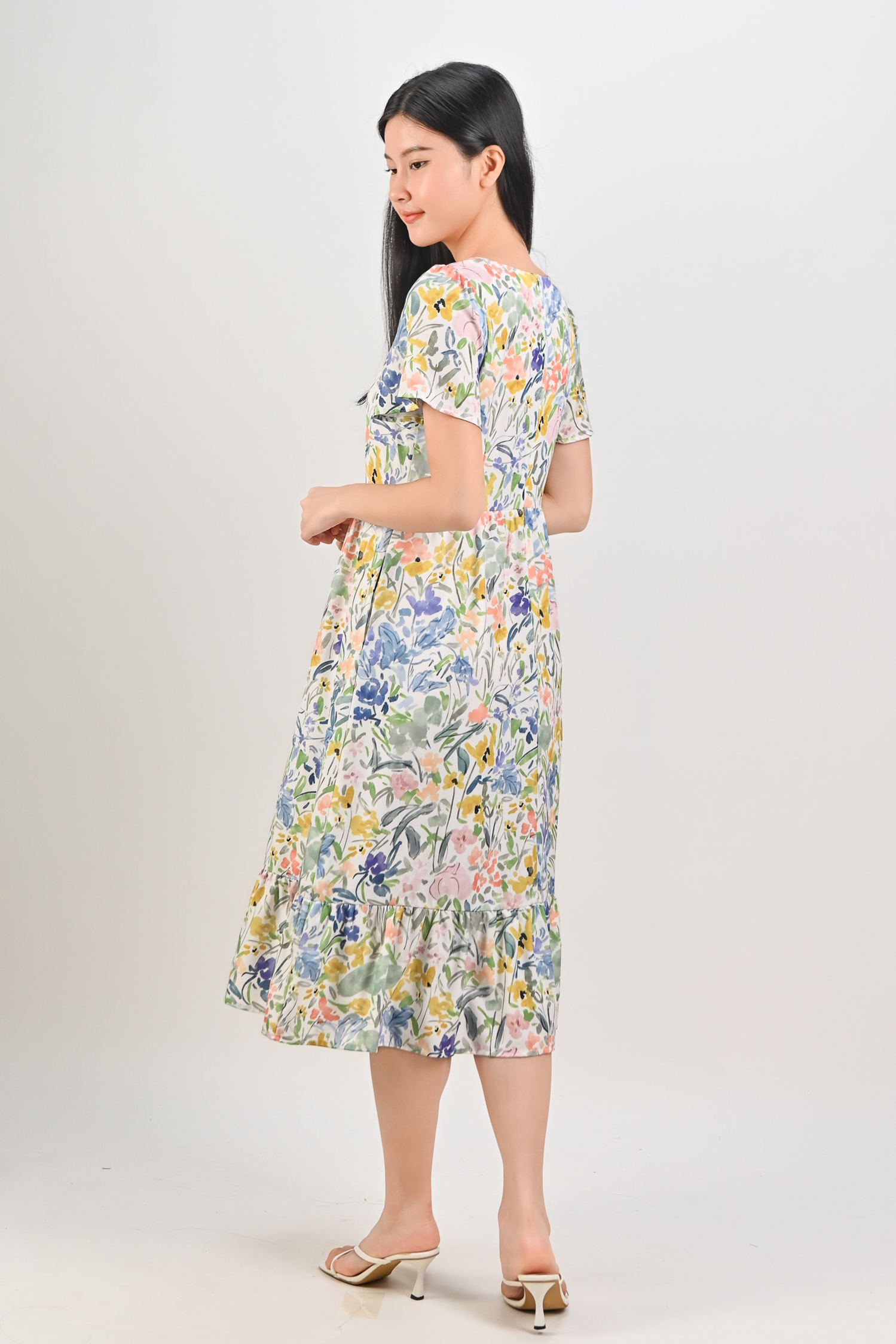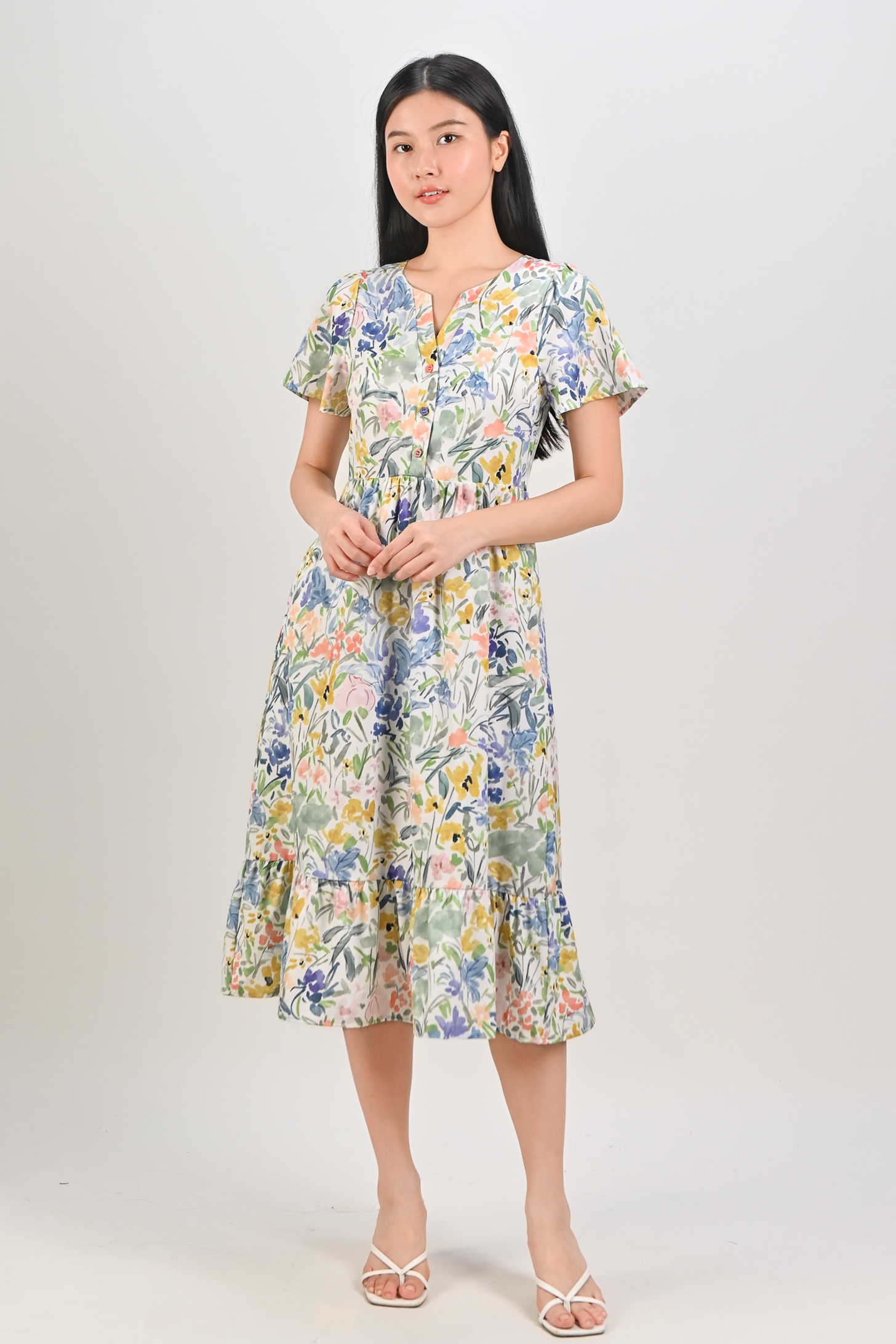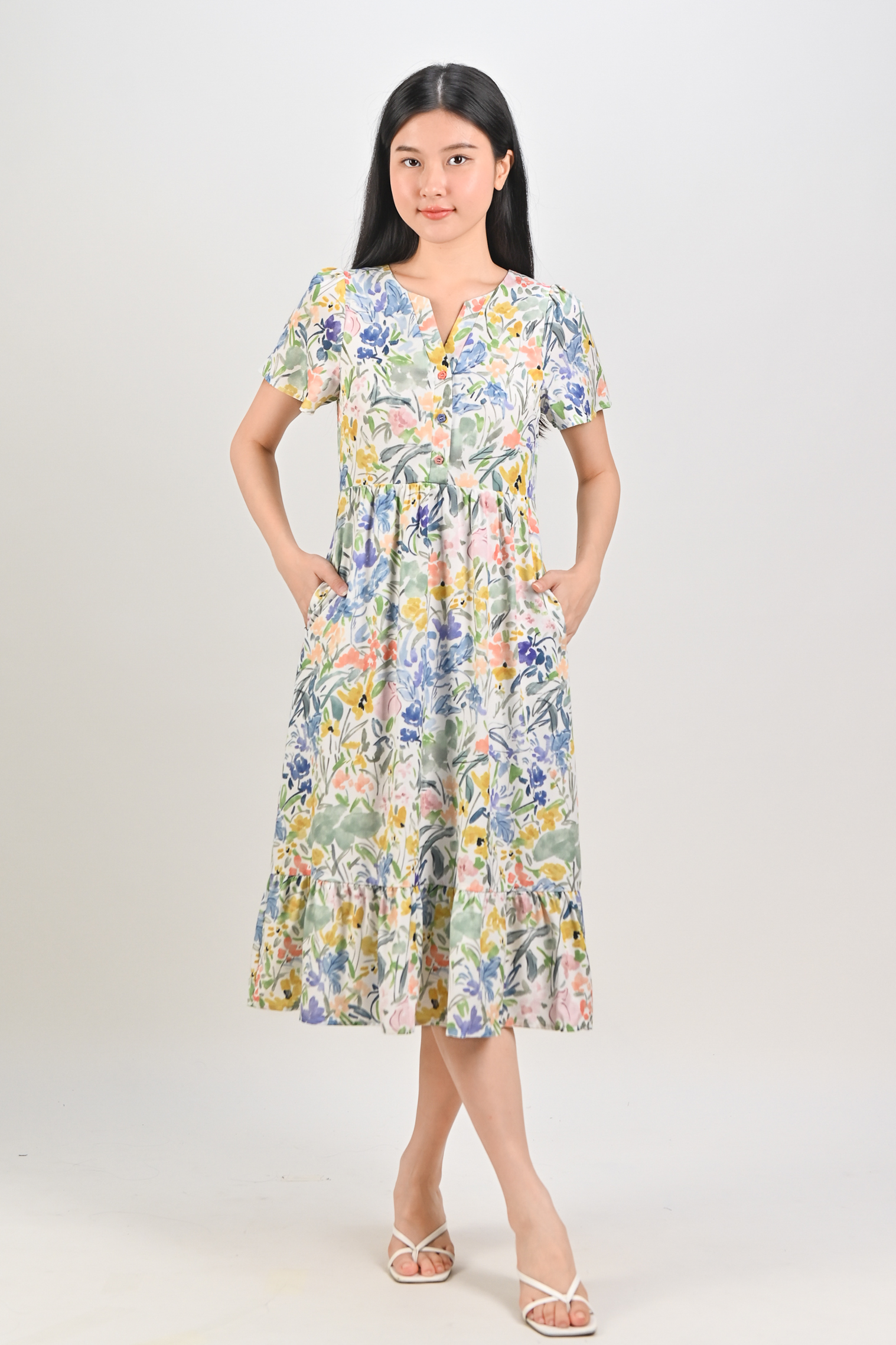 Actual stocks may varyEmbark on a colourful adventure in our Islie Watercolour Dress! Featuring coloured flower buttons and vibrant hues that make this dress oh-so-pleasing ✨