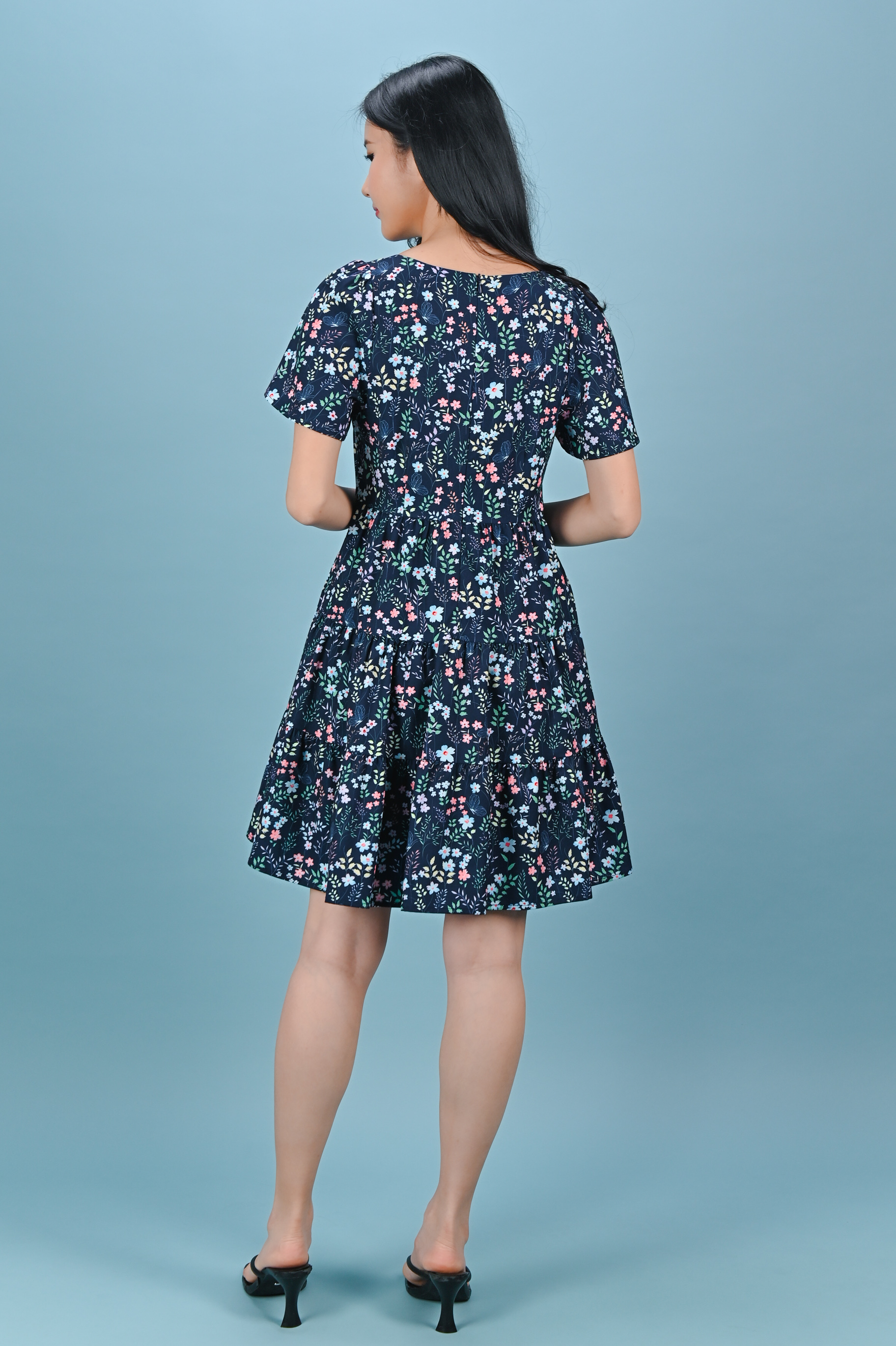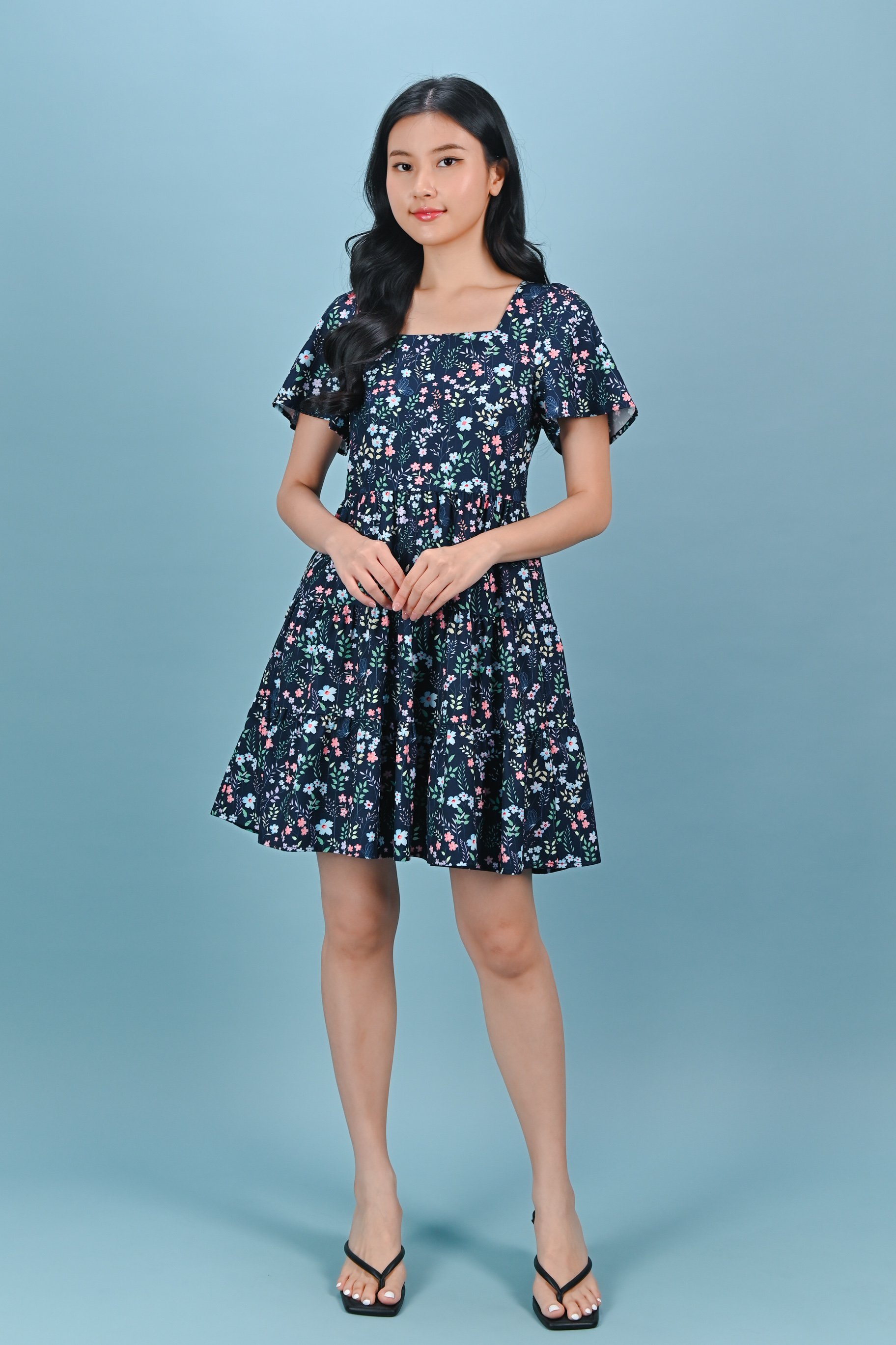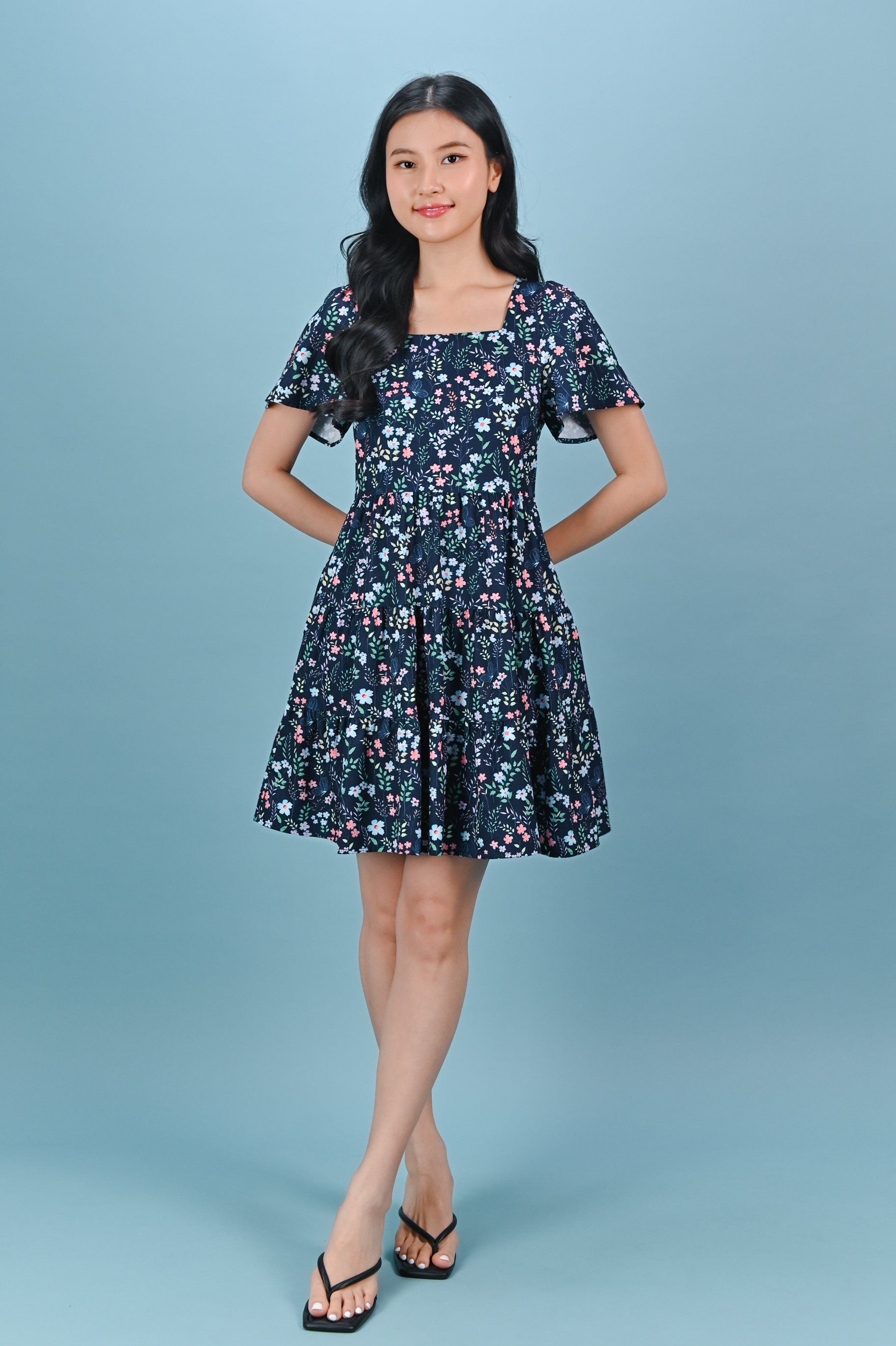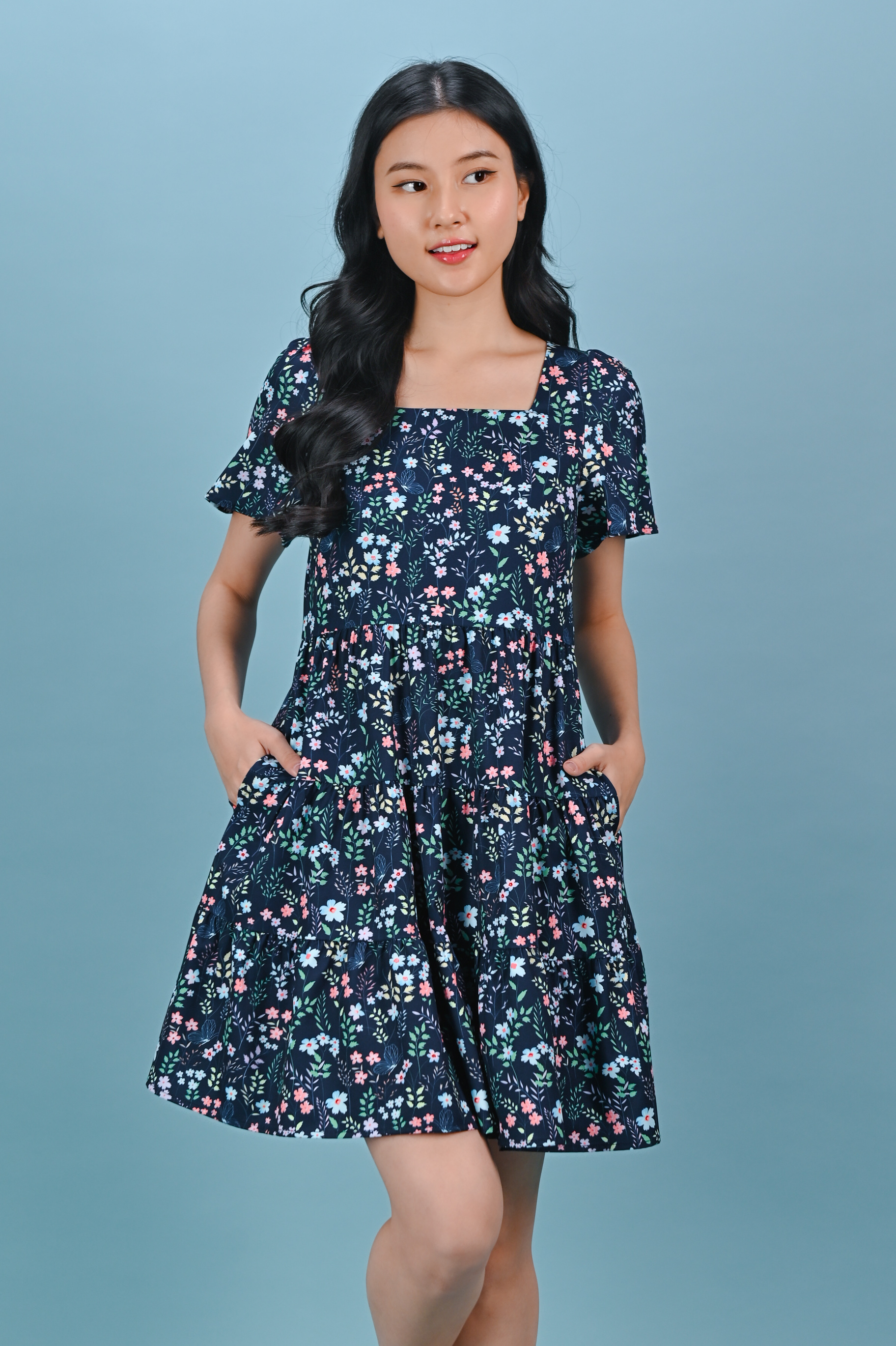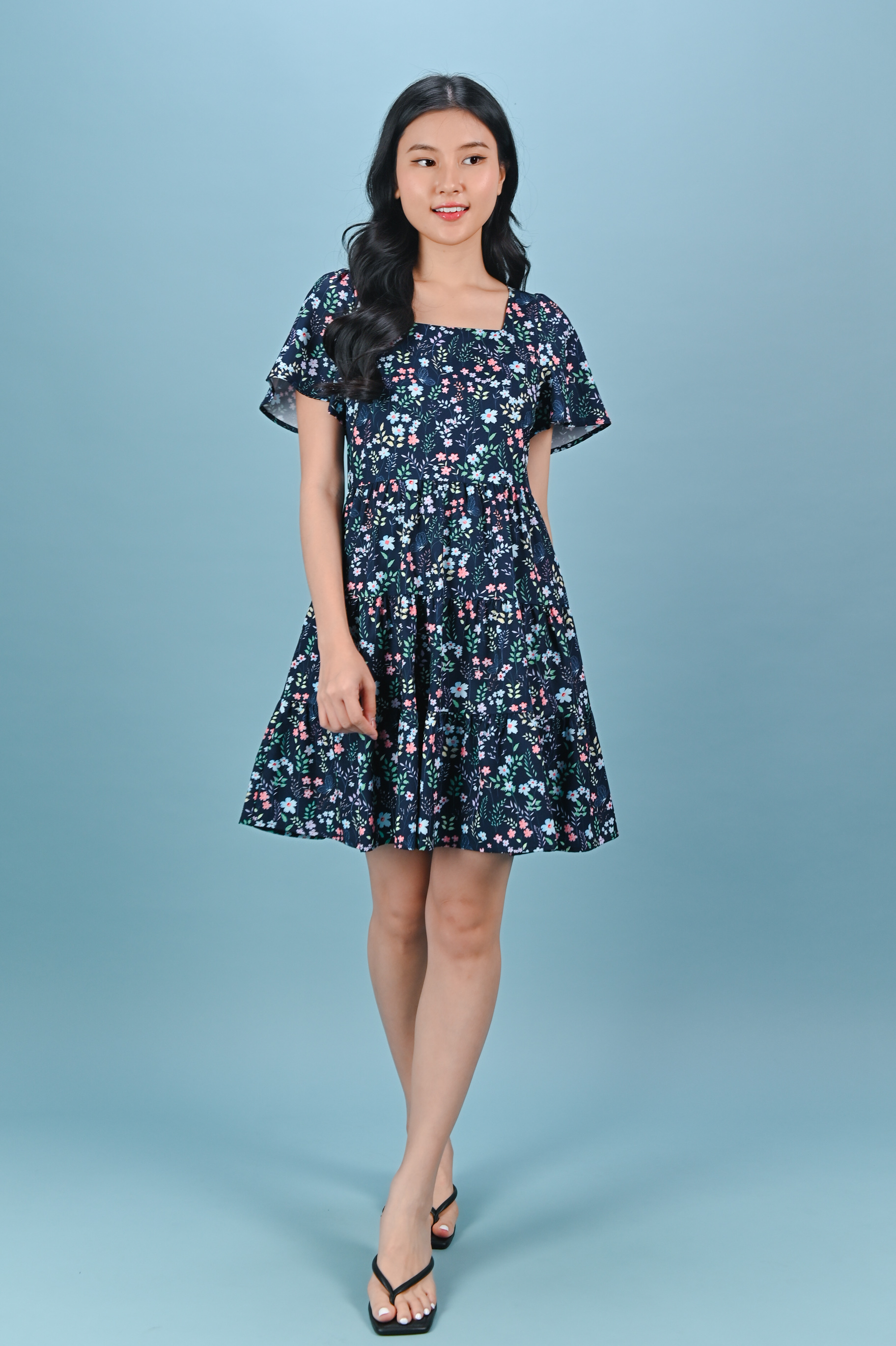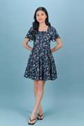 IVY LIT FLORAL SQUARE-NECK BABYDOLL DRESS