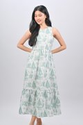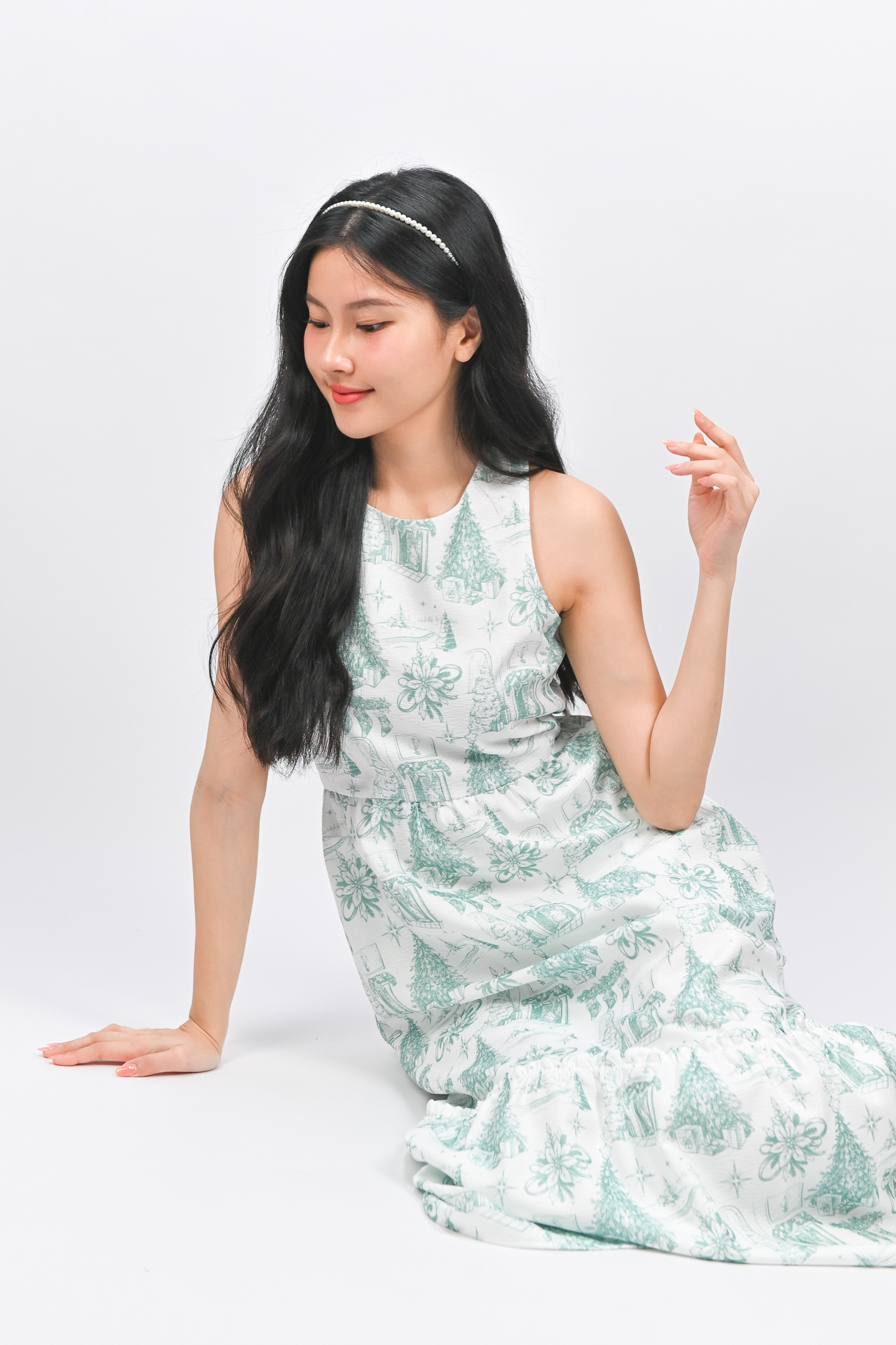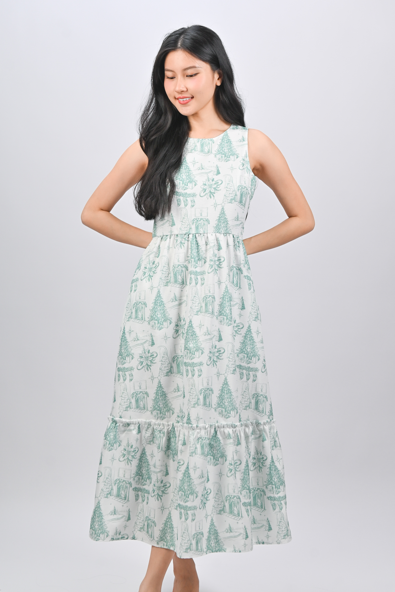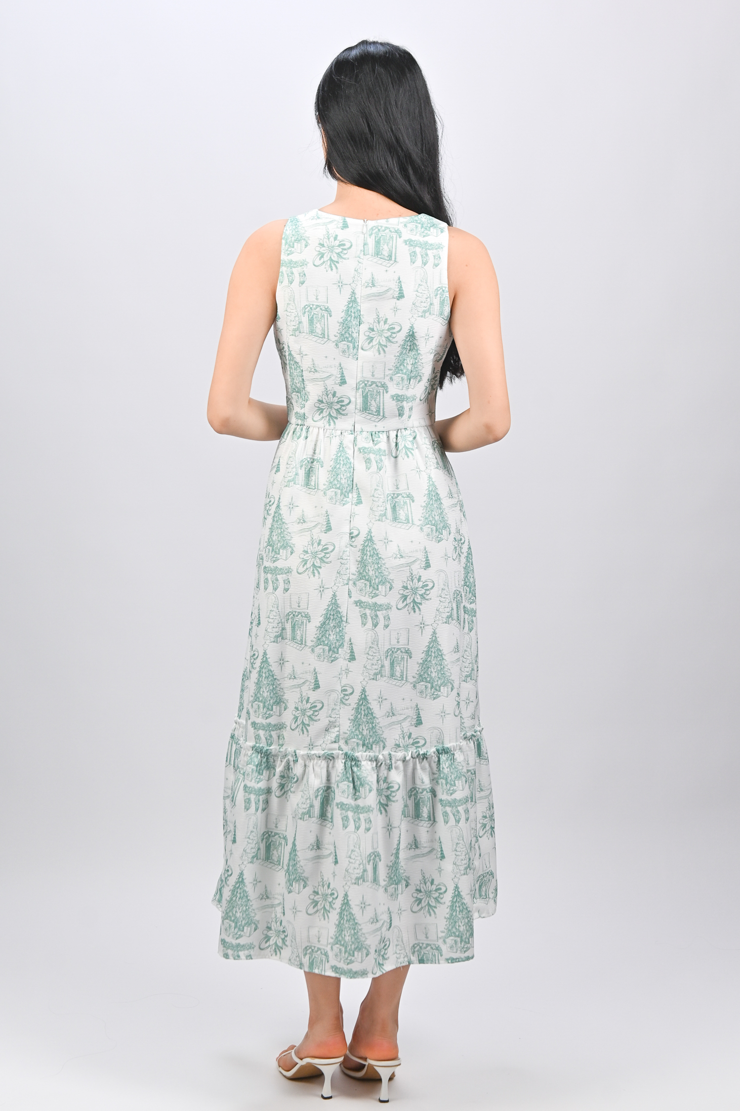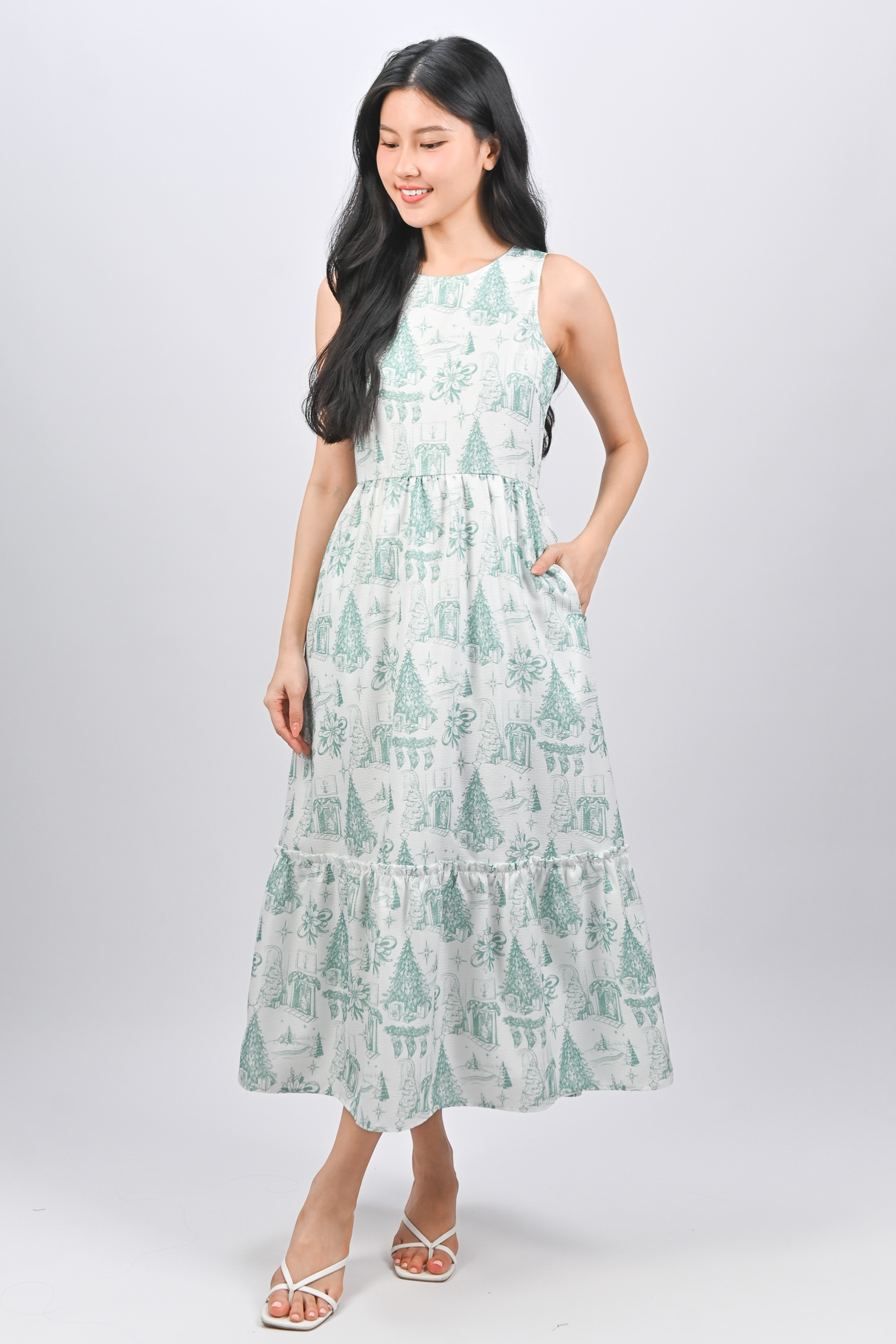 JINGLE JOY SLEEVELESS TIERED MIDAXI DRESS IN GREEN