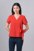 JINXI EYELET SLEEVED TOP IN ORANGE
