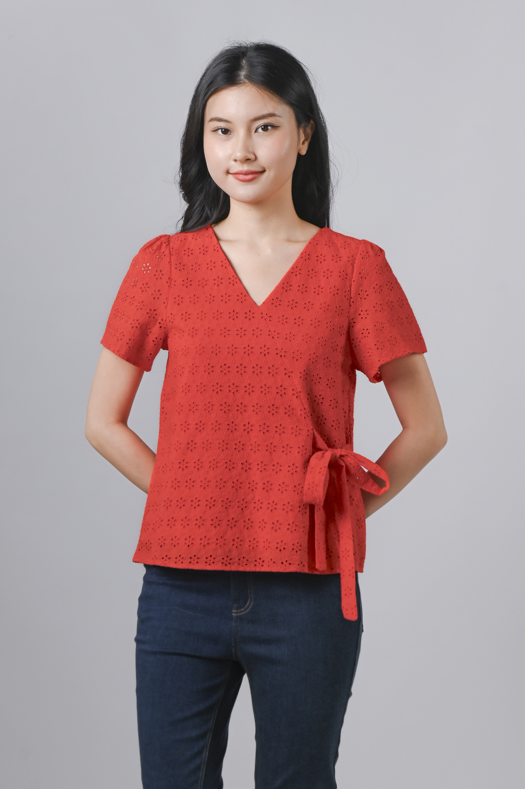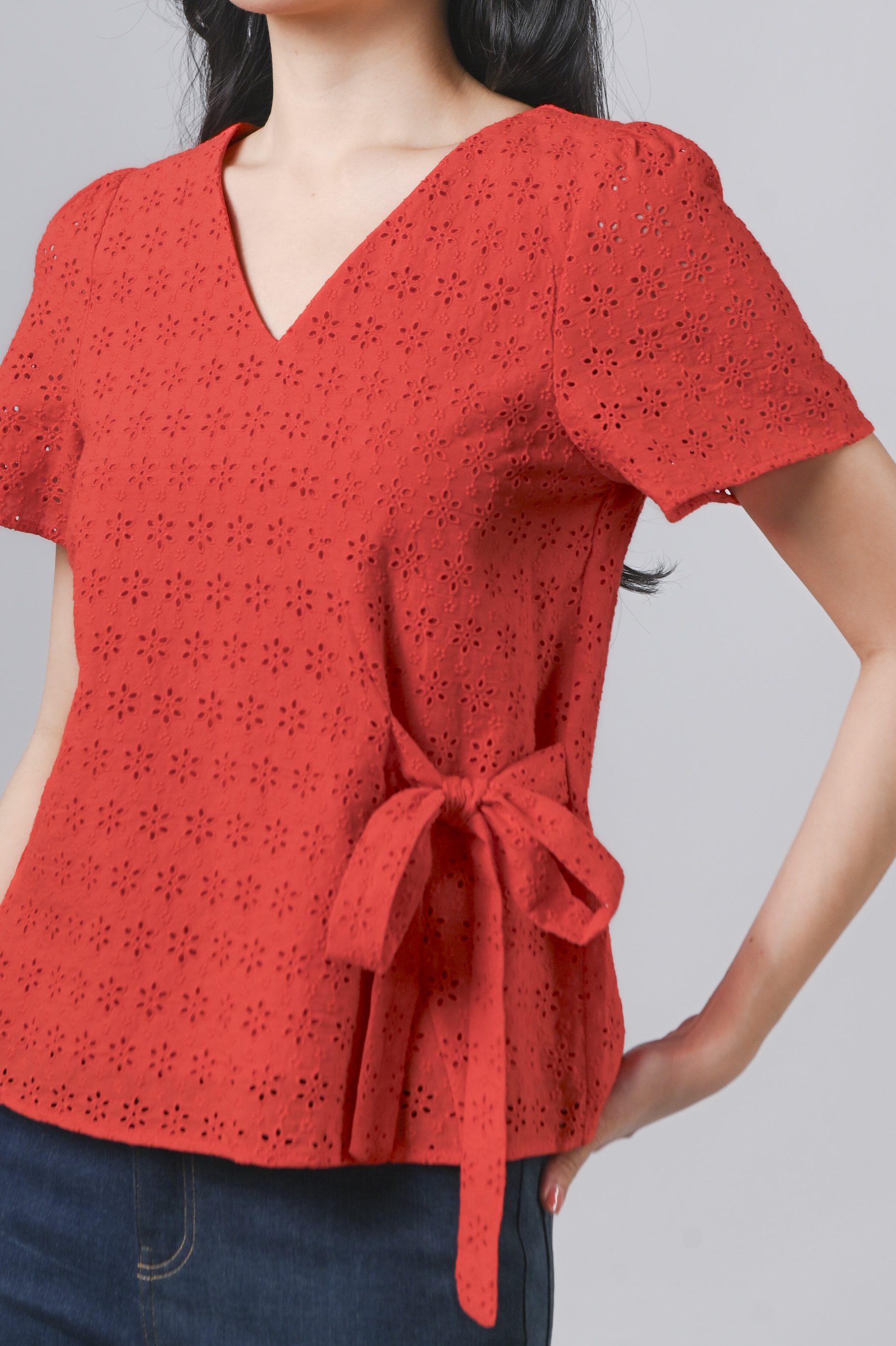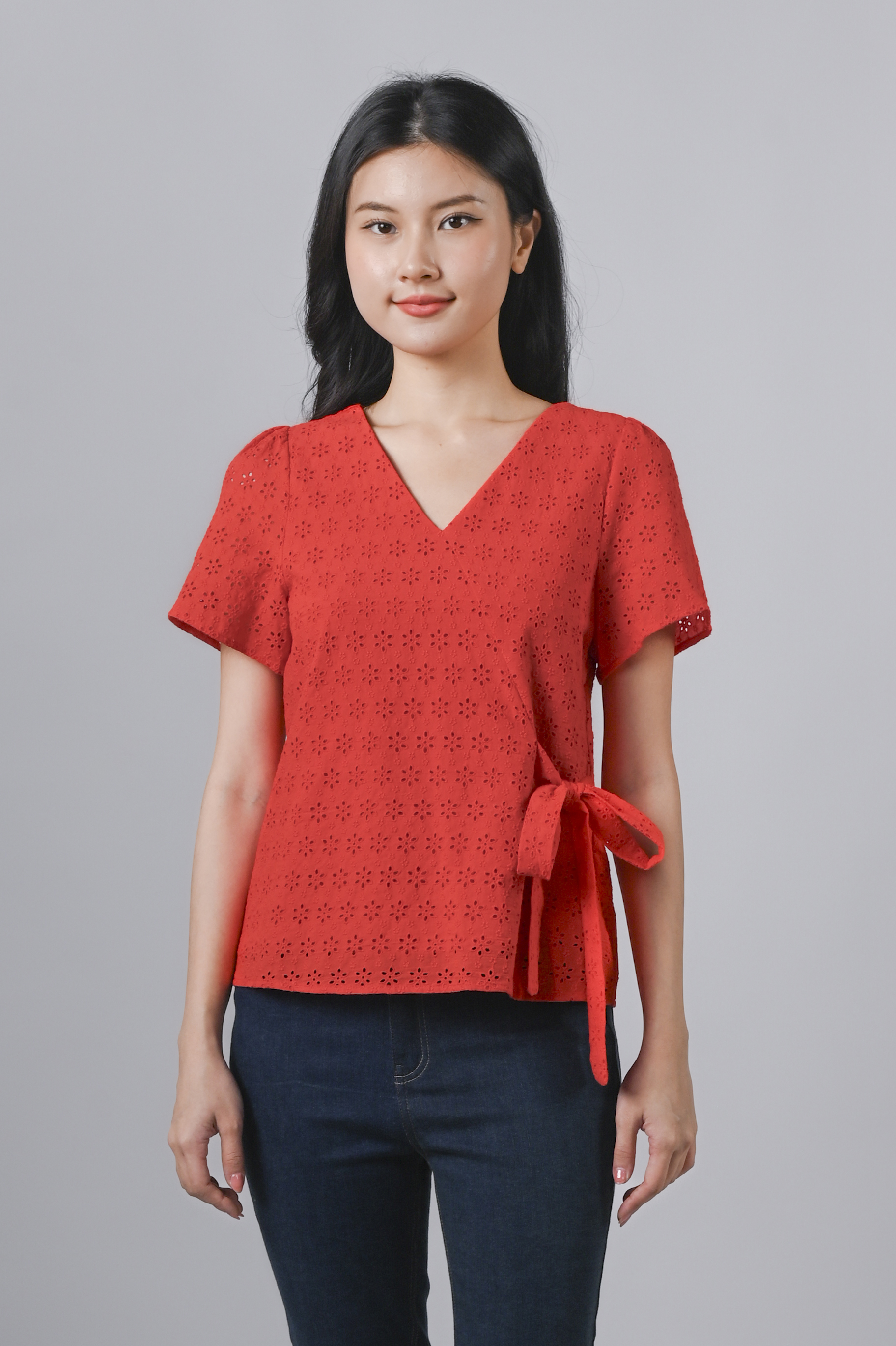 Actual stocks may varyBright, bold, and ready for conquer the day! ๐๐ Our Jinxi Eyelet Top offers summer energy and year-round wearability! ๐งก