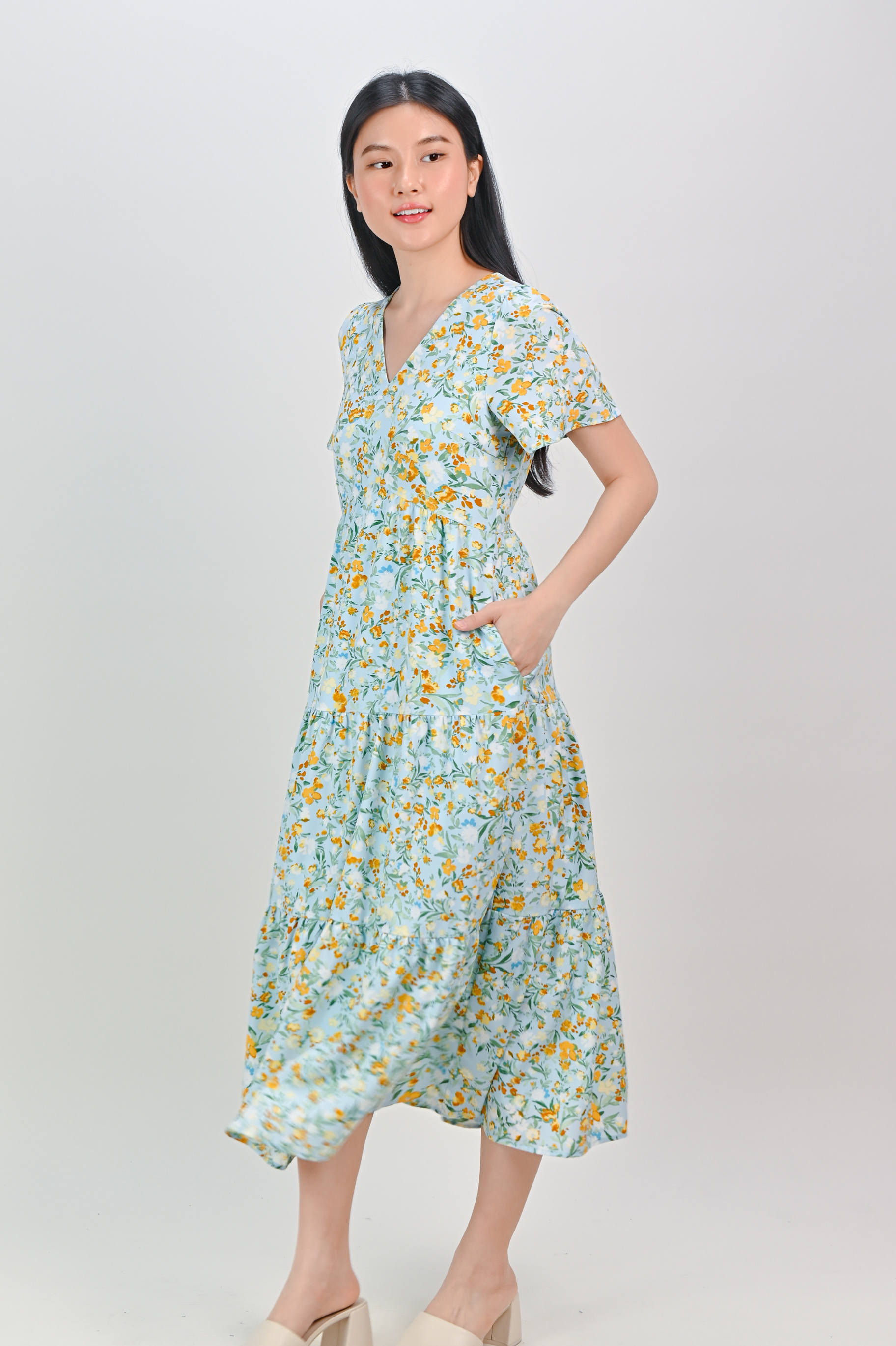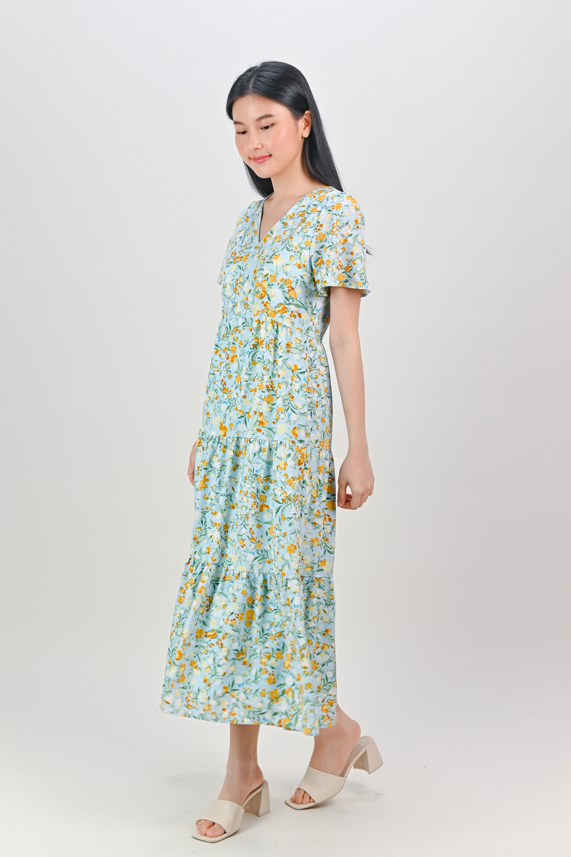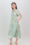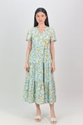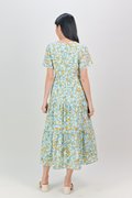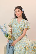 JOPLIN FLORAL SLEEVED TIERED MIDAXI IN BLUE