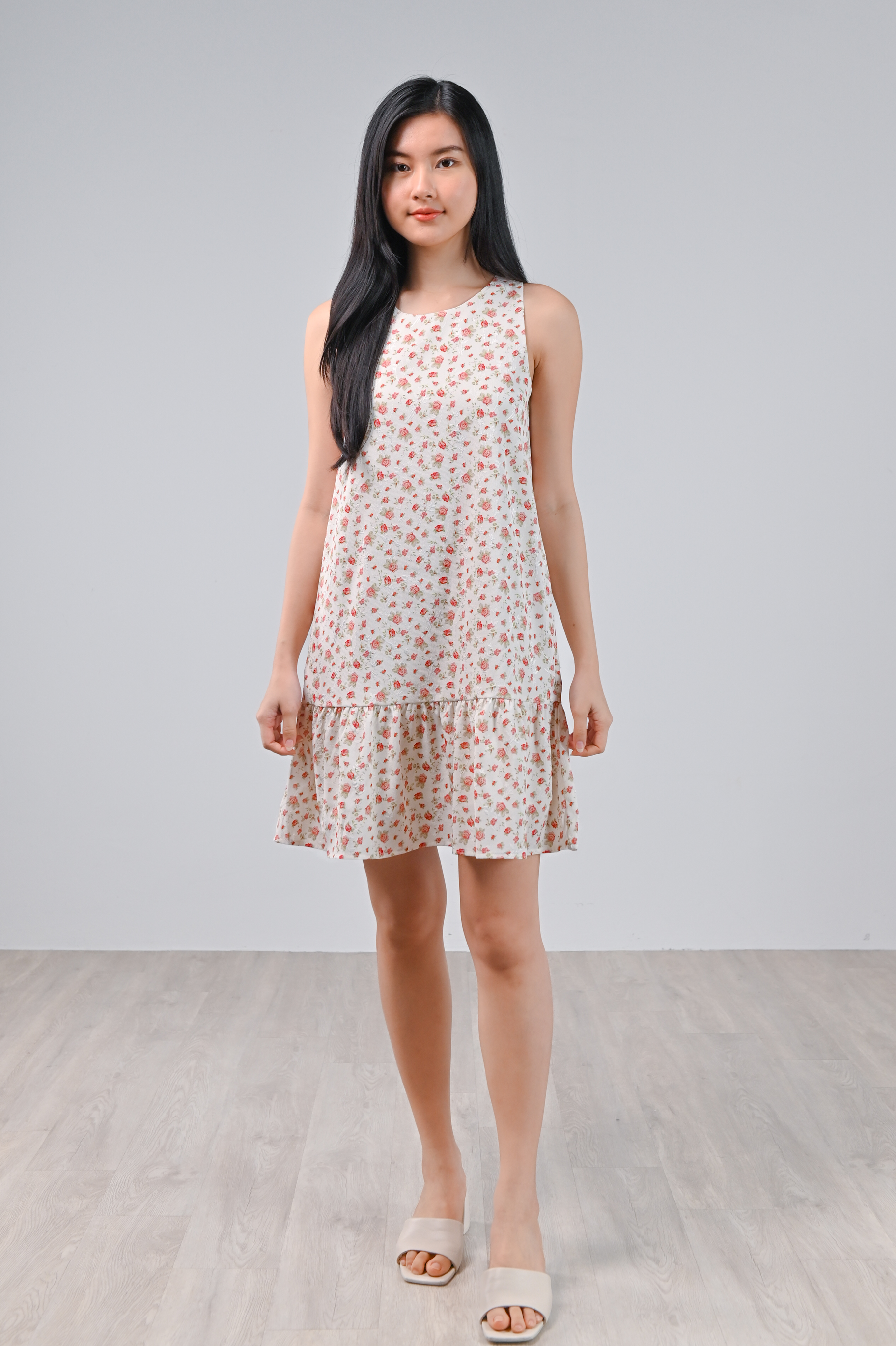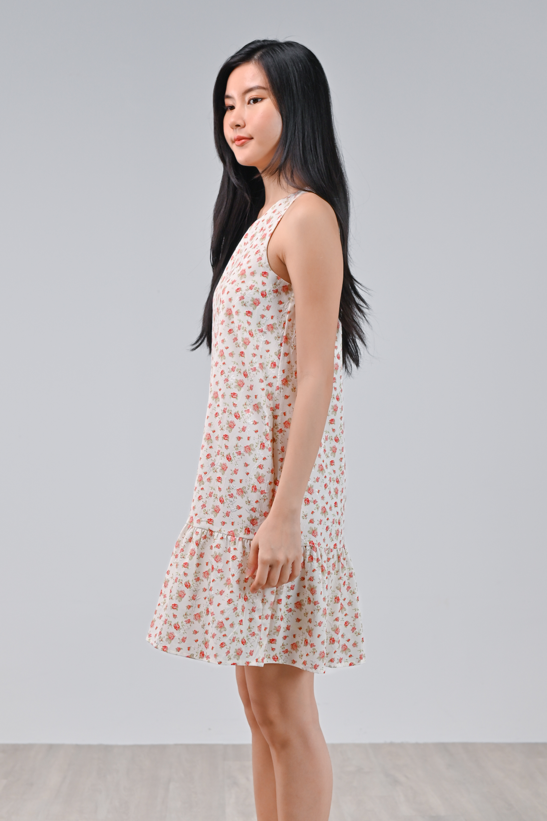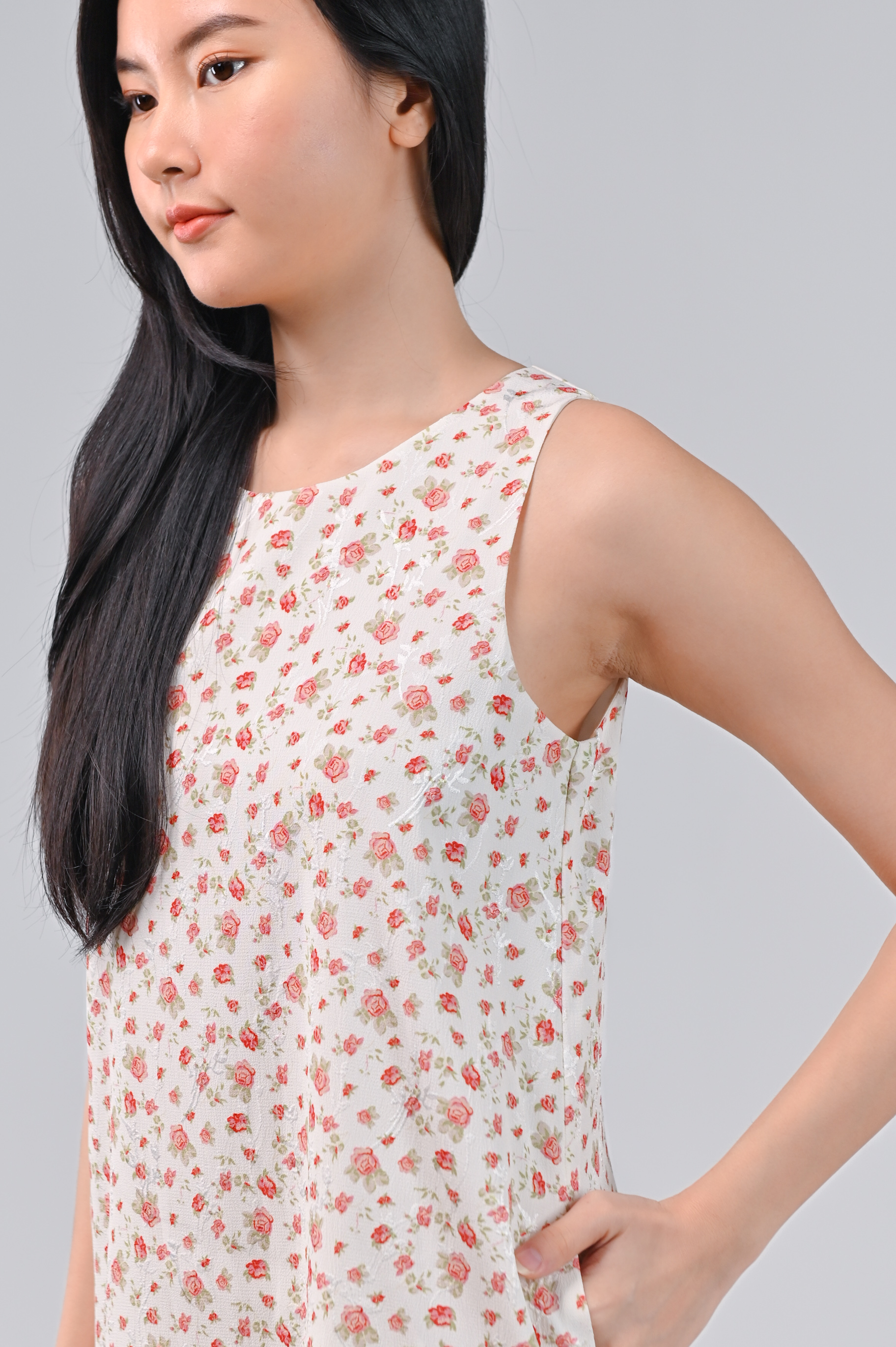 JULIANA RED ROSES SLEEVELESS DROPWAIST DRESS