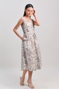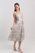 JUSTY BUTTERFLY SLEEVELESS PLEAT MIDI DRESS IN PEACH