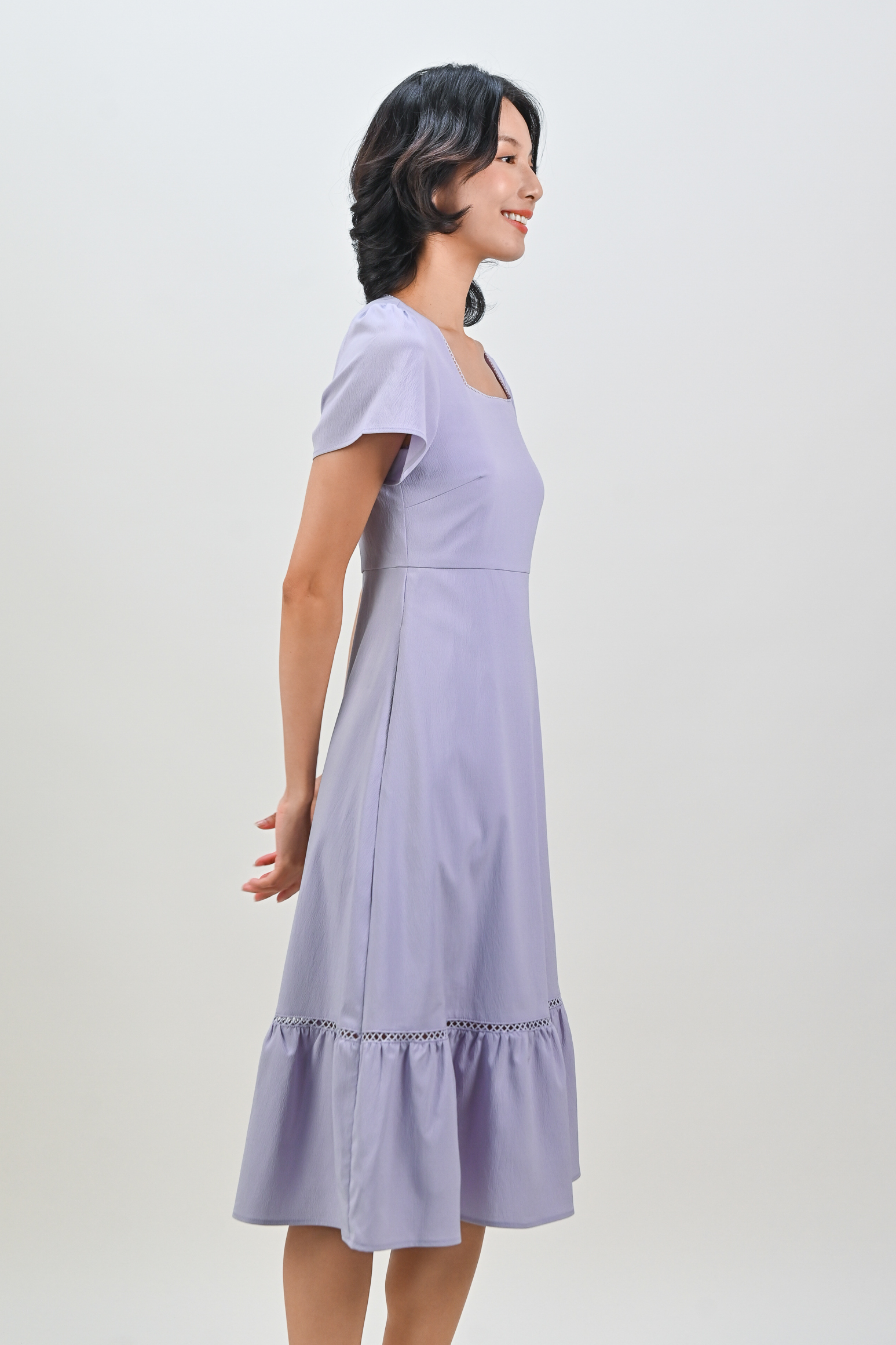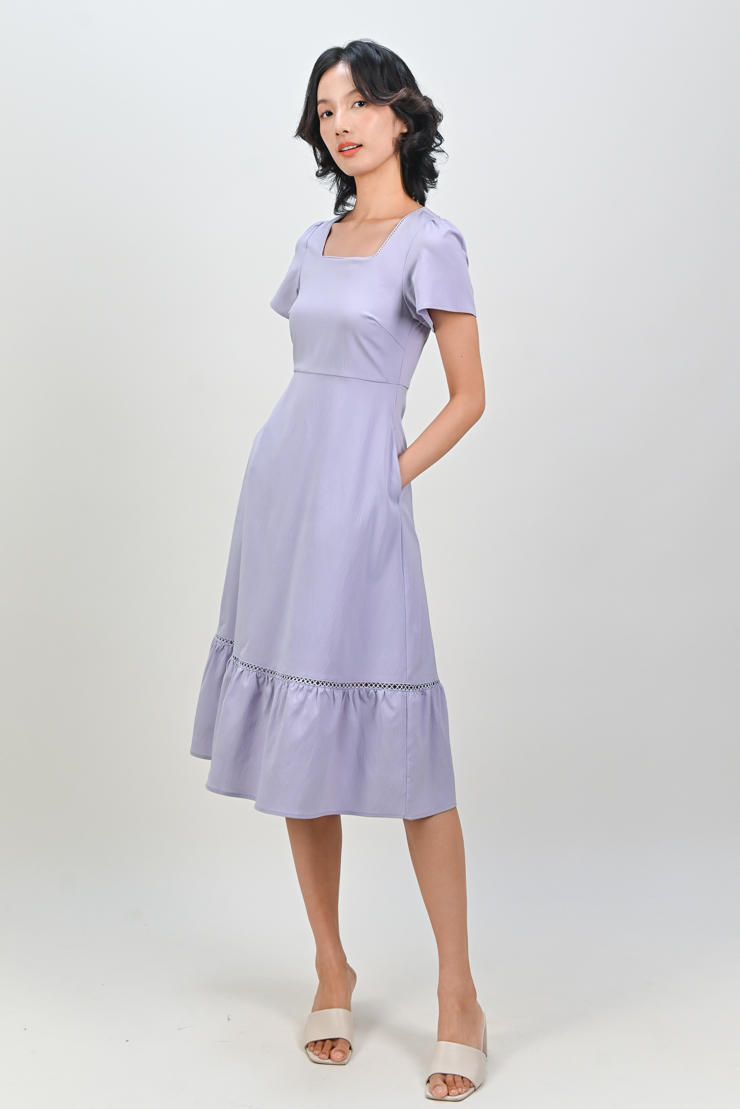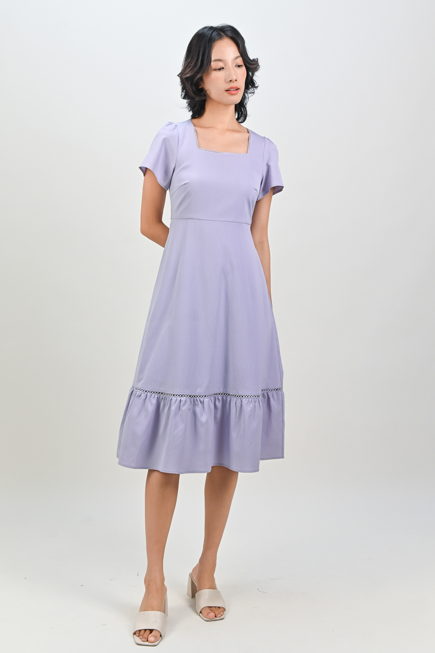 JYNDAL SQUARE-NECK LACE-TRIM DRESS IN LILAC