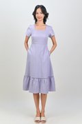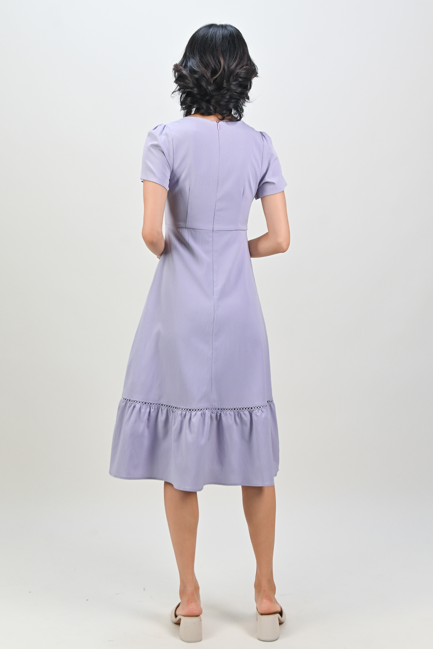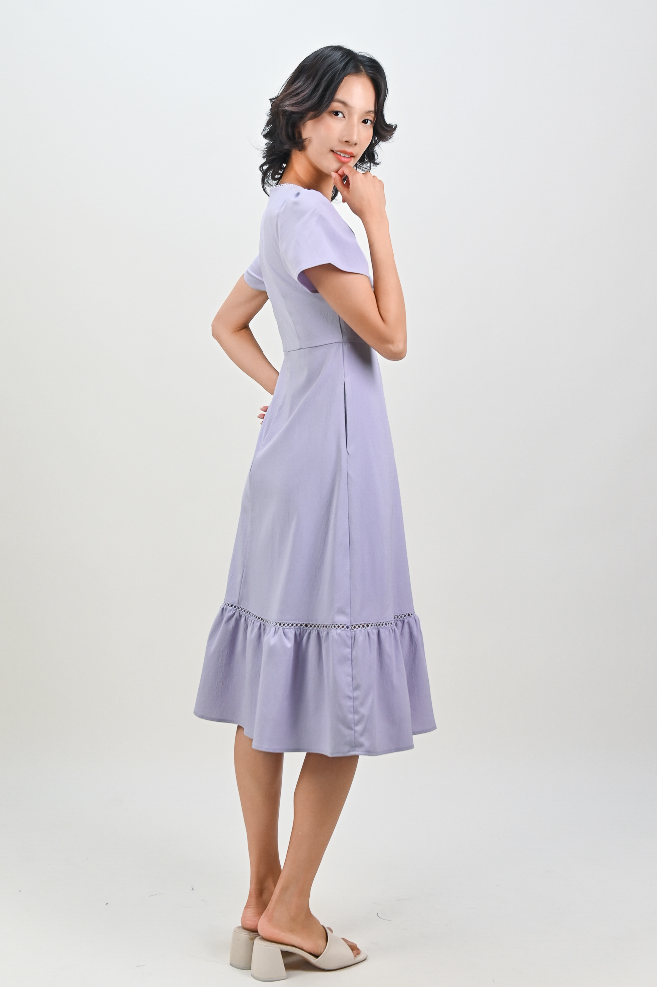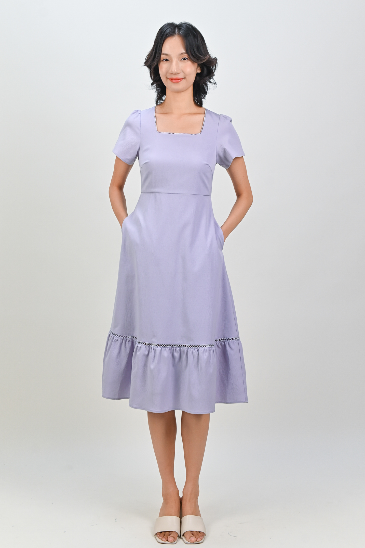 JYNDAL SQUARE-NECK LACE-TRIM DRESS IN LILAC