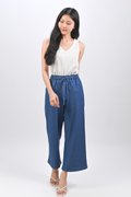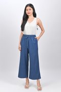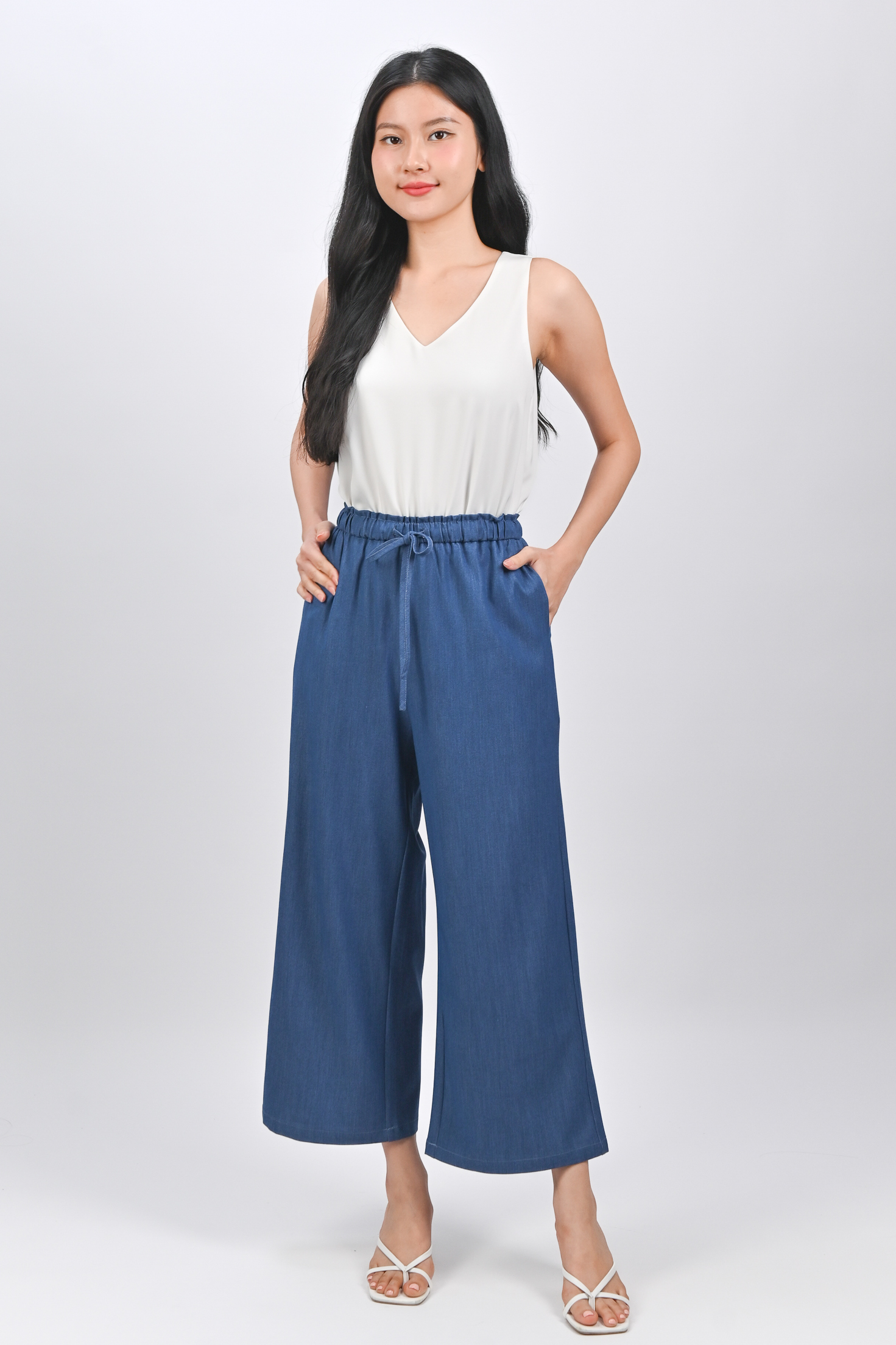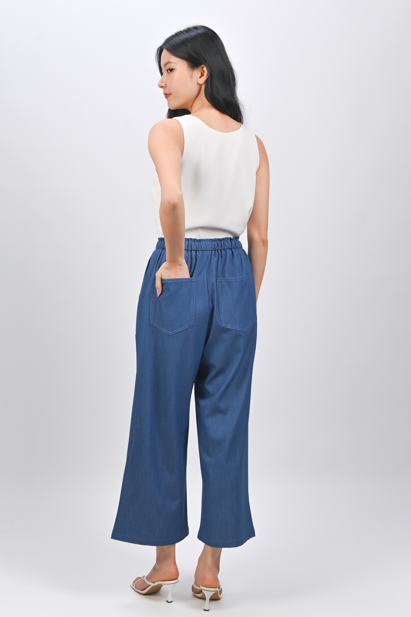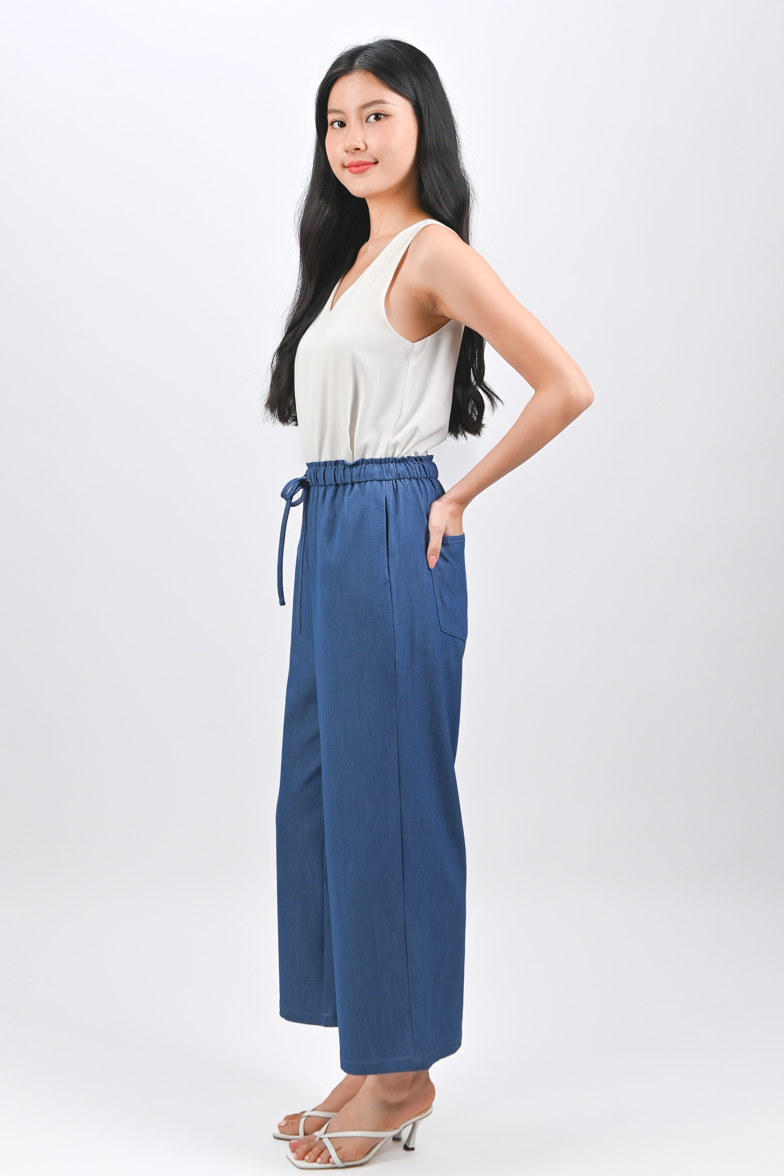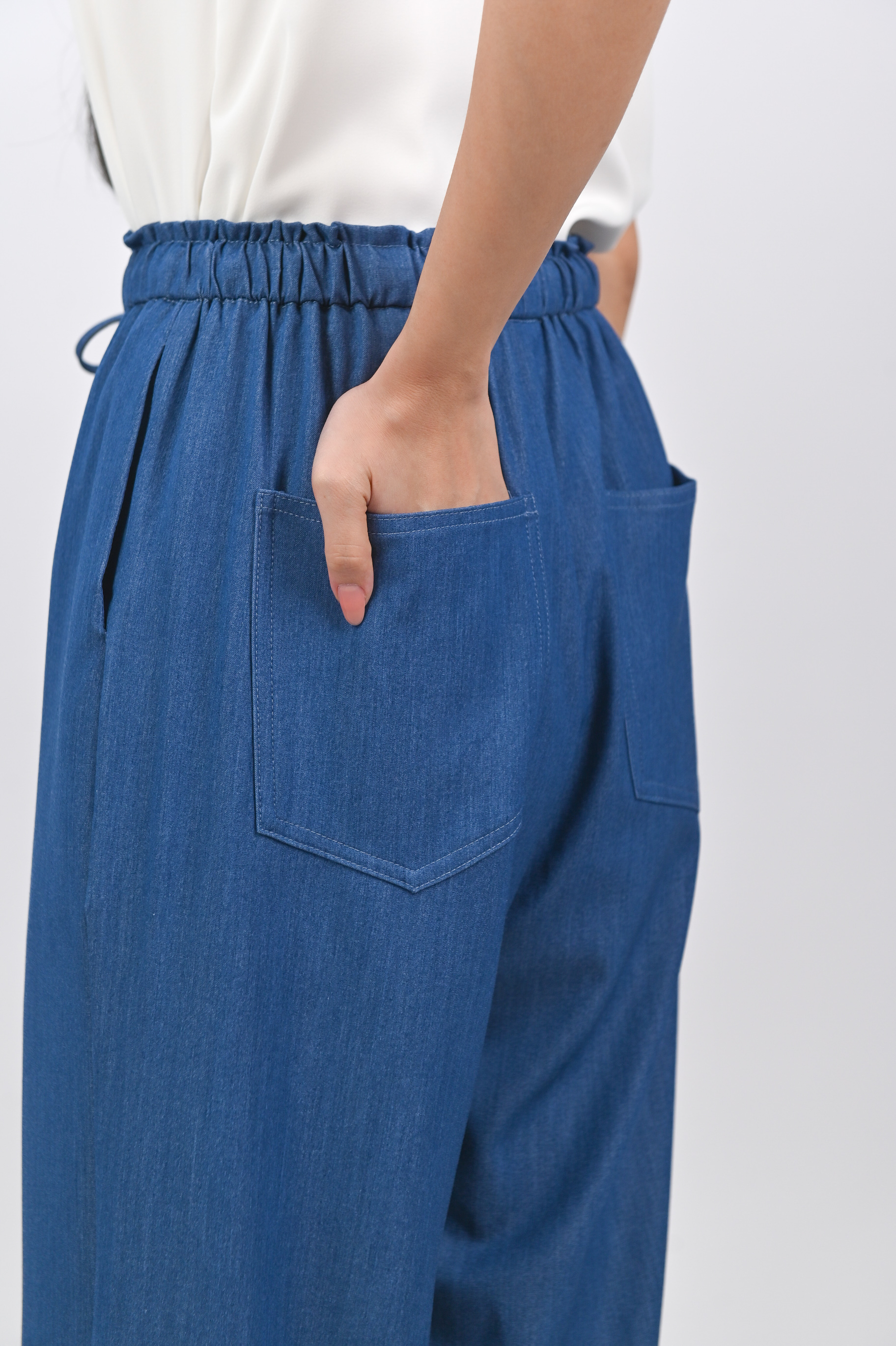JYUN DENIM-LOOK DRAWSTRING PANTS IN MID-WASH