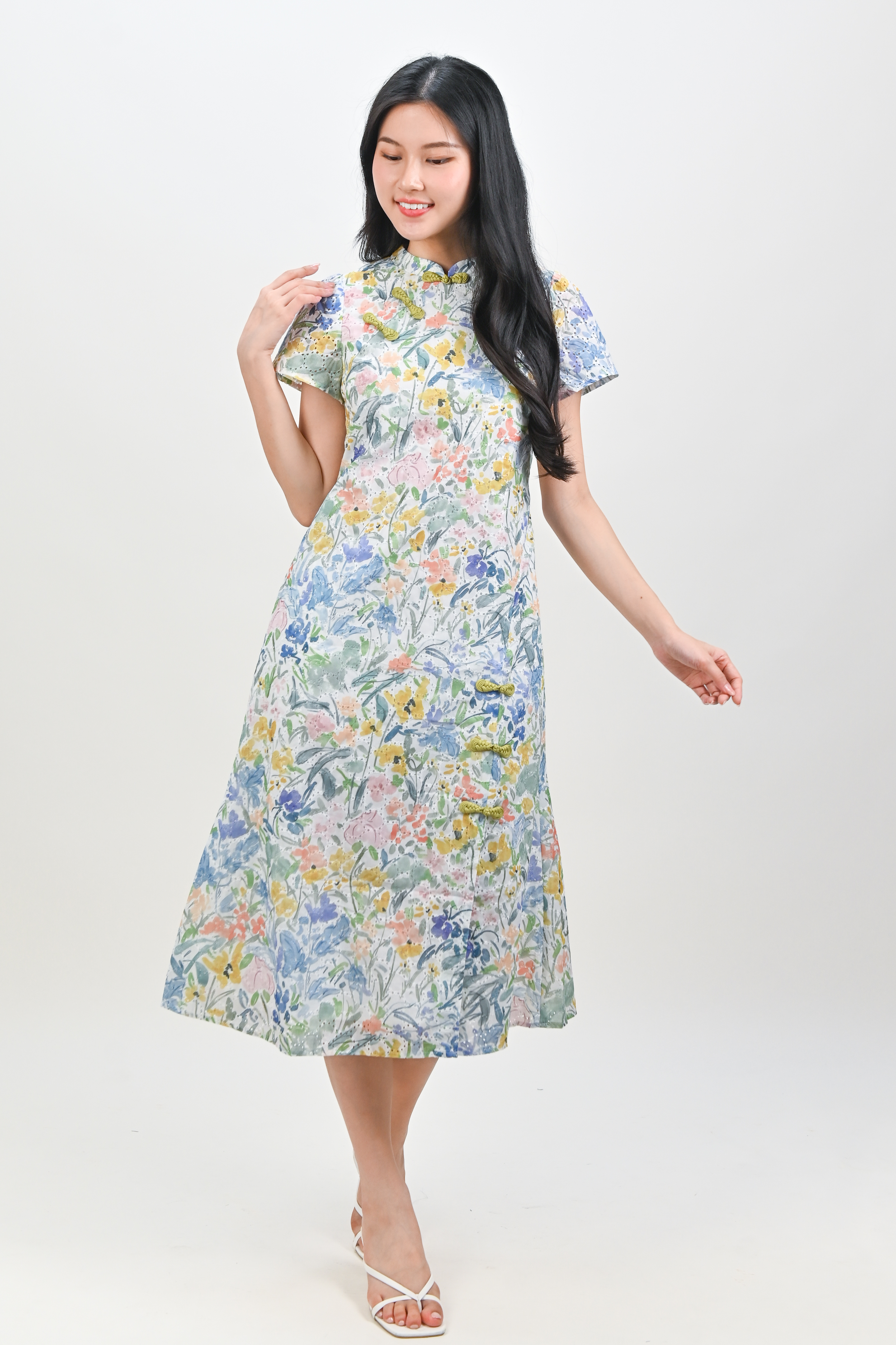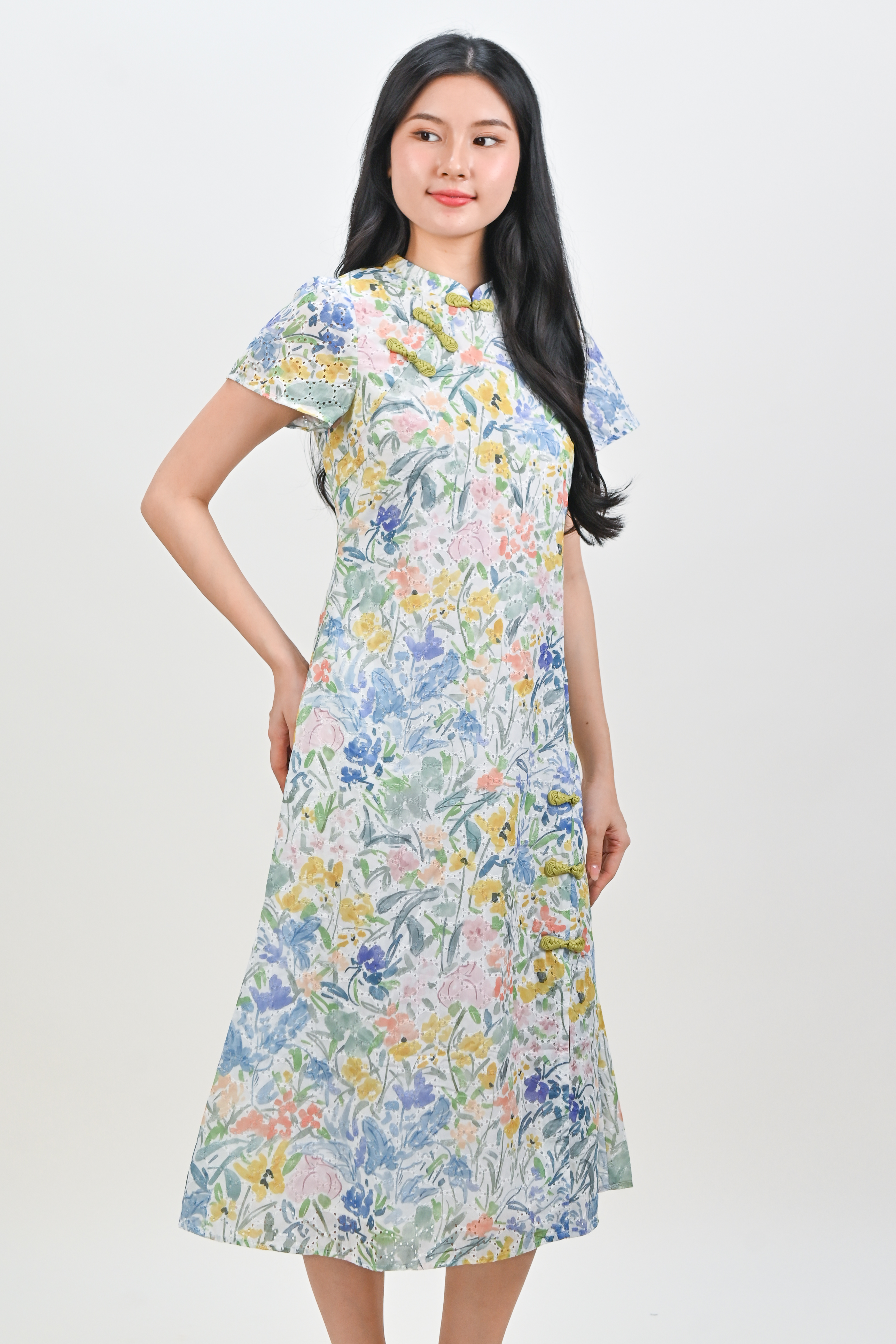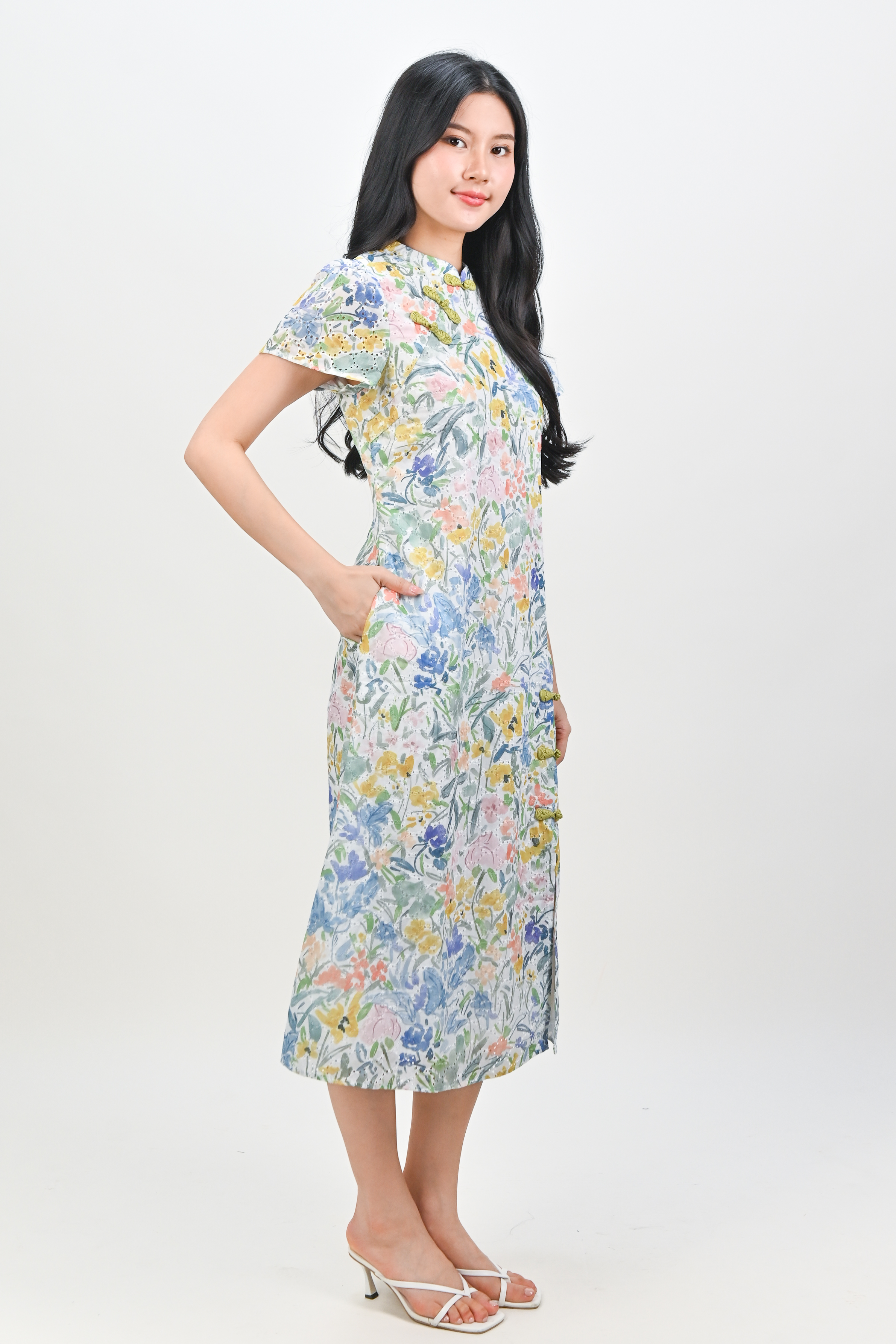 KAILI EYELET FLORAL SLEEVED CHEONGSAM DRESS