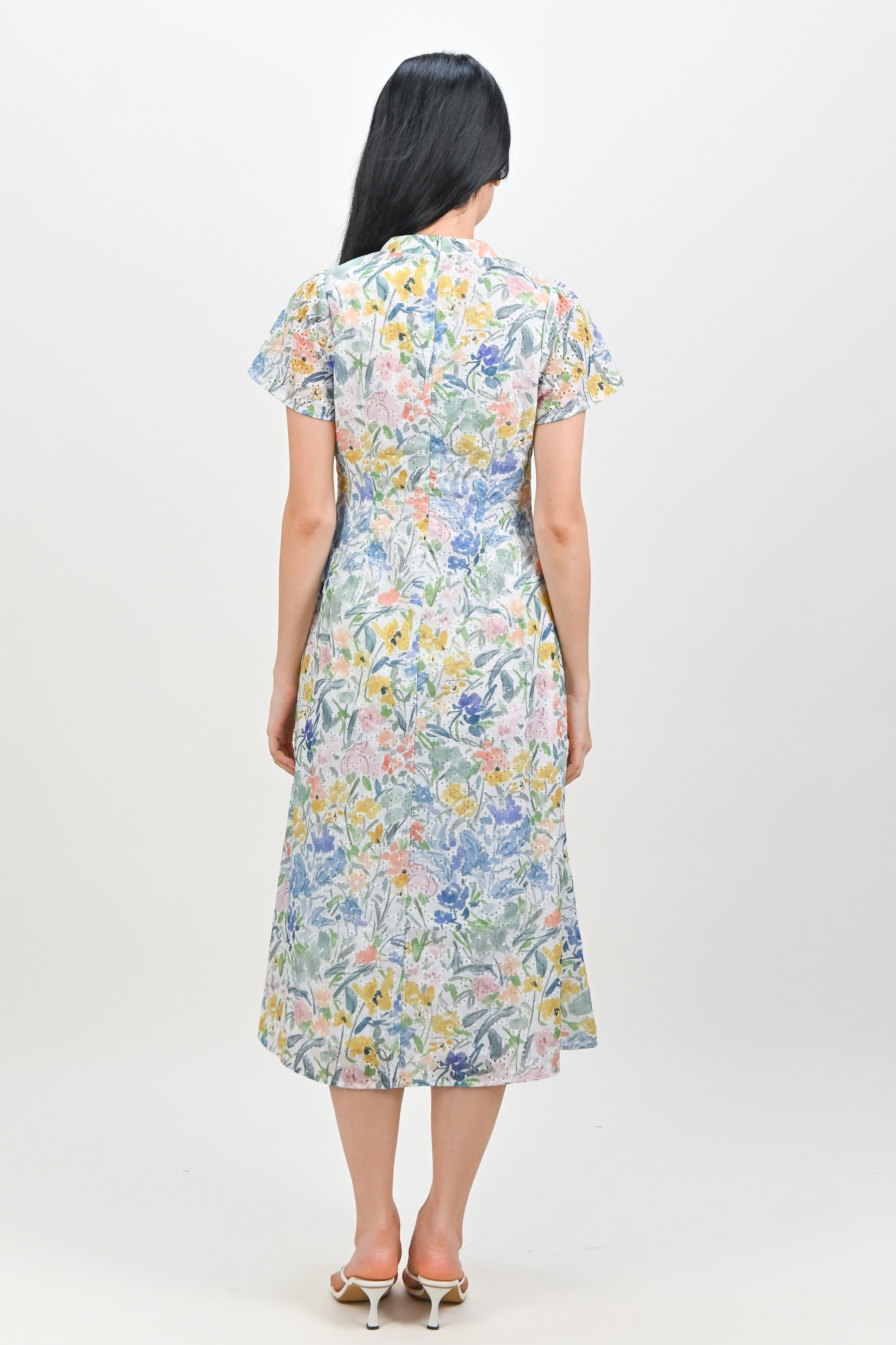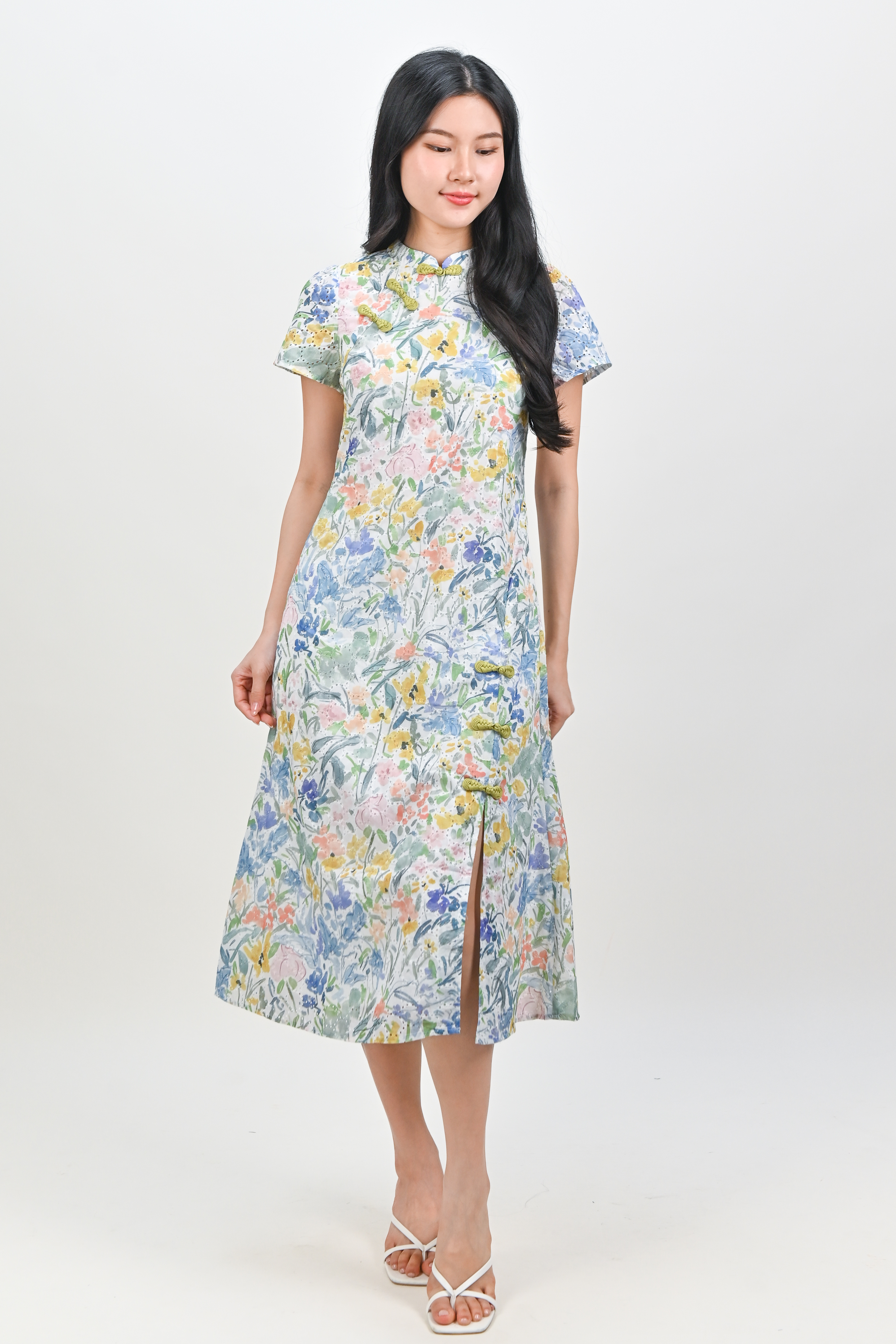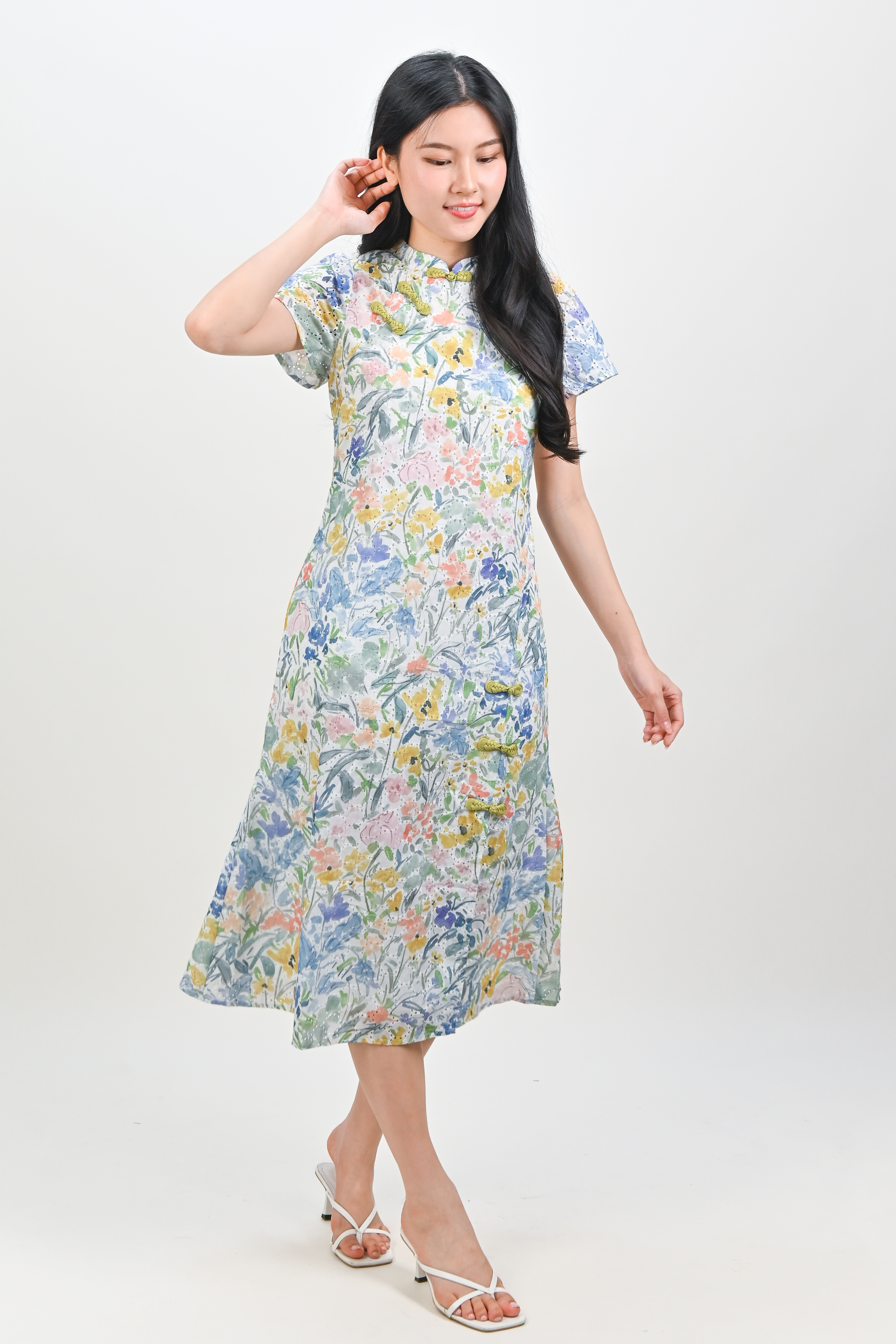 KAILI EYELET FLORAL SLEEVED CHEONGSAM DRESS