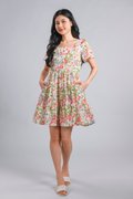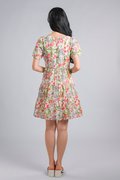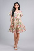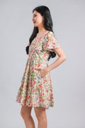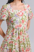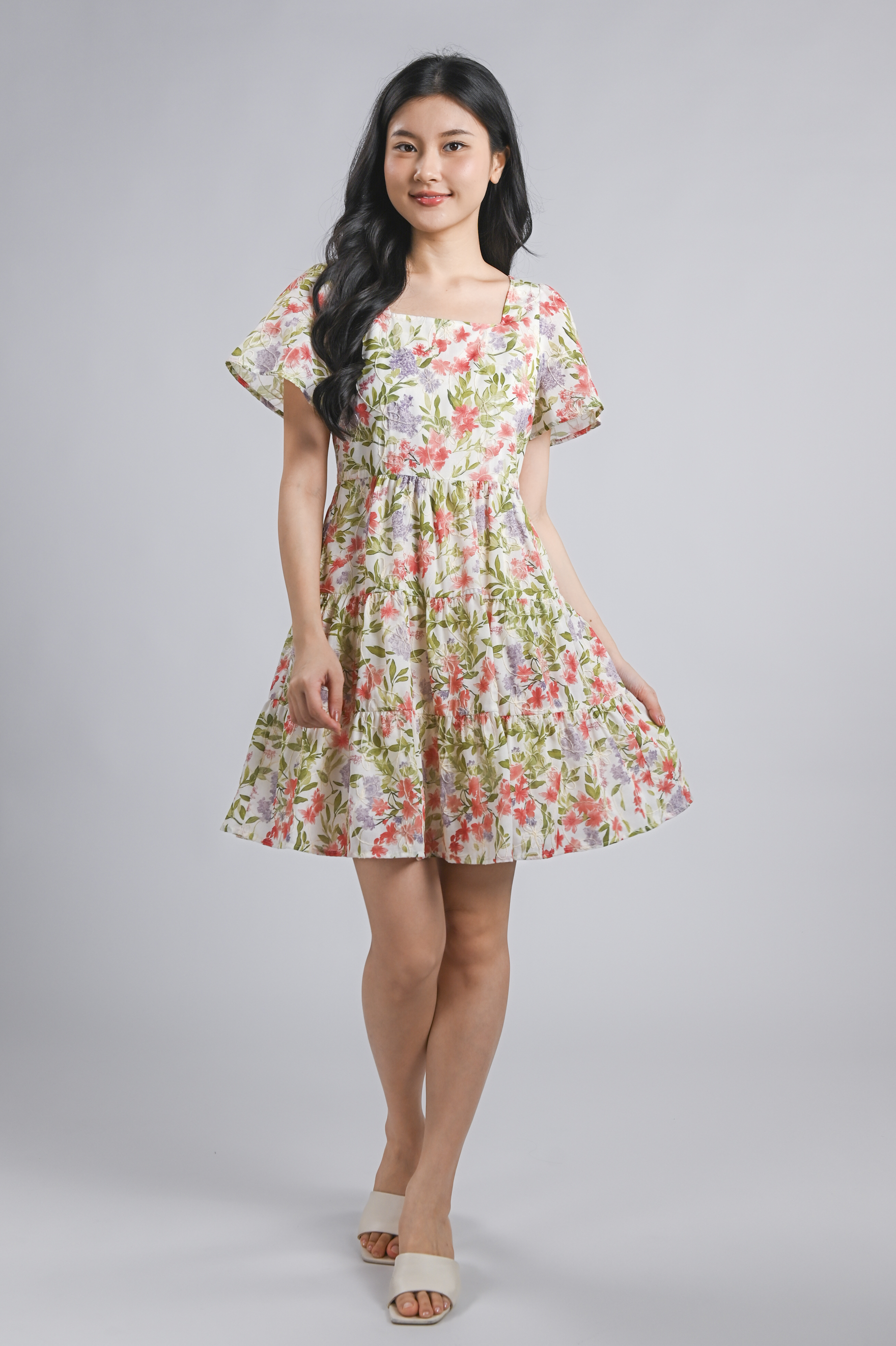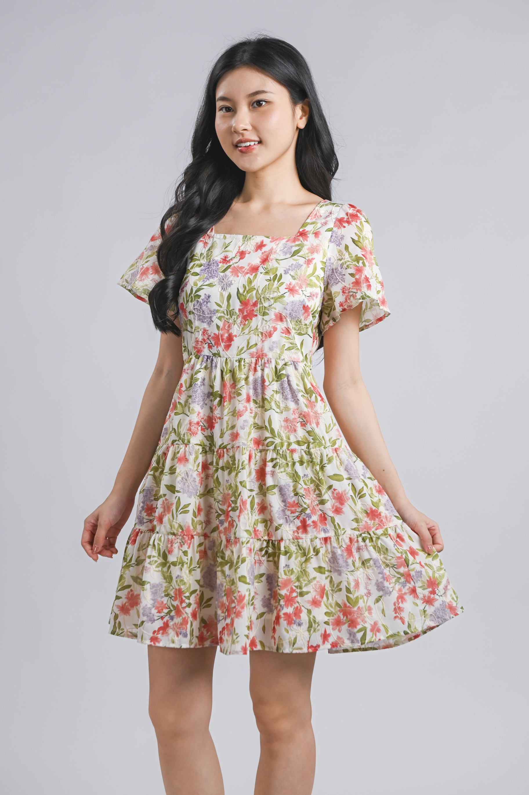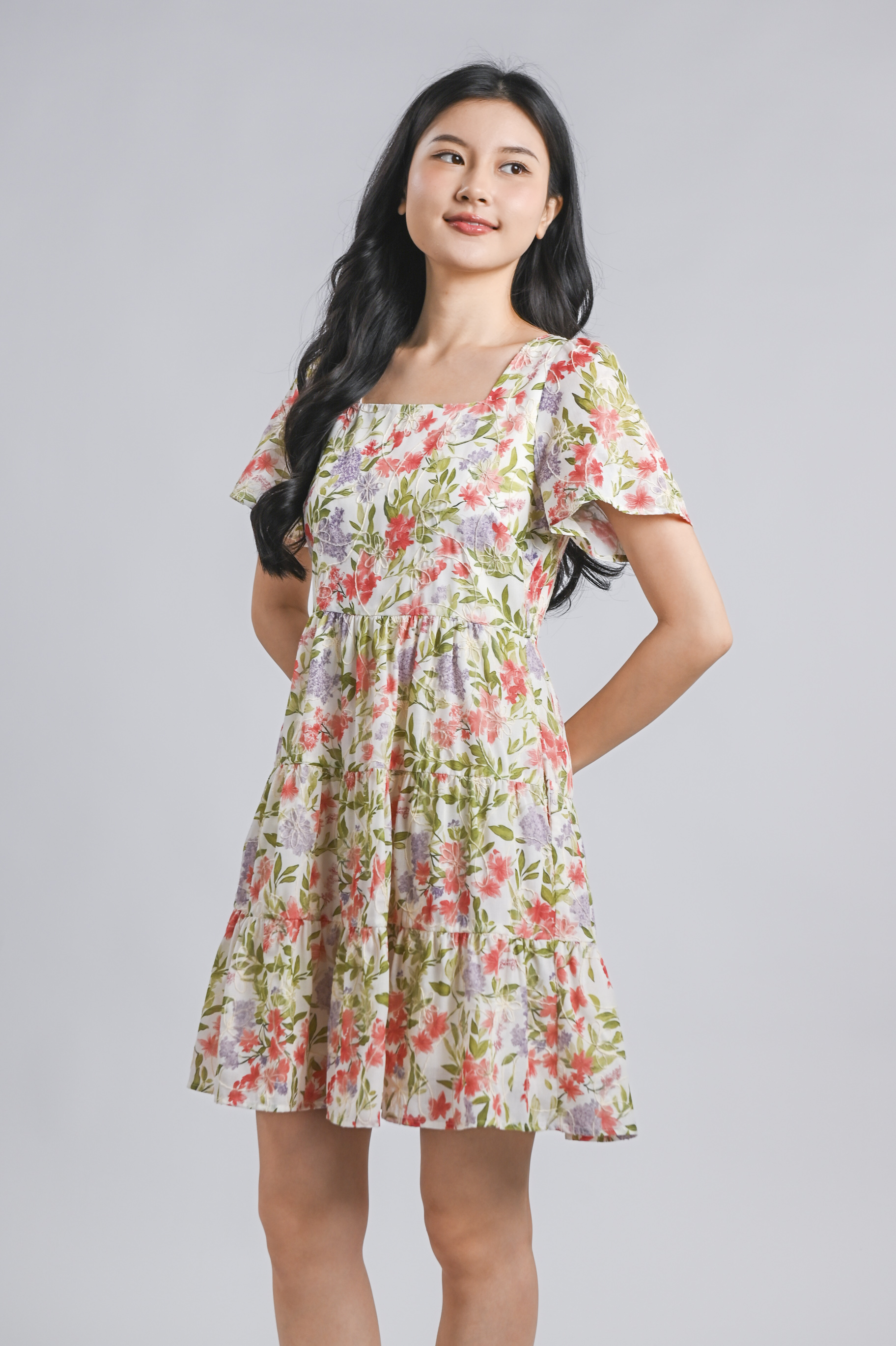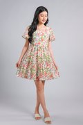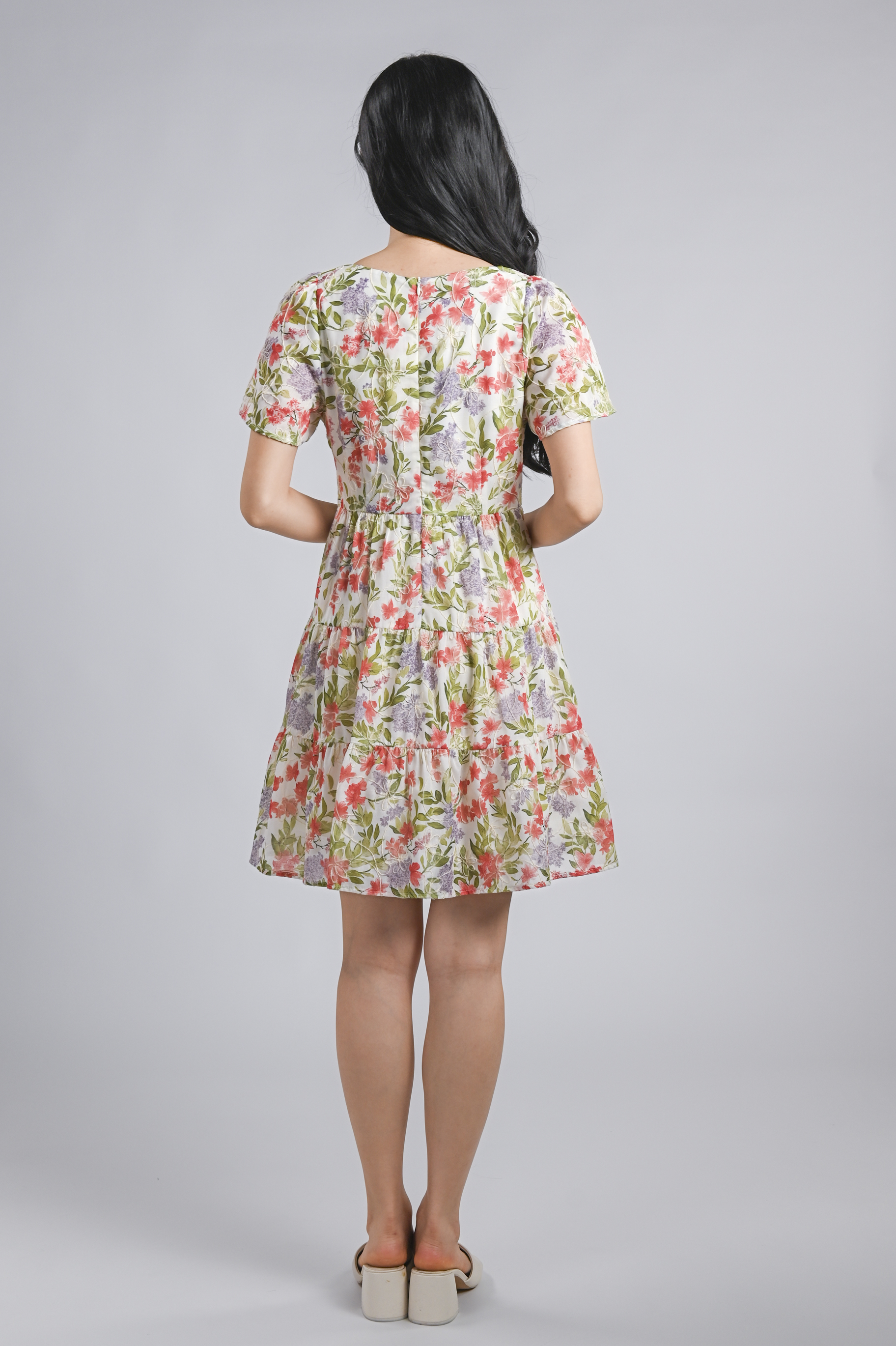 KERU RED FLORAL SQUARE-NECK BABYDOLL DRESS