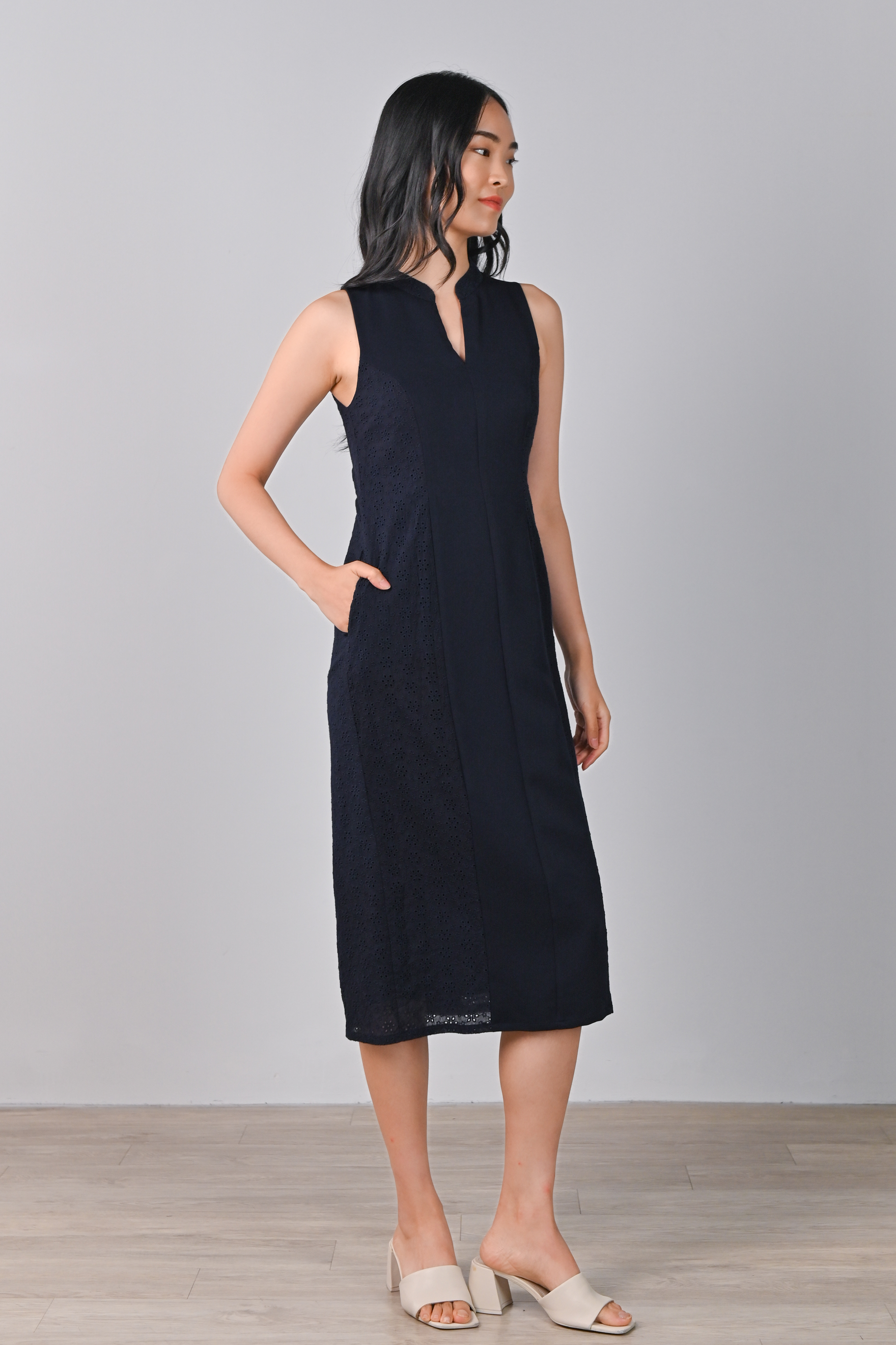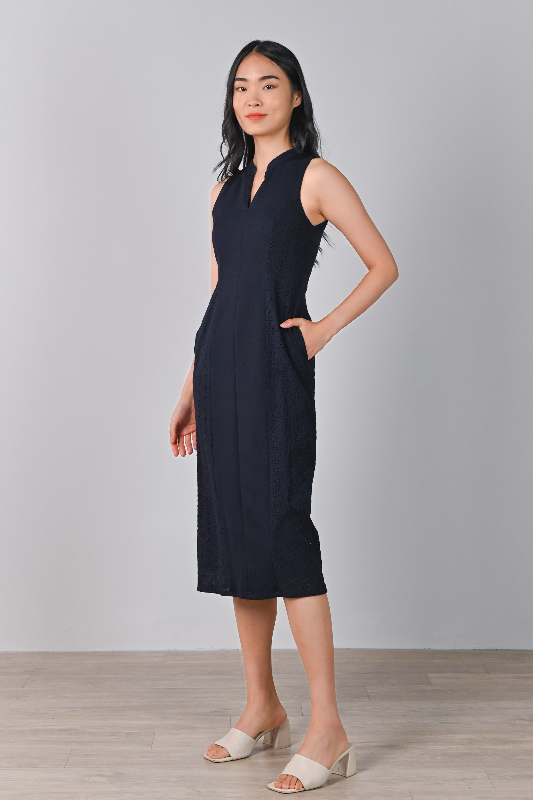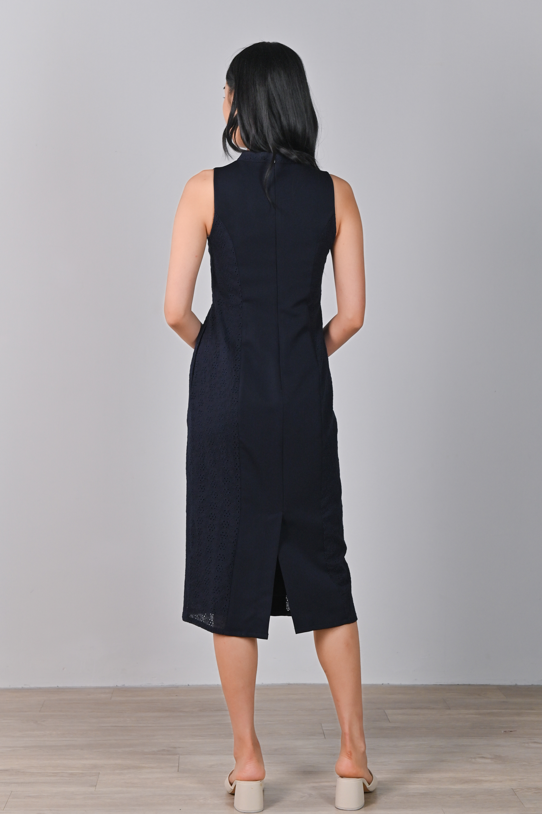 KEXIN EYELET-INSERT PENCIL CHEONGSAM IN NAVY