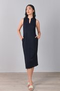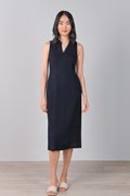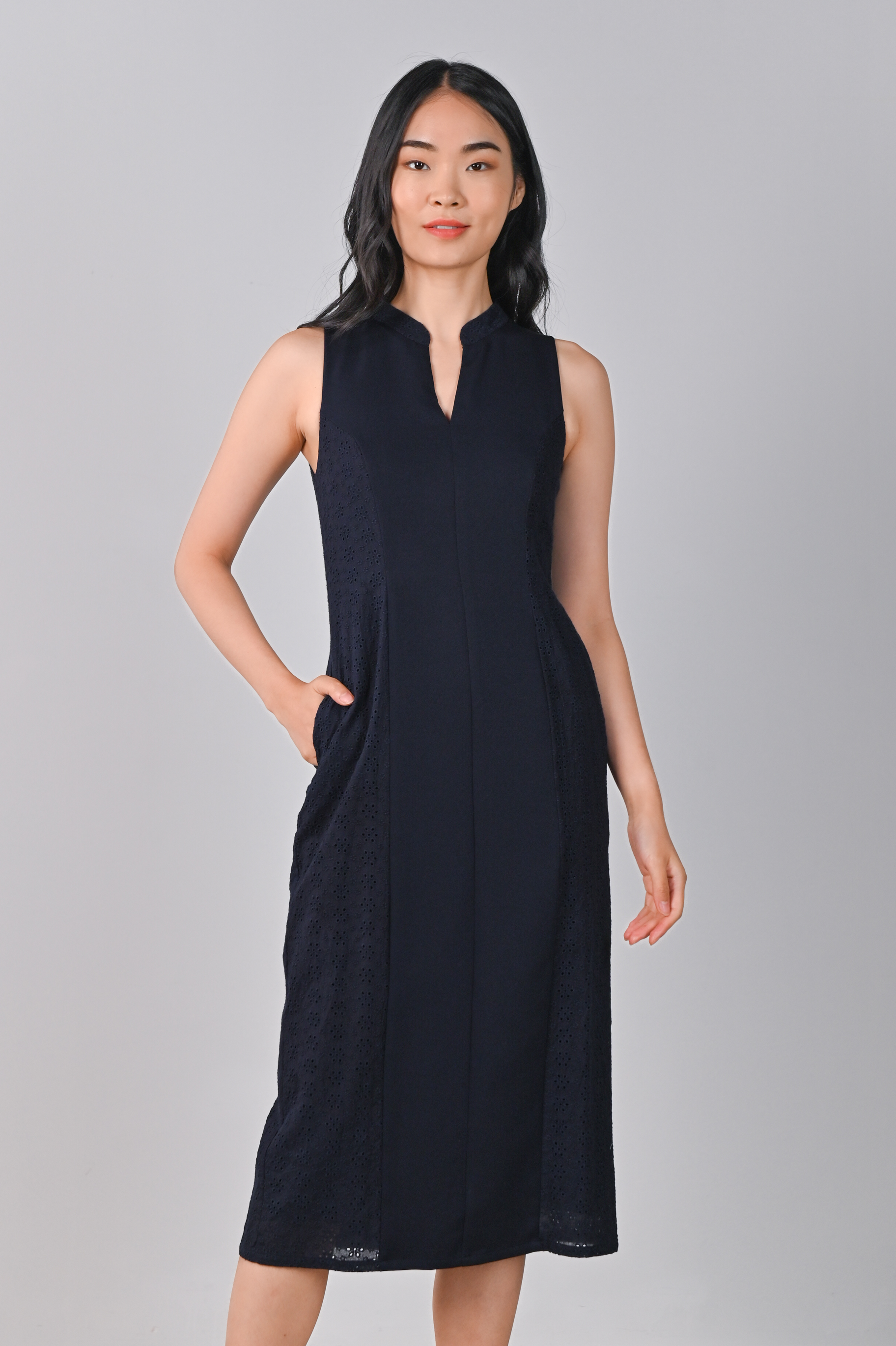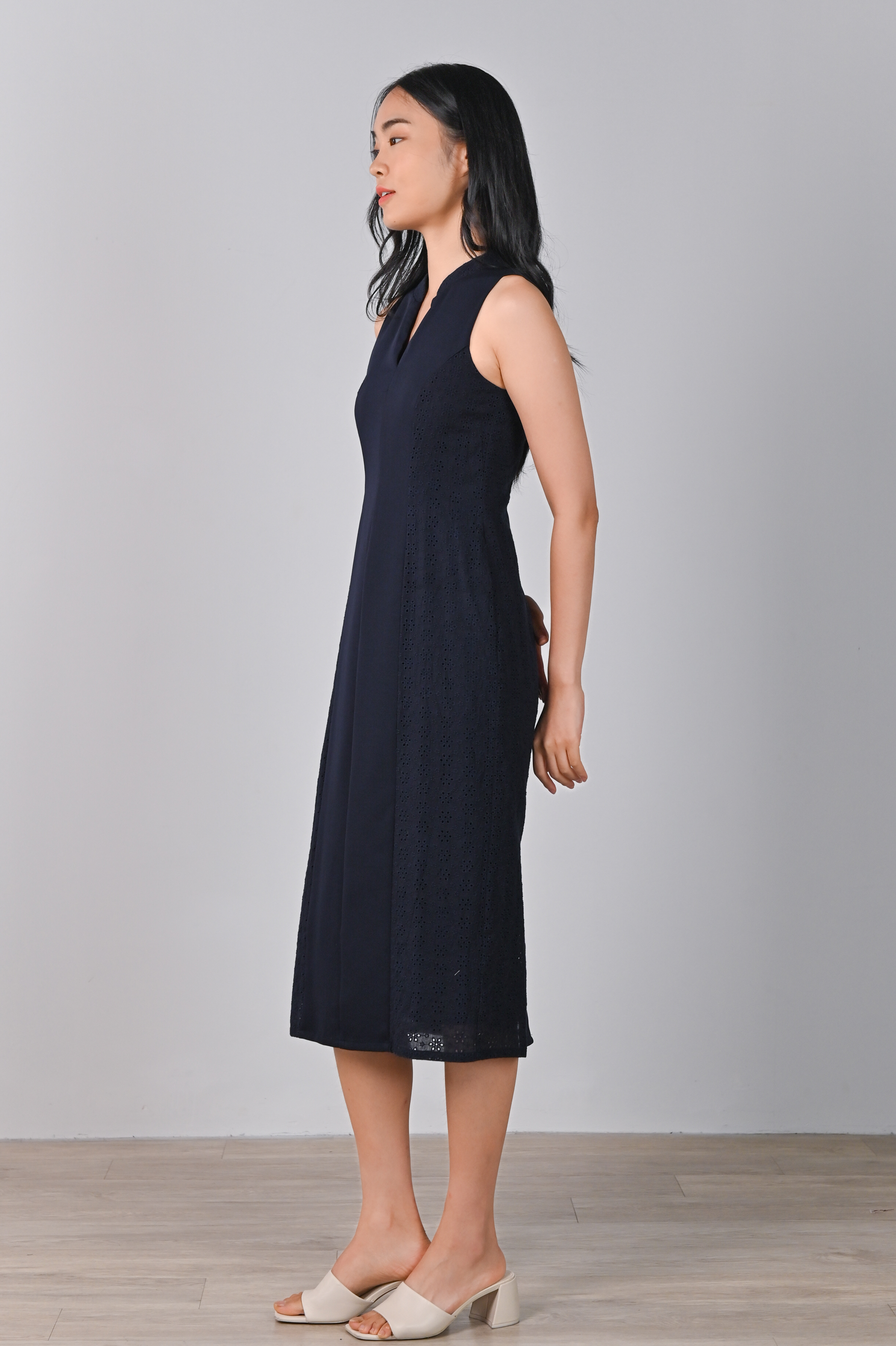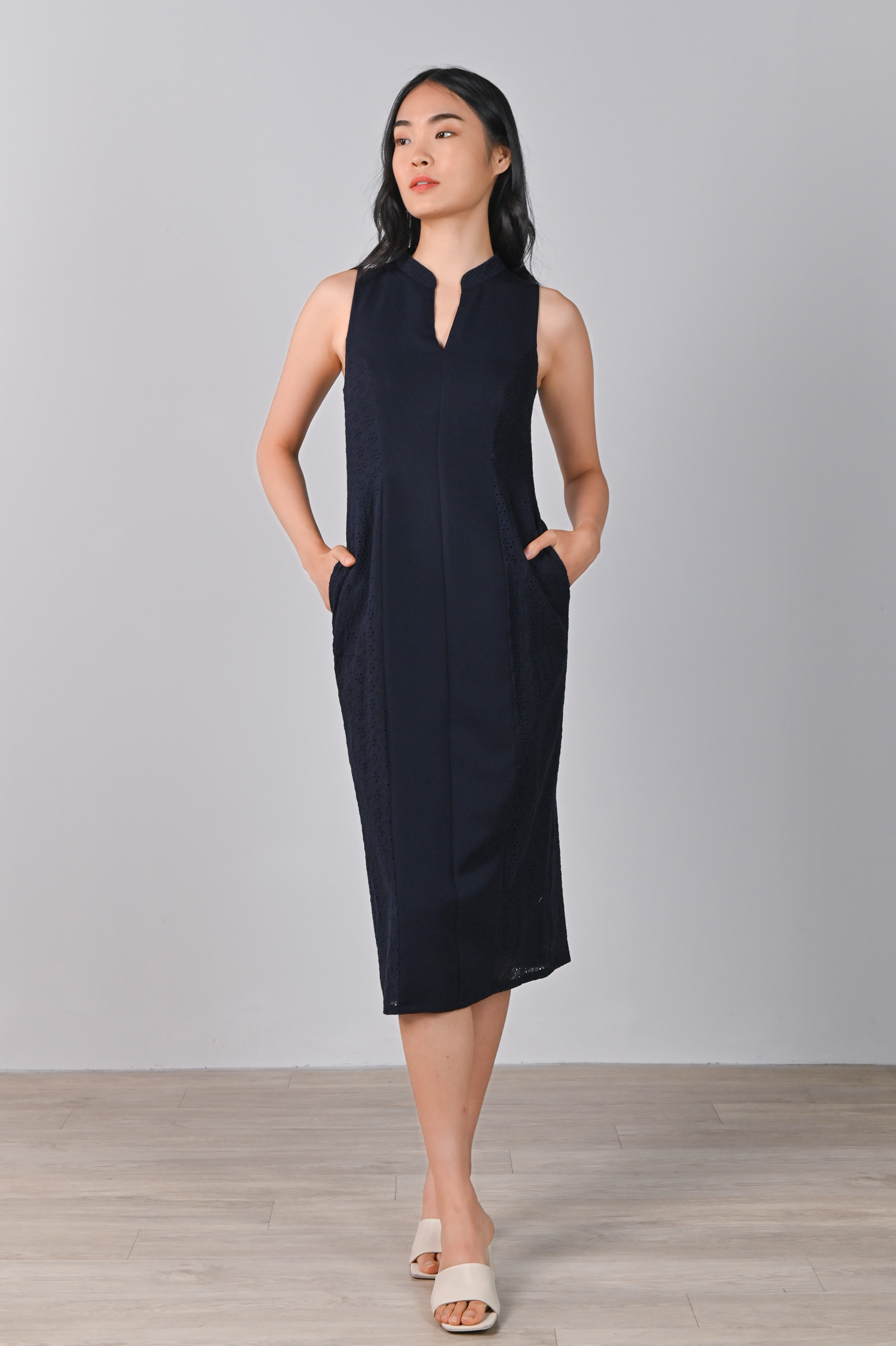 KEXIN EYELET-INSERT PENCIL CHEONGSAM IN NAVY