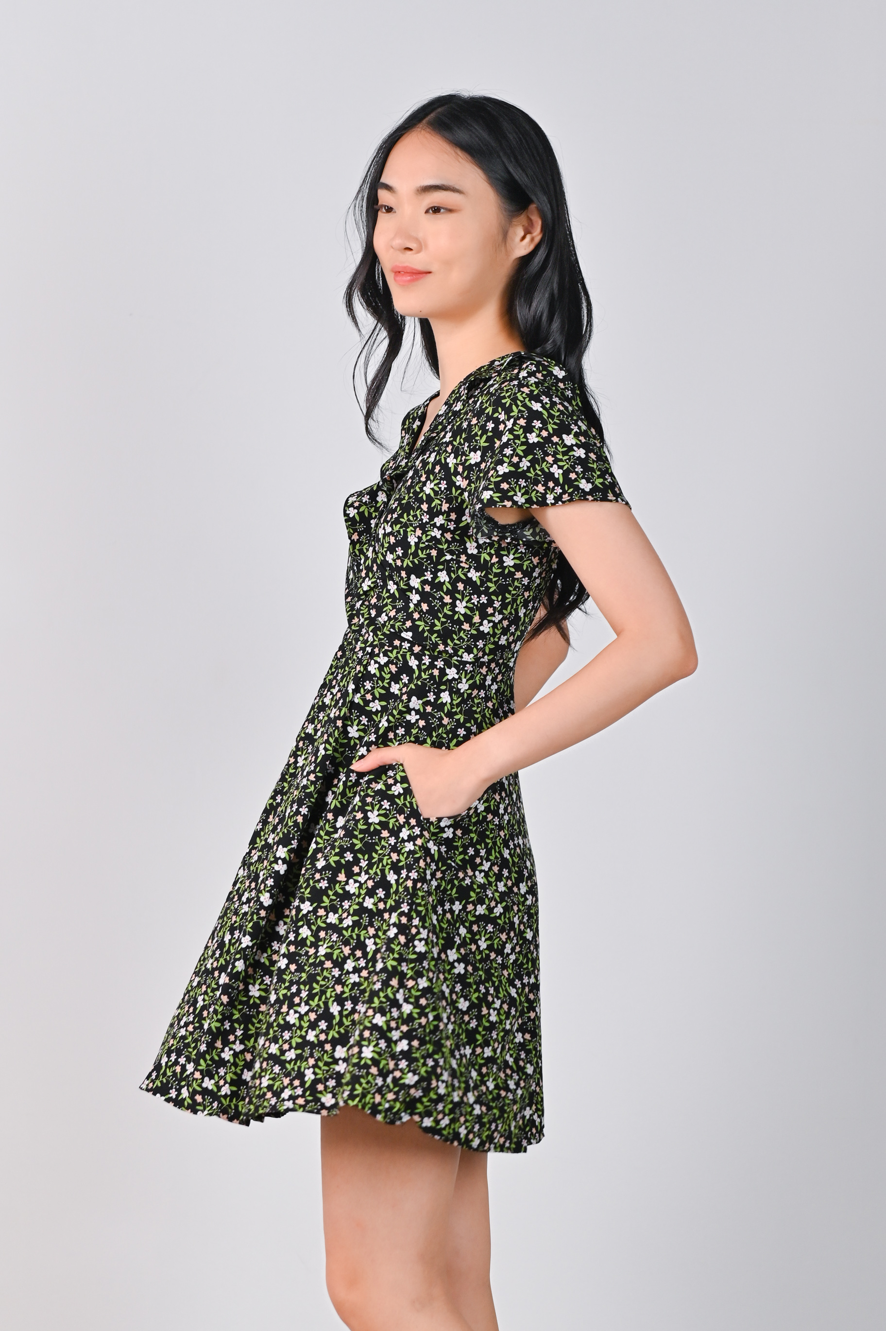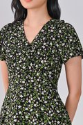 KILAH BLACK FLORAL RUFFLE DRESS