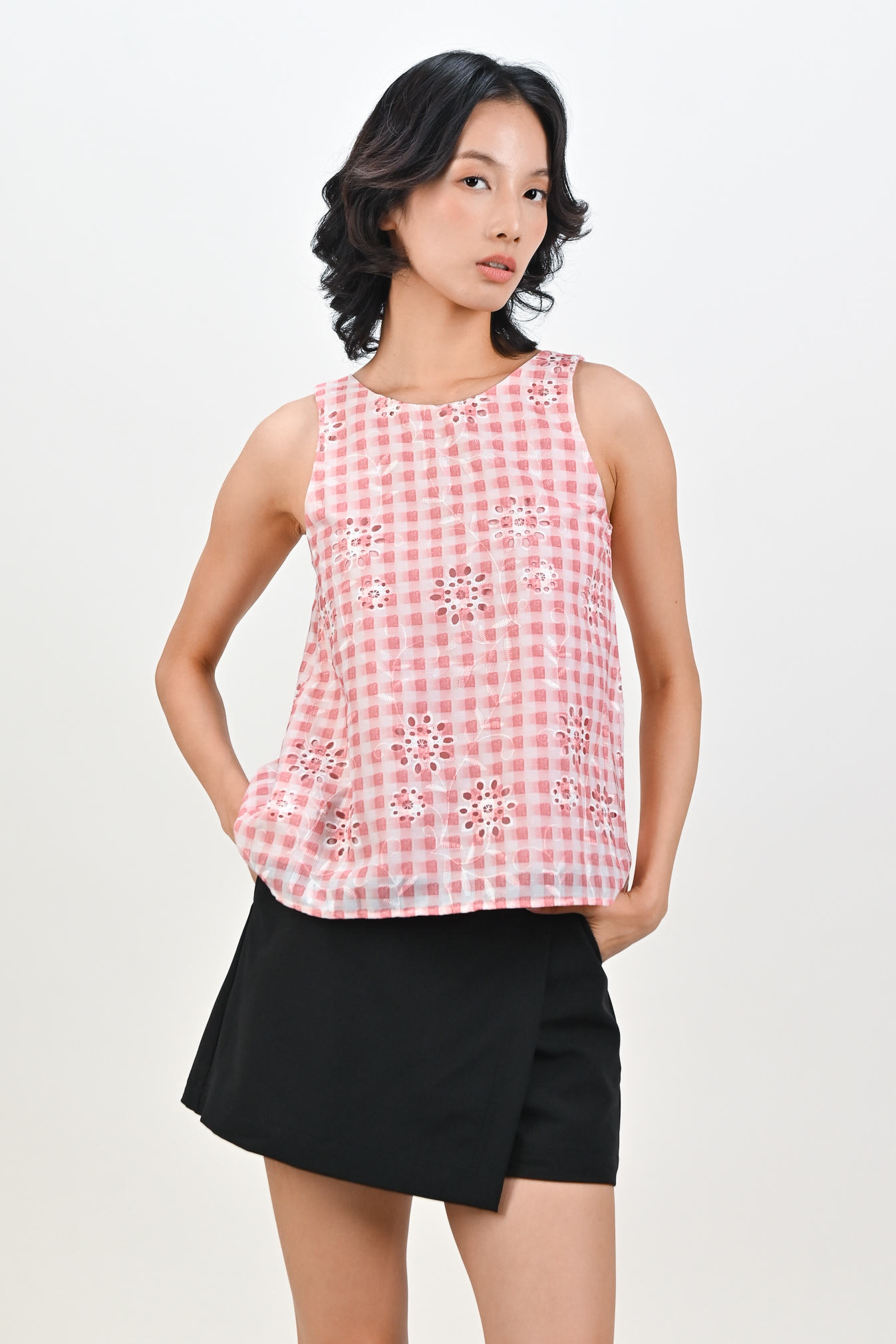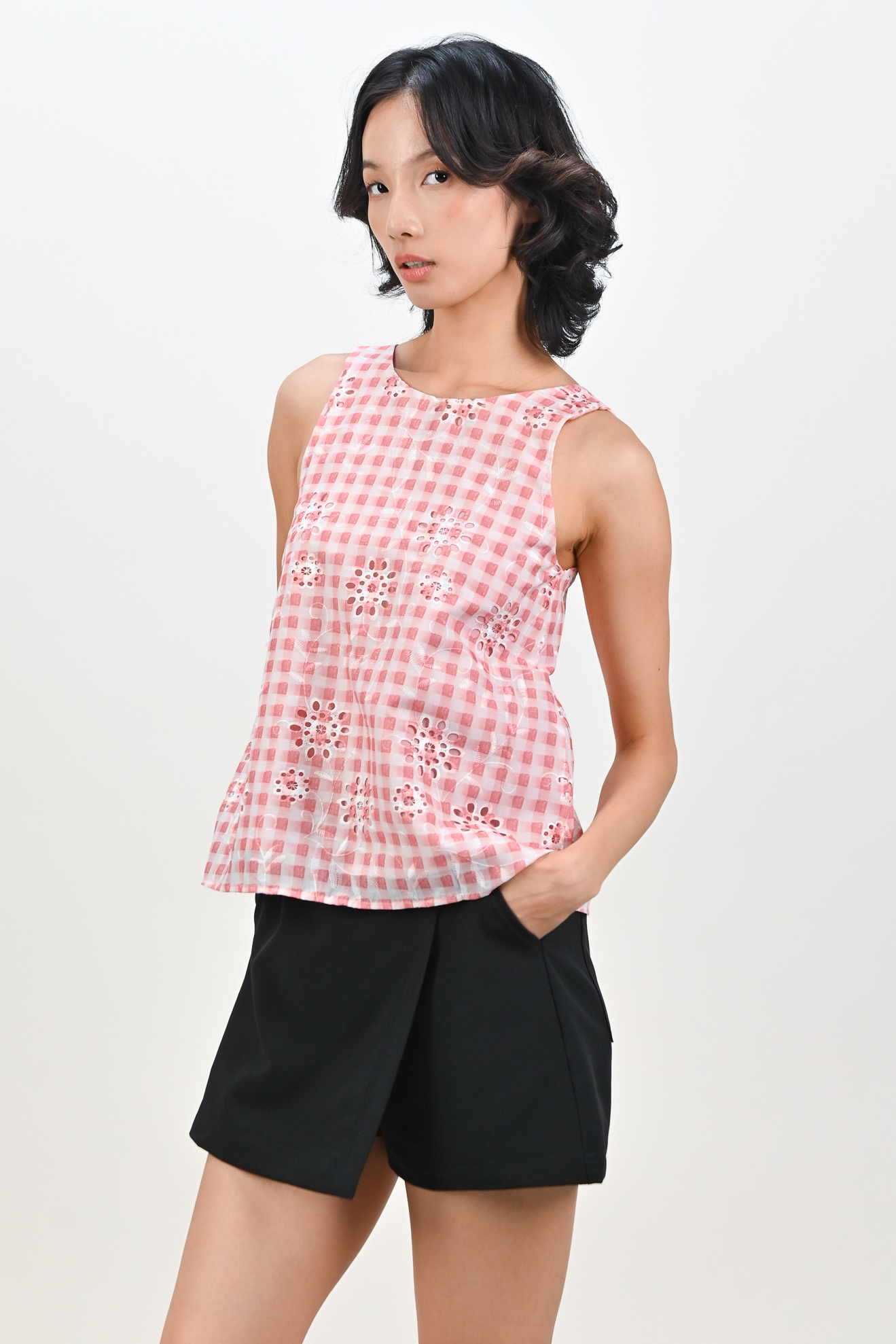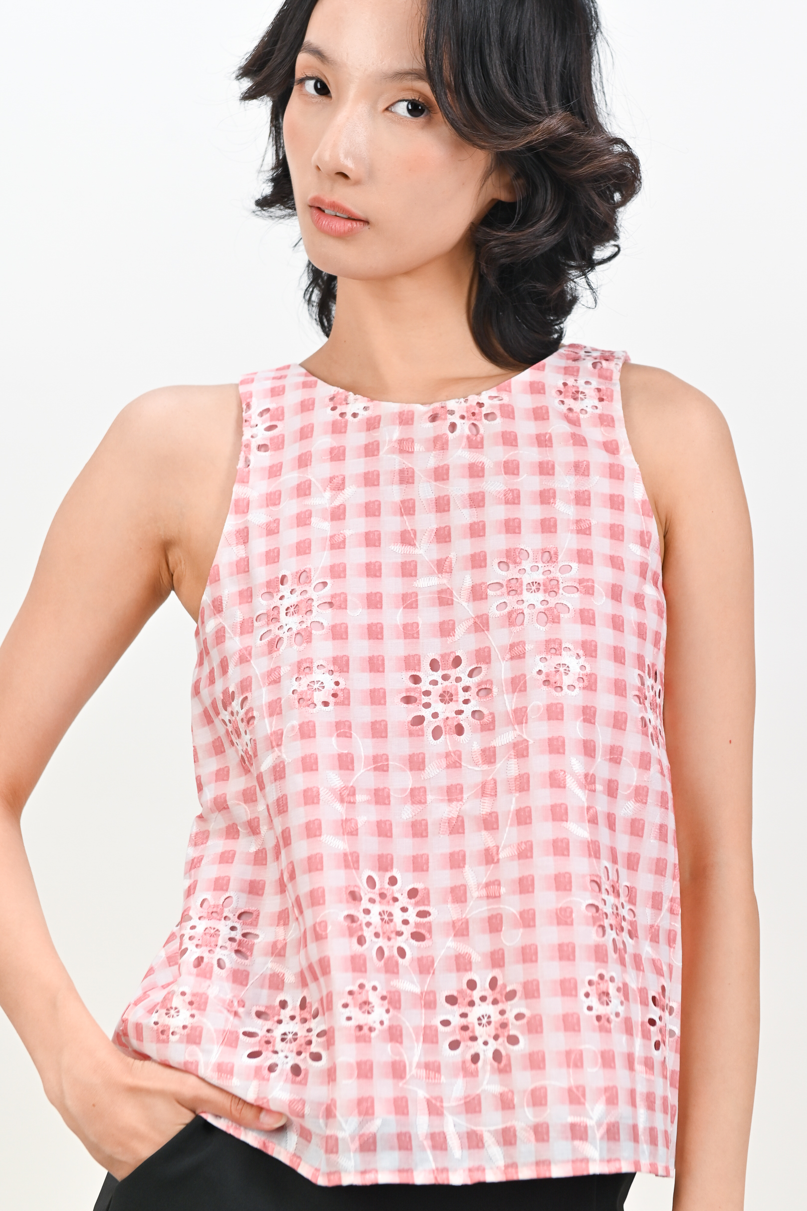 KIRALII GINGHAM EYELET TWO-WAY TOP IN PINK