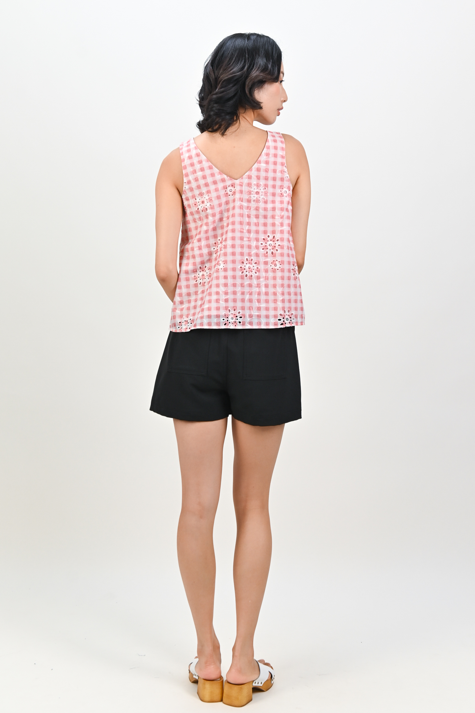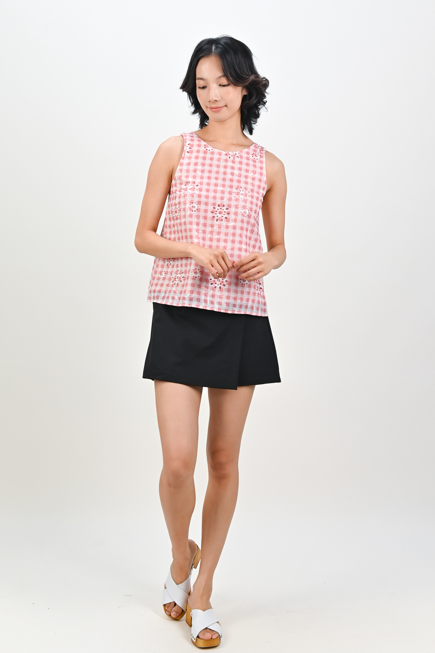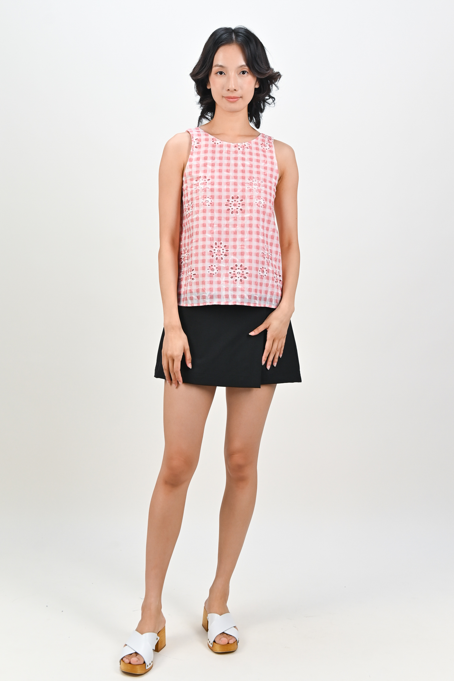 KIRALII GINGHAM EYELET TWO-WAY TOP IN PINK