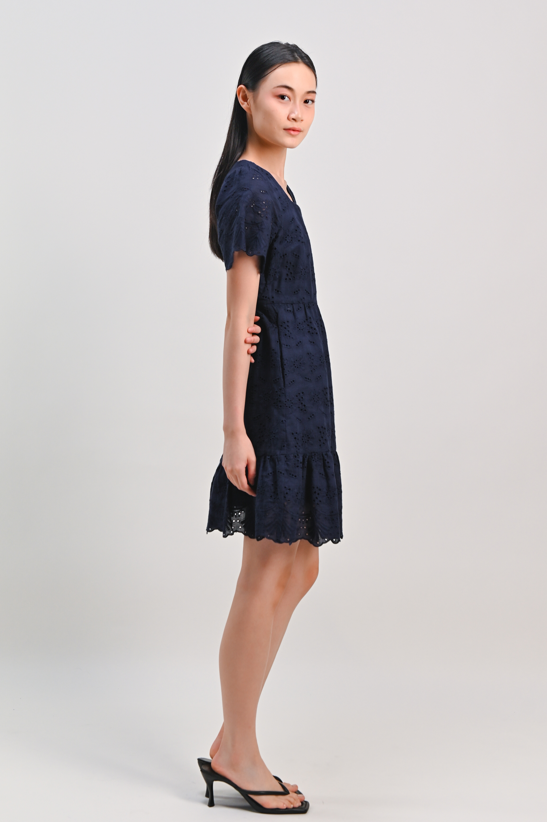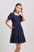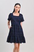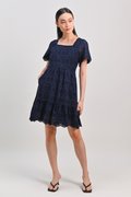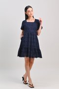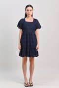 KISMET EYELET SLEEVED DRESS IN NAVY