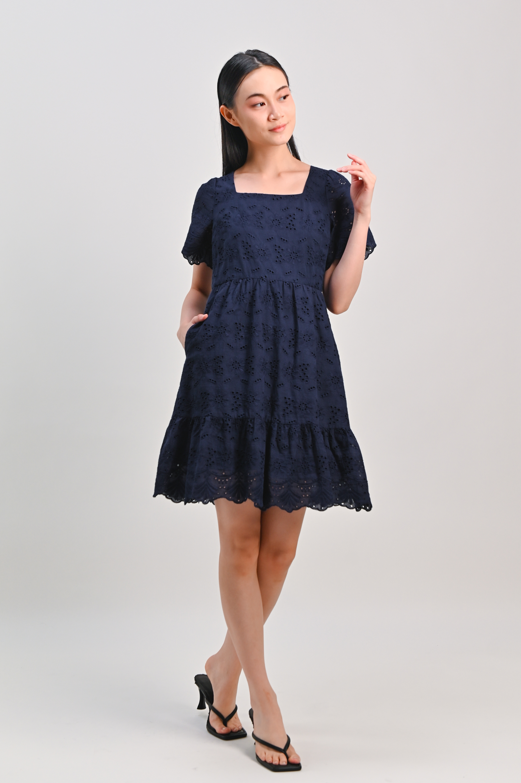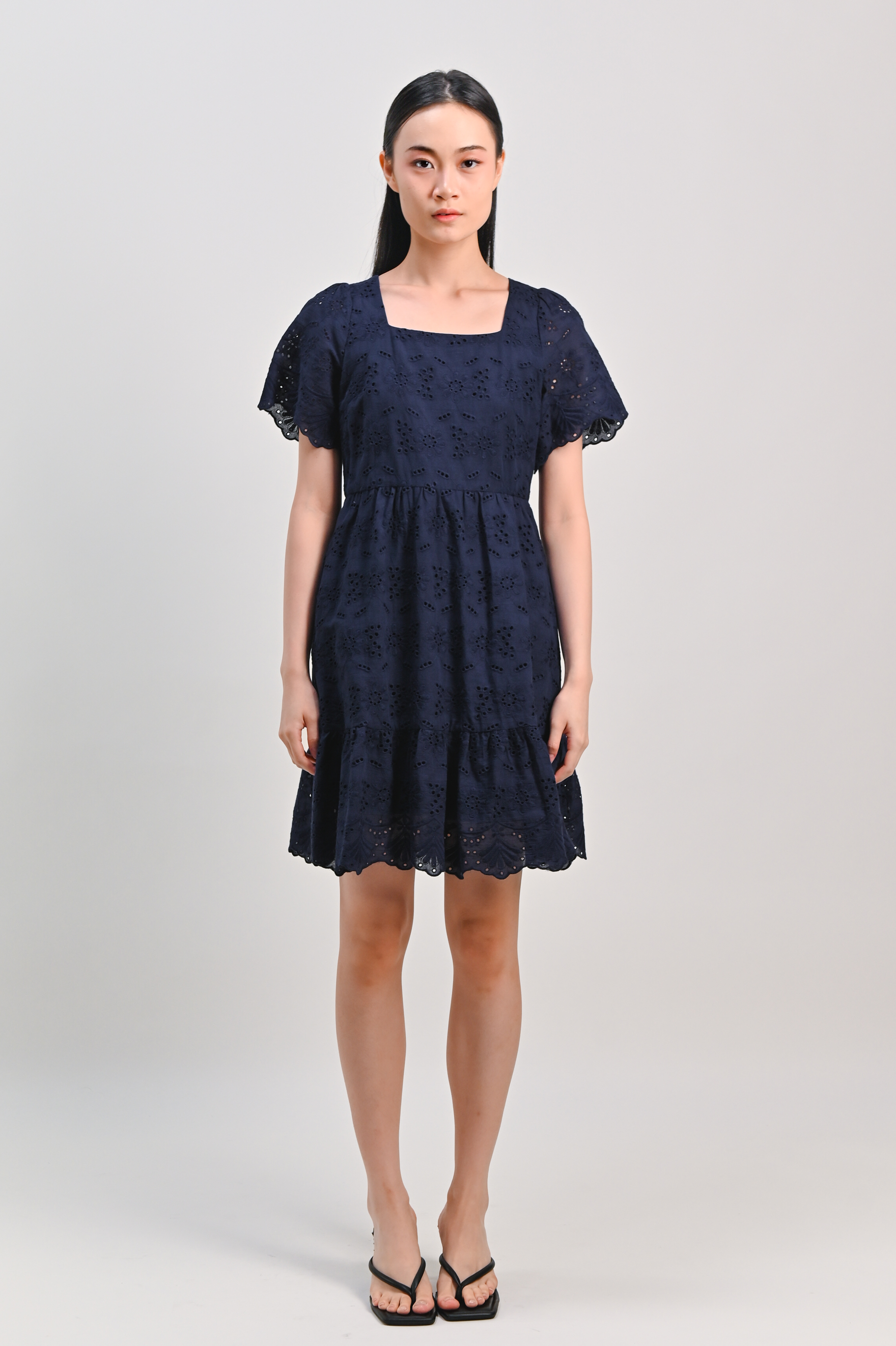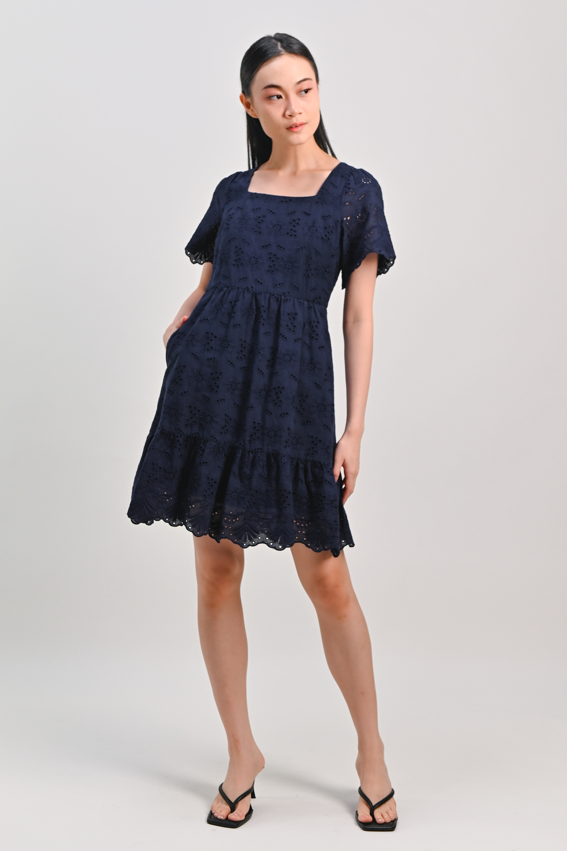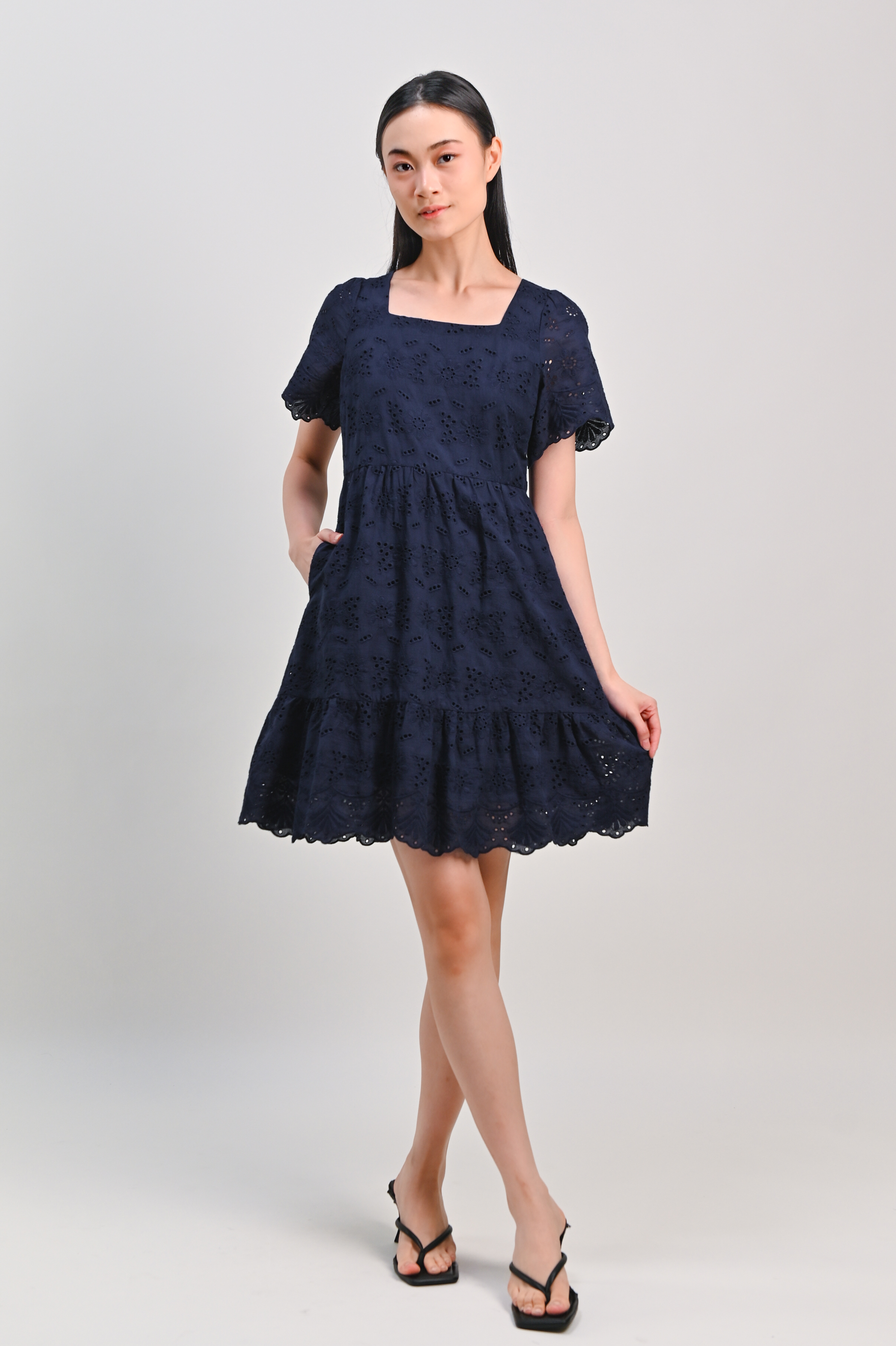 Actual stocks may varyA flattering navy pick for your wardrobe rotation đź’™ We love the eyelet scallop hem on the sleeves and hem of our Kismet Dress, and we think you will too!