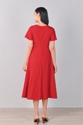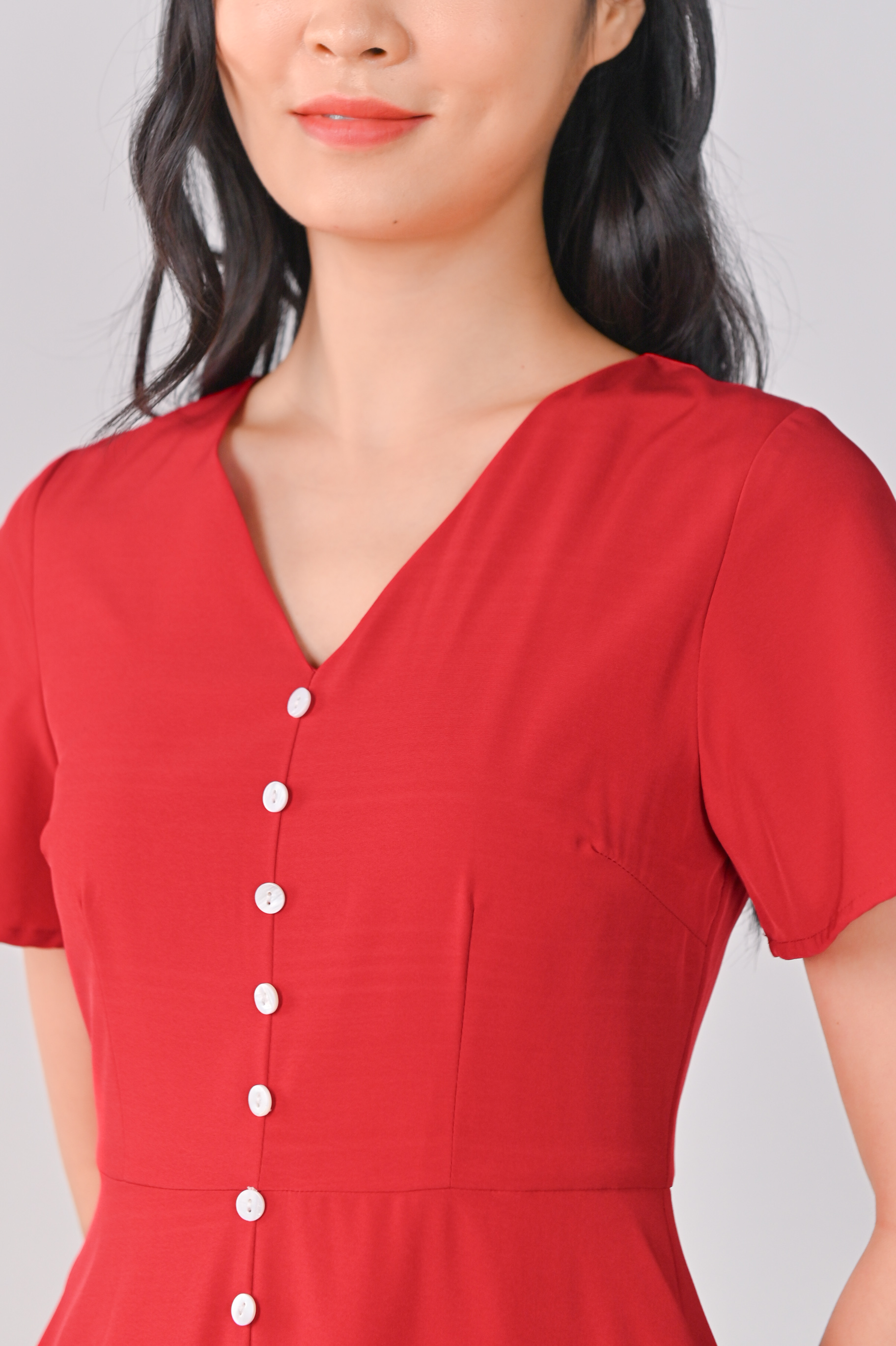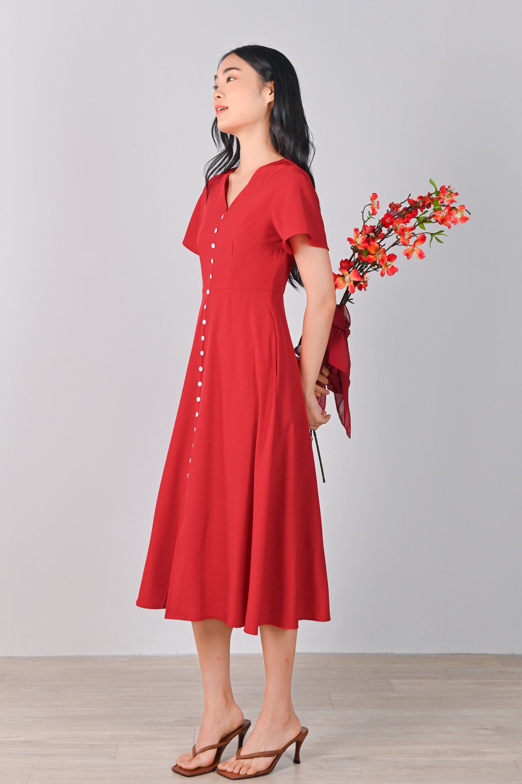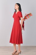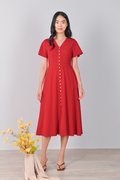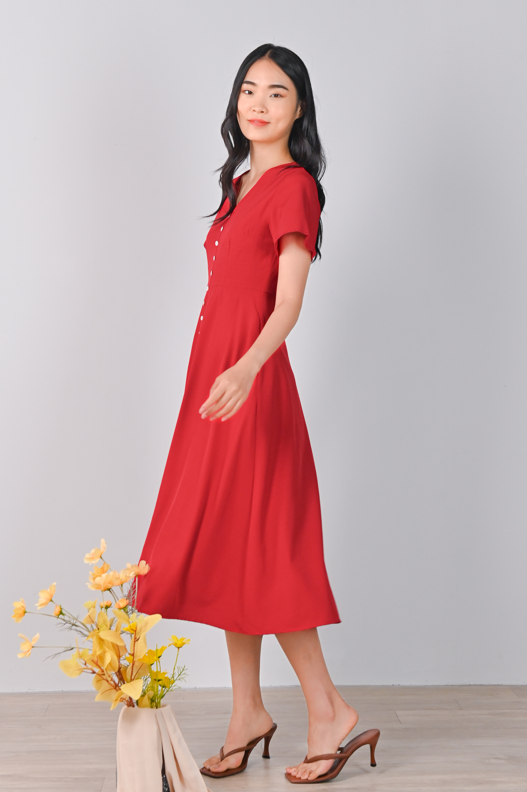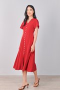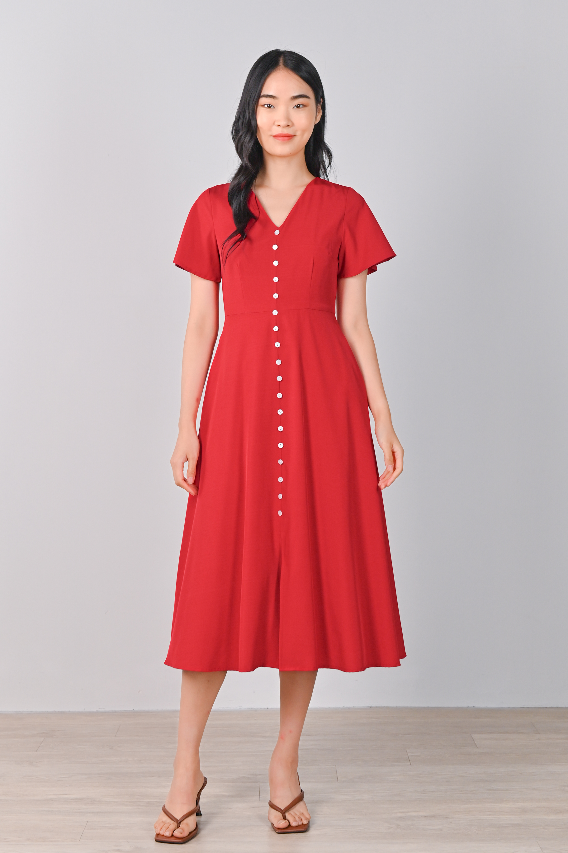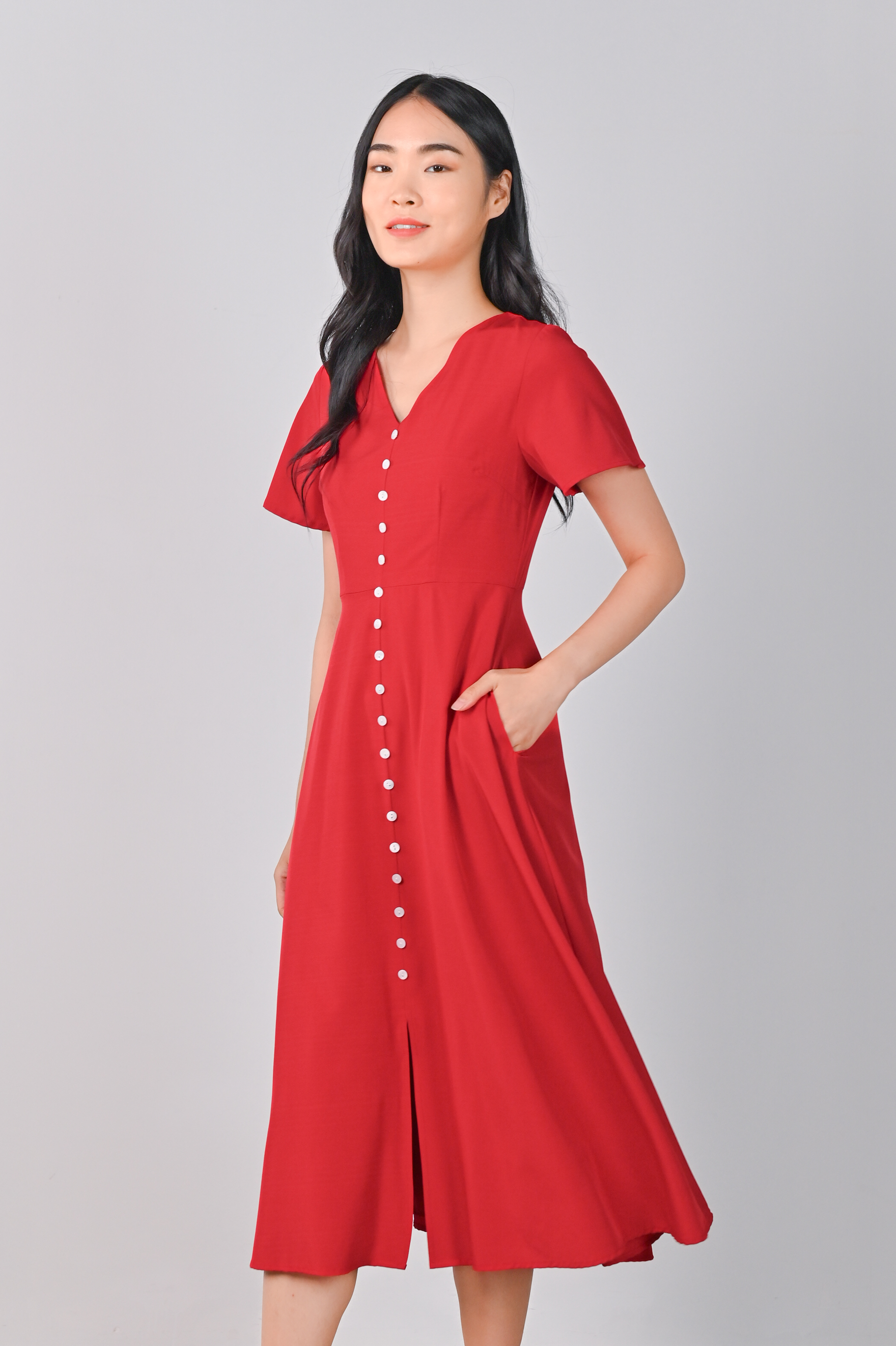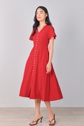 LEXLEY SLEEVED BUTTON DRESS IN RED