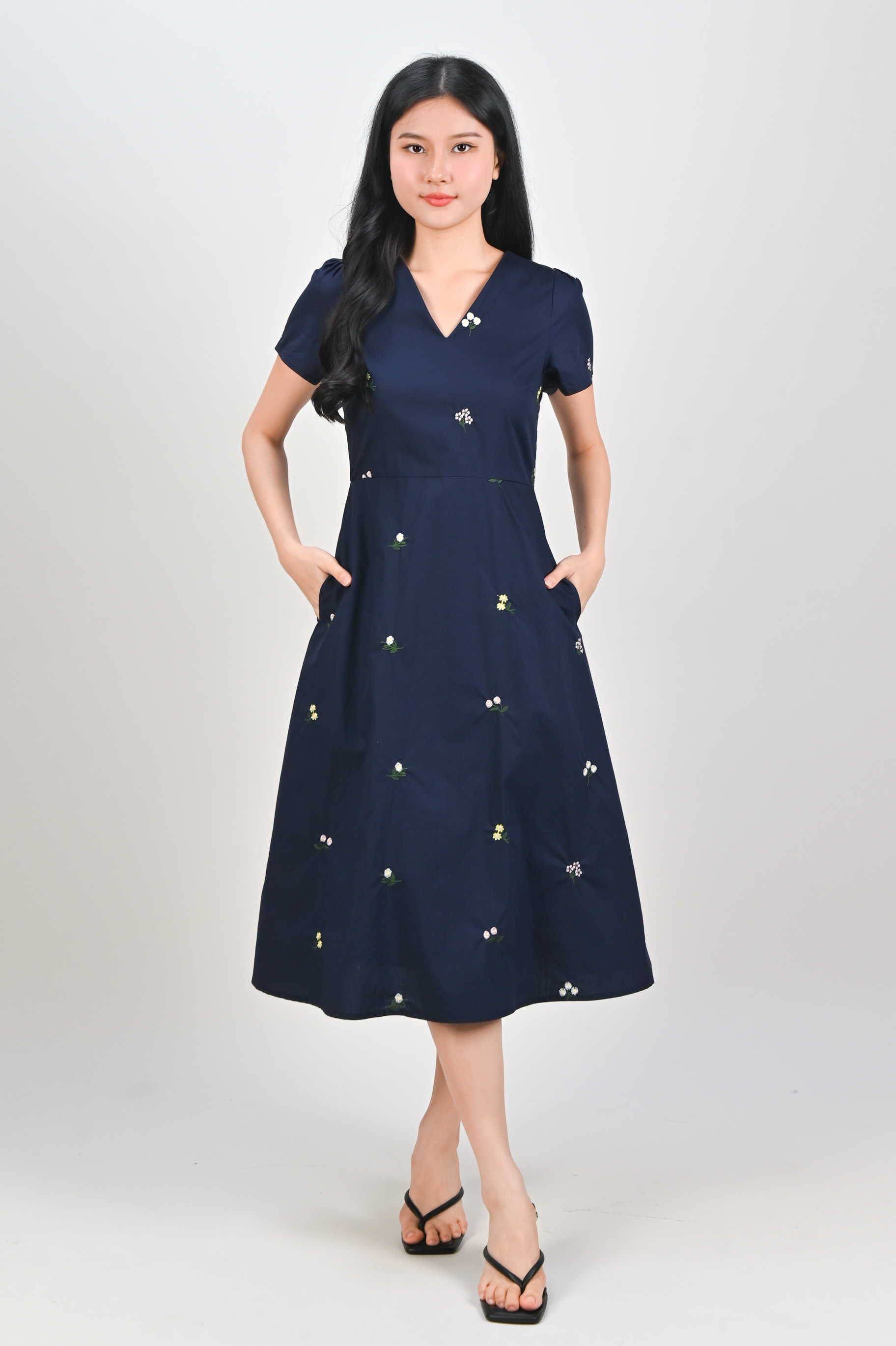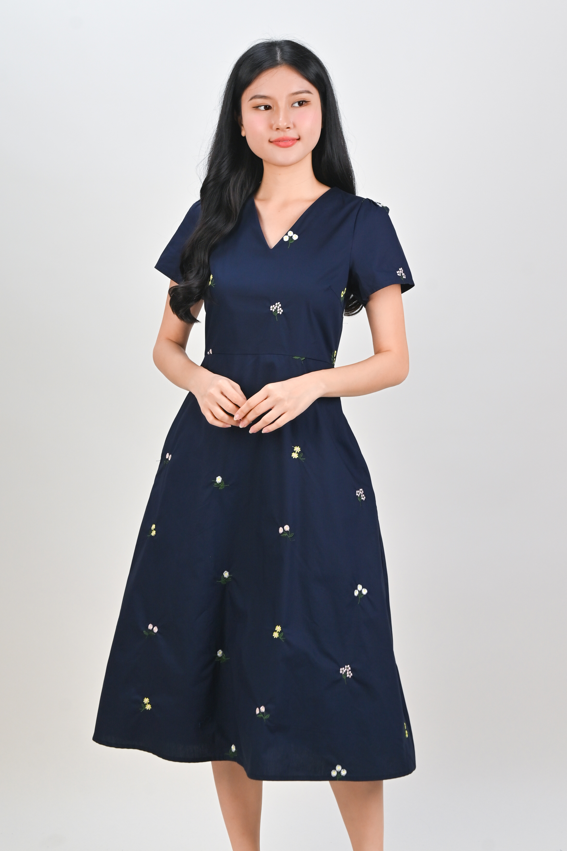 Actual stocks may varyOur Linara Navy Embroidered Dress is the definition of grace! Featuring little embroidered flowers to make your style bloom! 💐