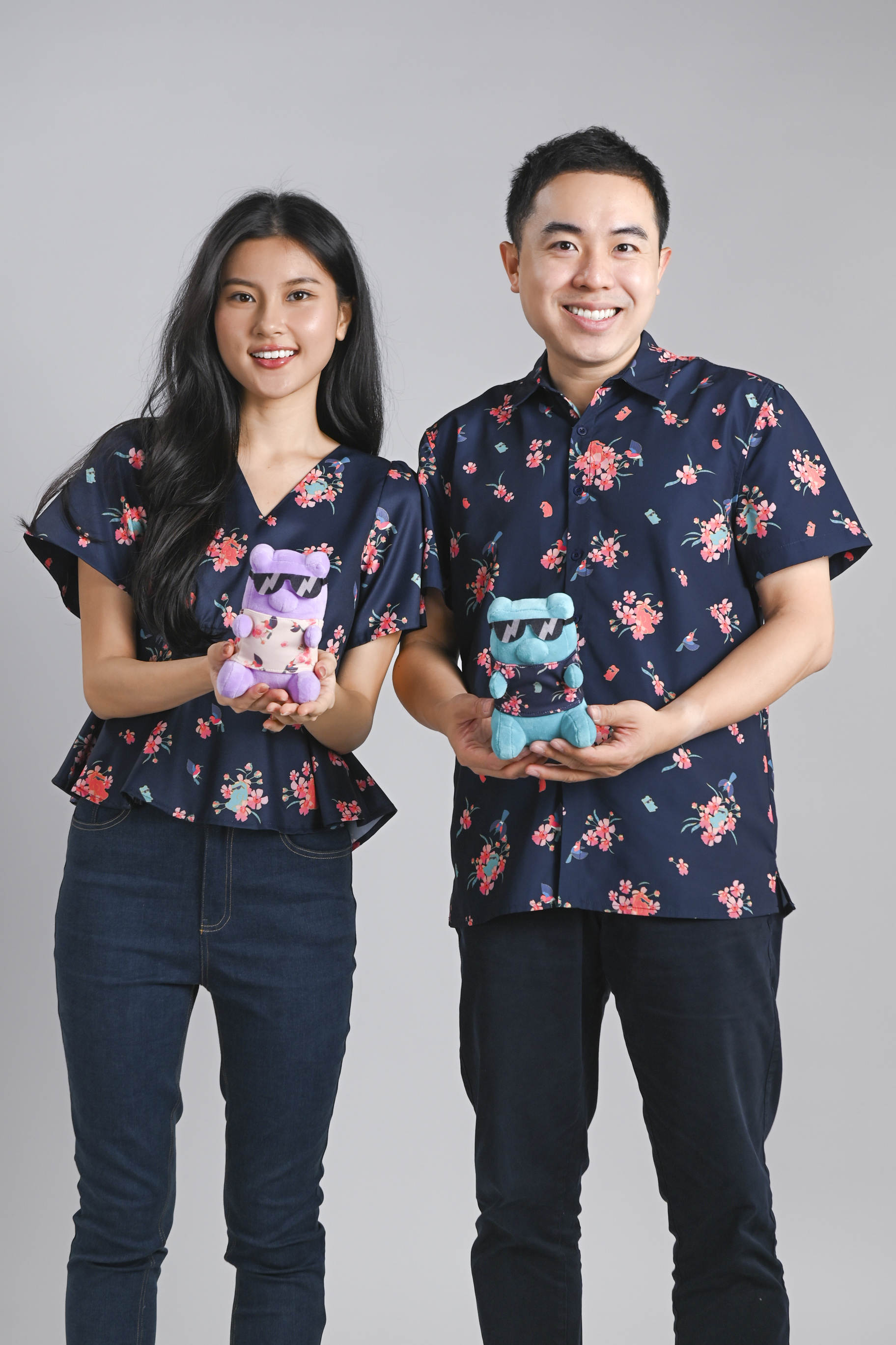 The Lioncolony x AWE collection brings together two distinct creative worlds: Lioncolony's signature surreal 3D universe led by the iconic GBear, and AWE's love for locally-rooted, print-forward fashion! Together, we fused Lioncolony's playful, candy-coloured artistry with our in-house floral heritage, nodding to nostalgic local touches with biscuit tins, childhood snacks and beautiful orchids, creating pieces that feel at once familiar and utterly fresh.