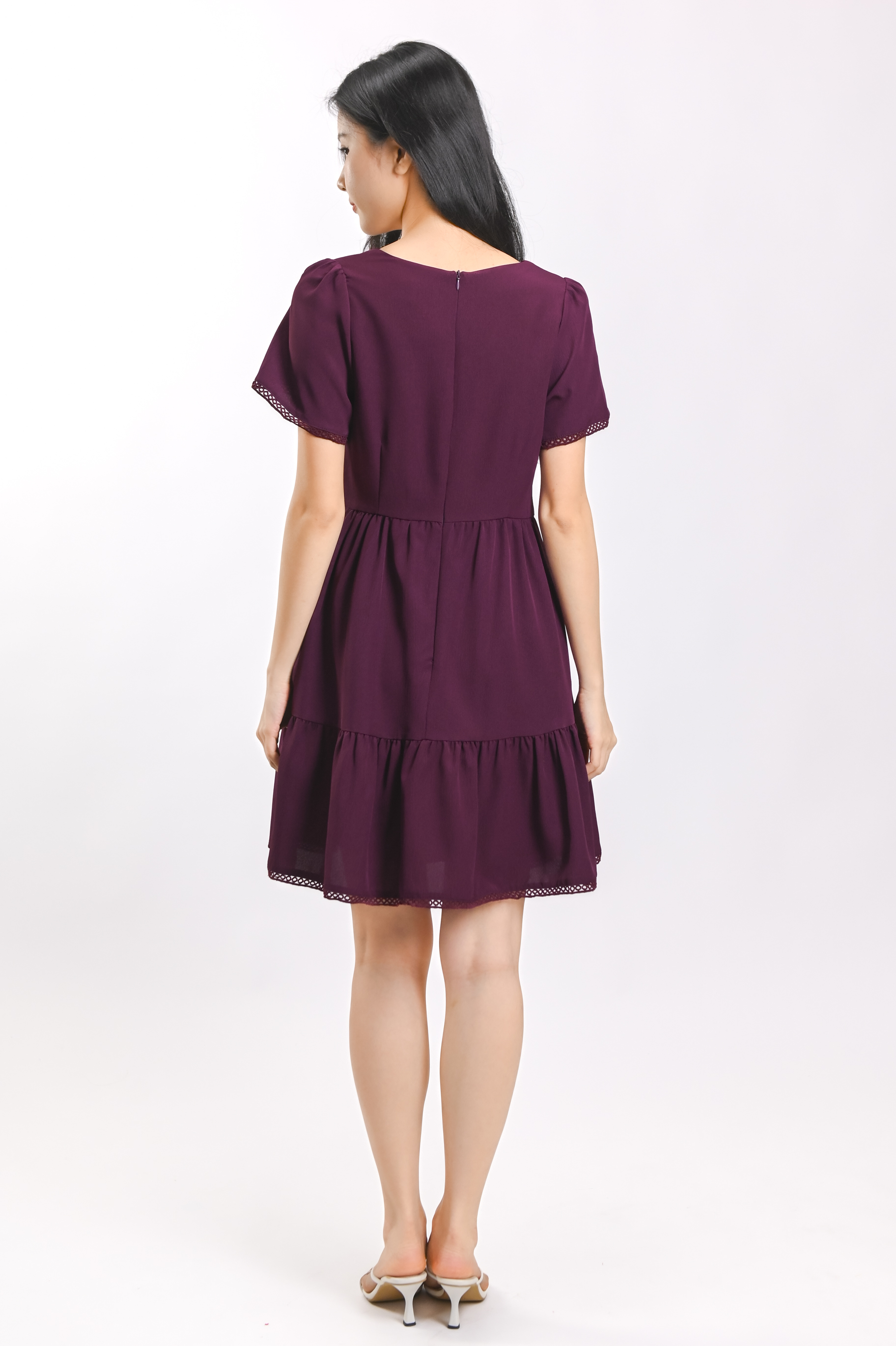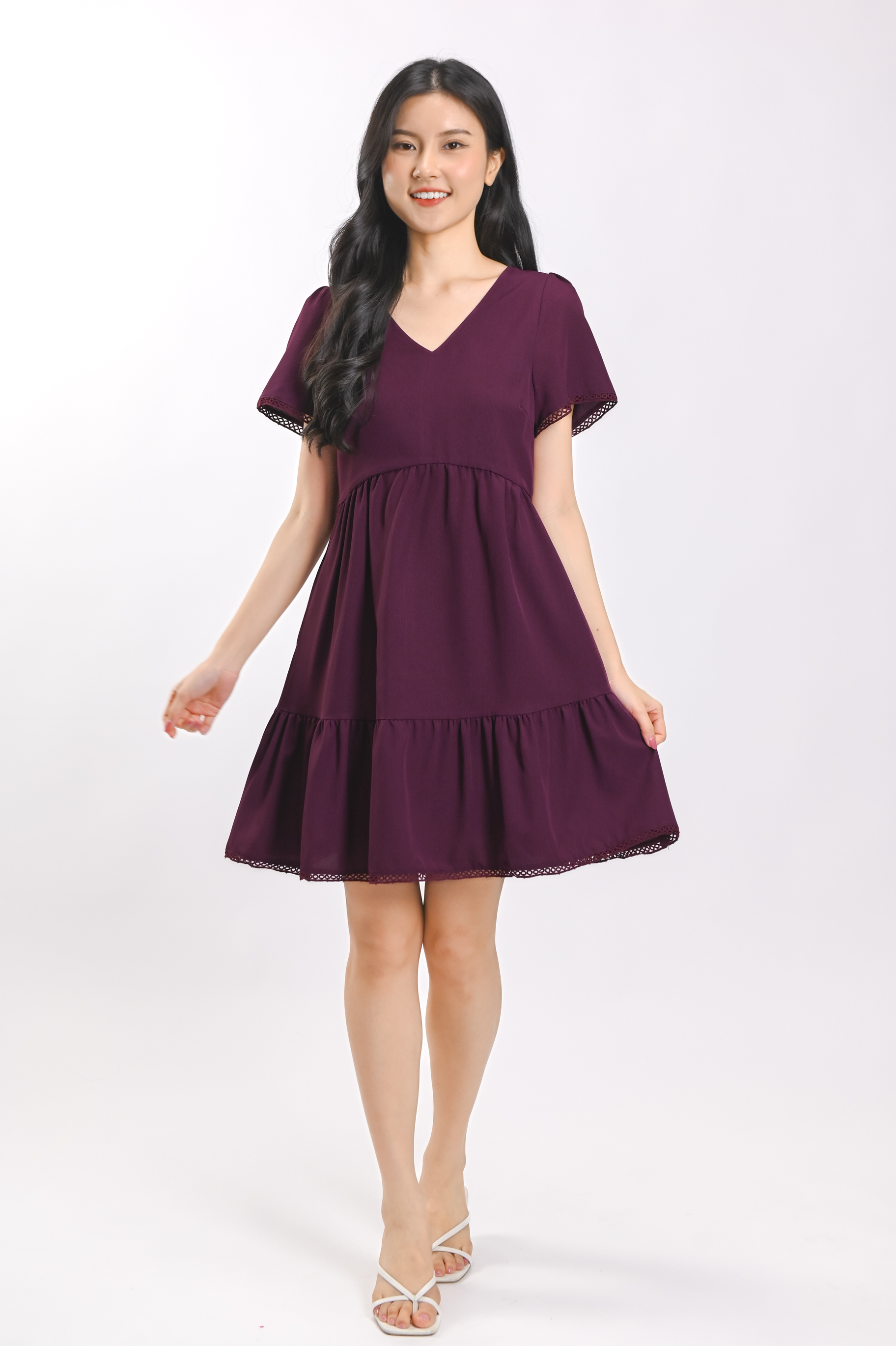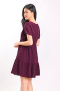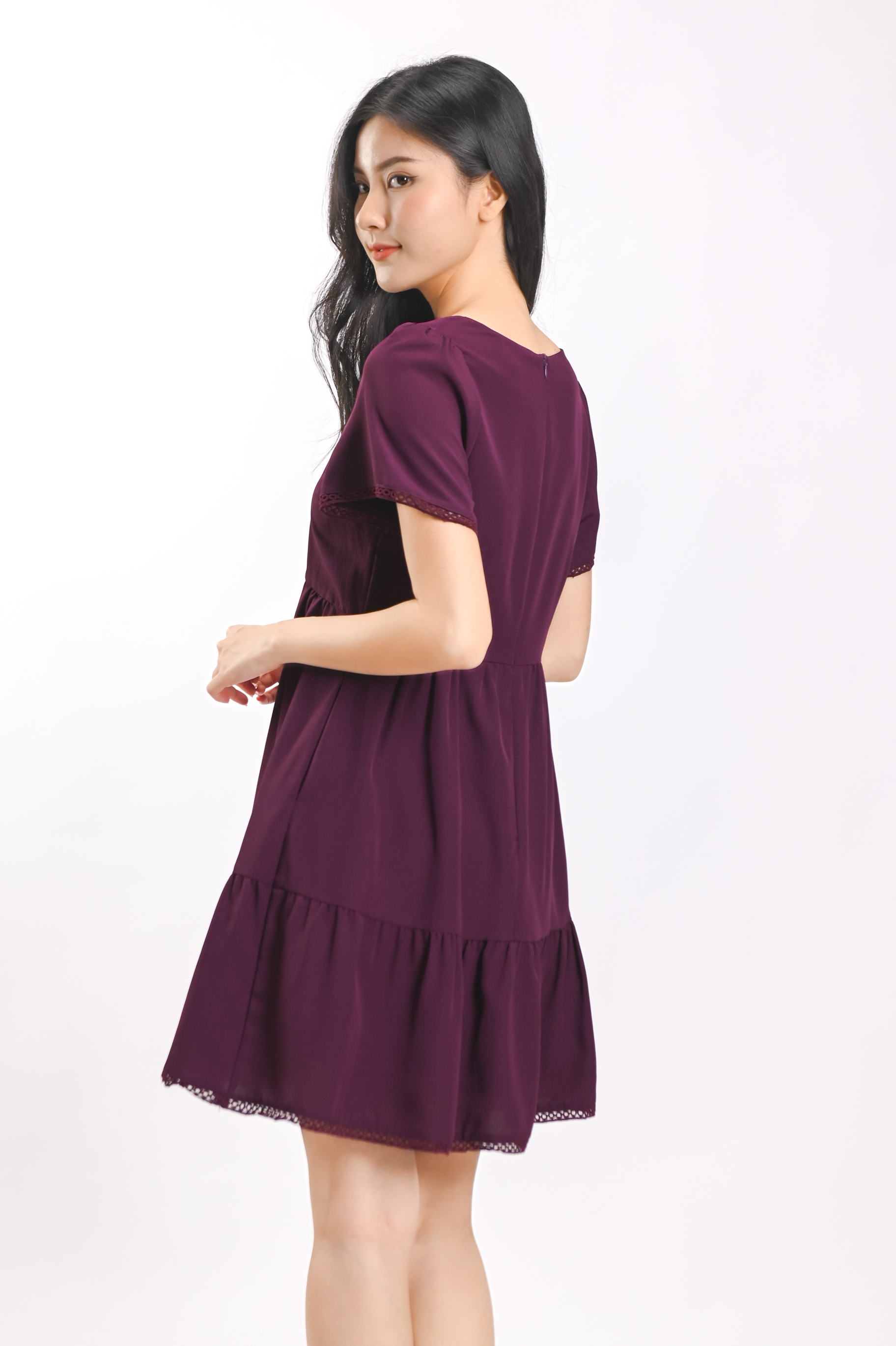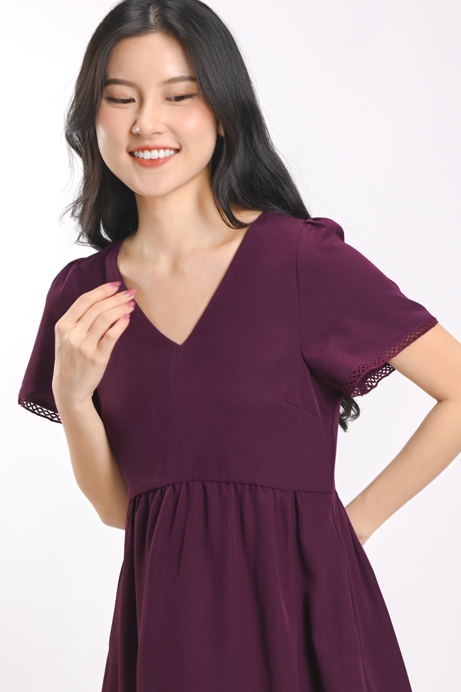 LIVIA LACE-TRIM SLEEVED DRESS IN MAROON