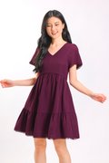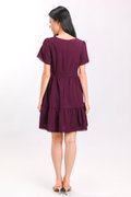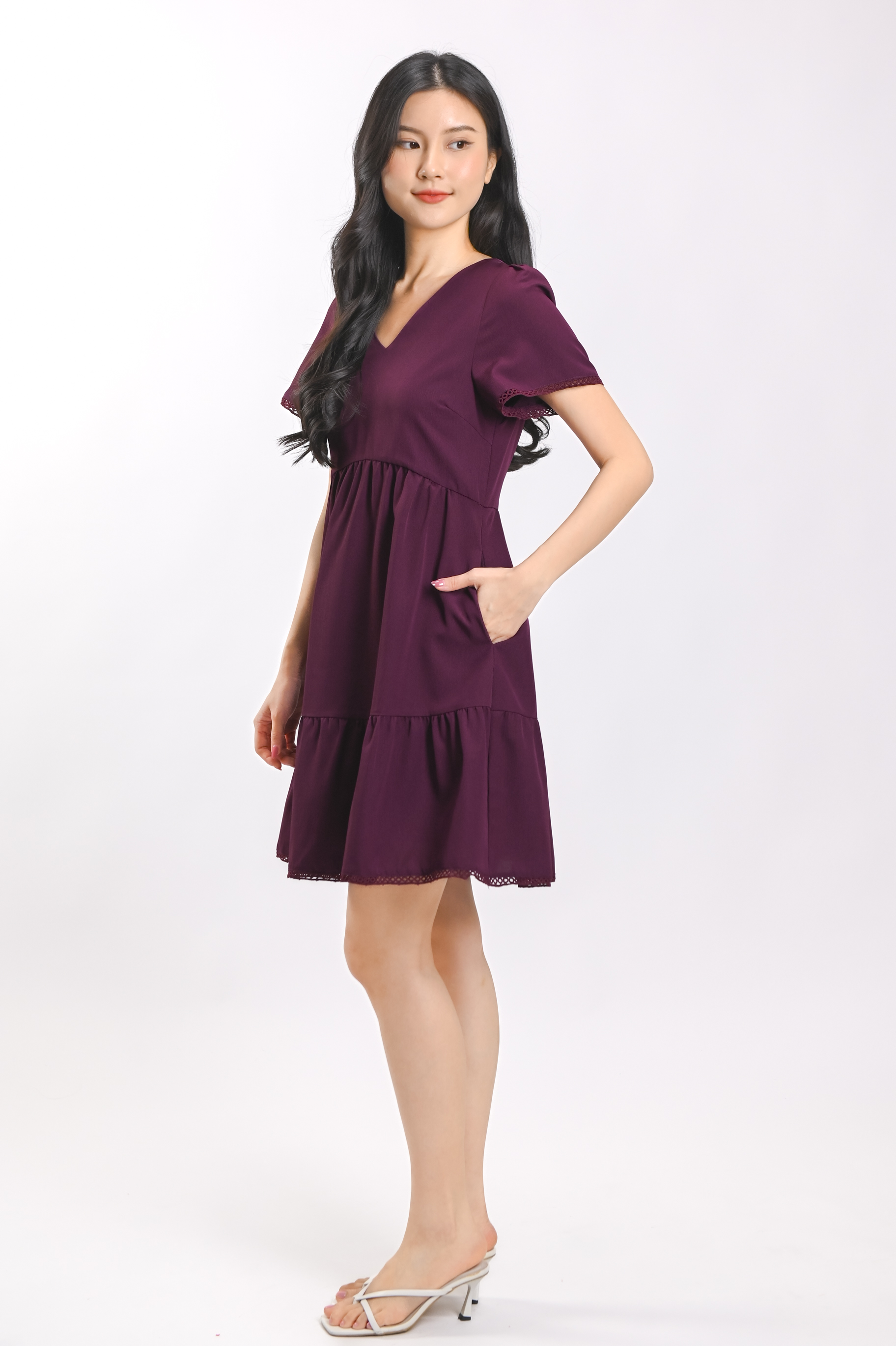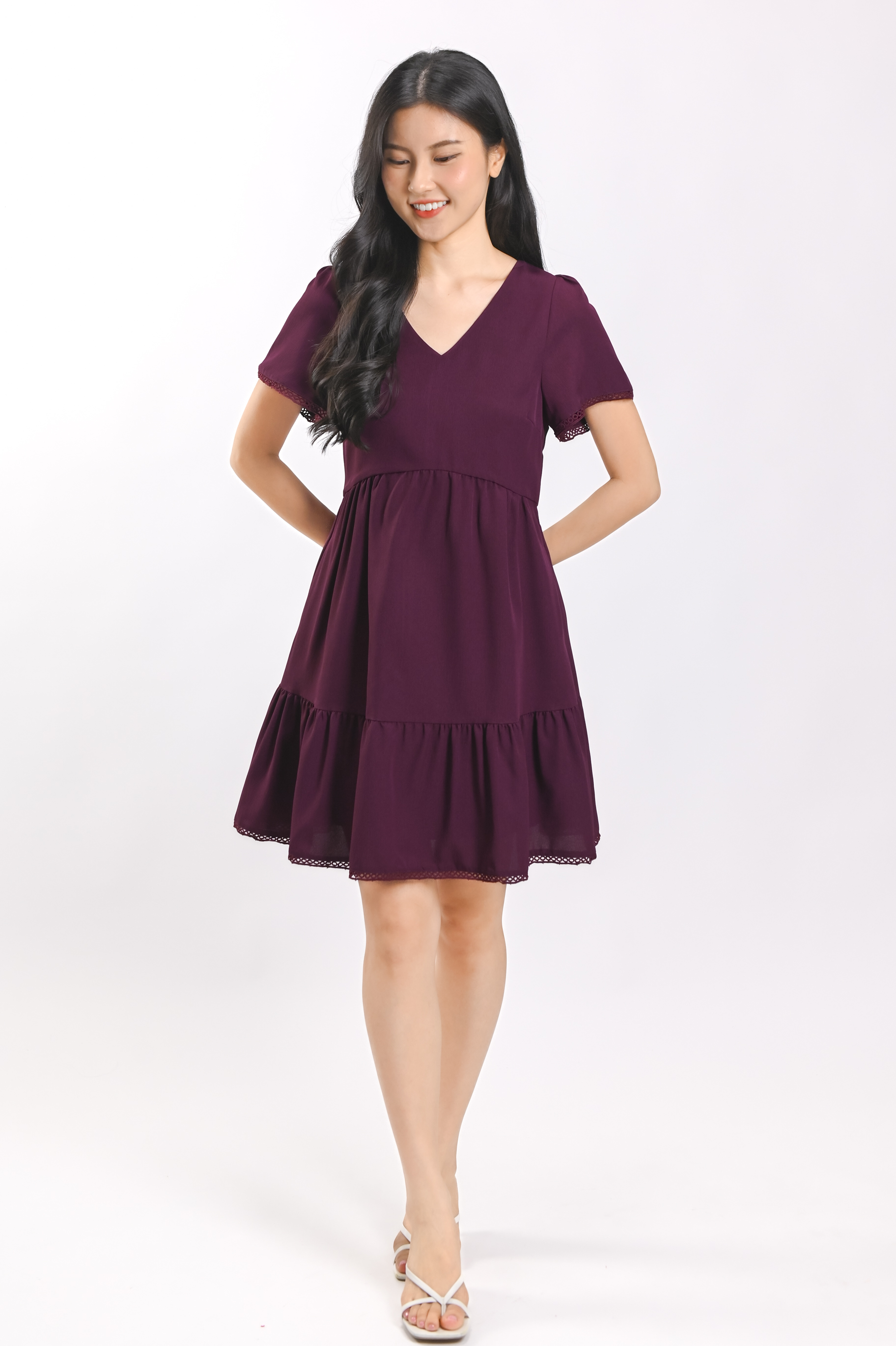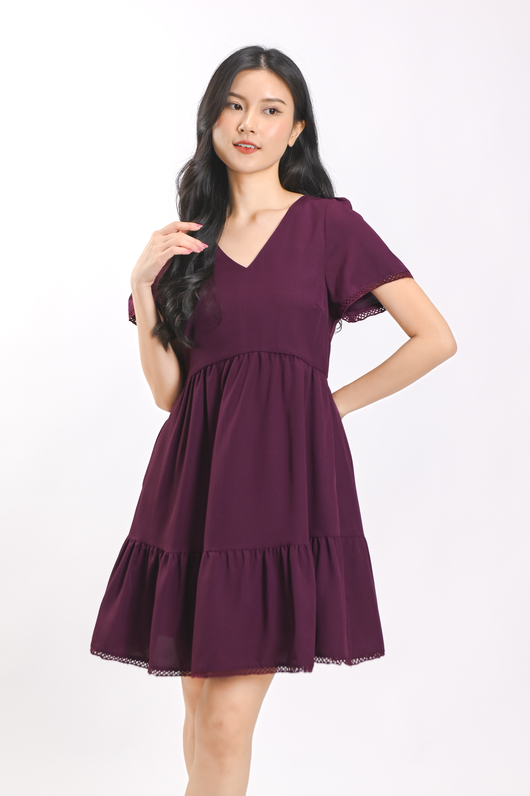 LIVIA LACE-TRIM SLEEVED DRESS IN MAROON