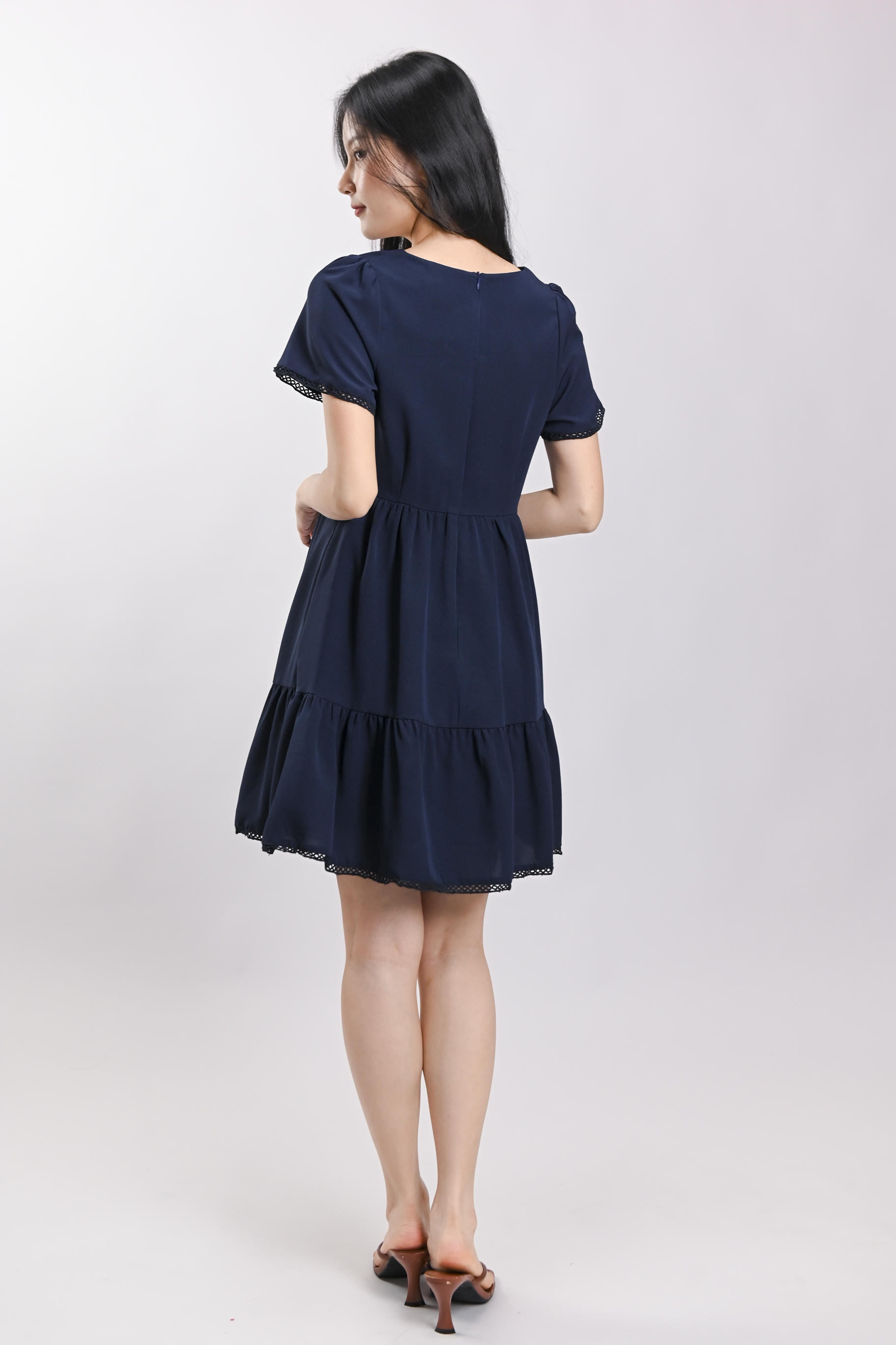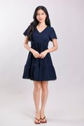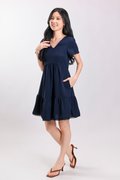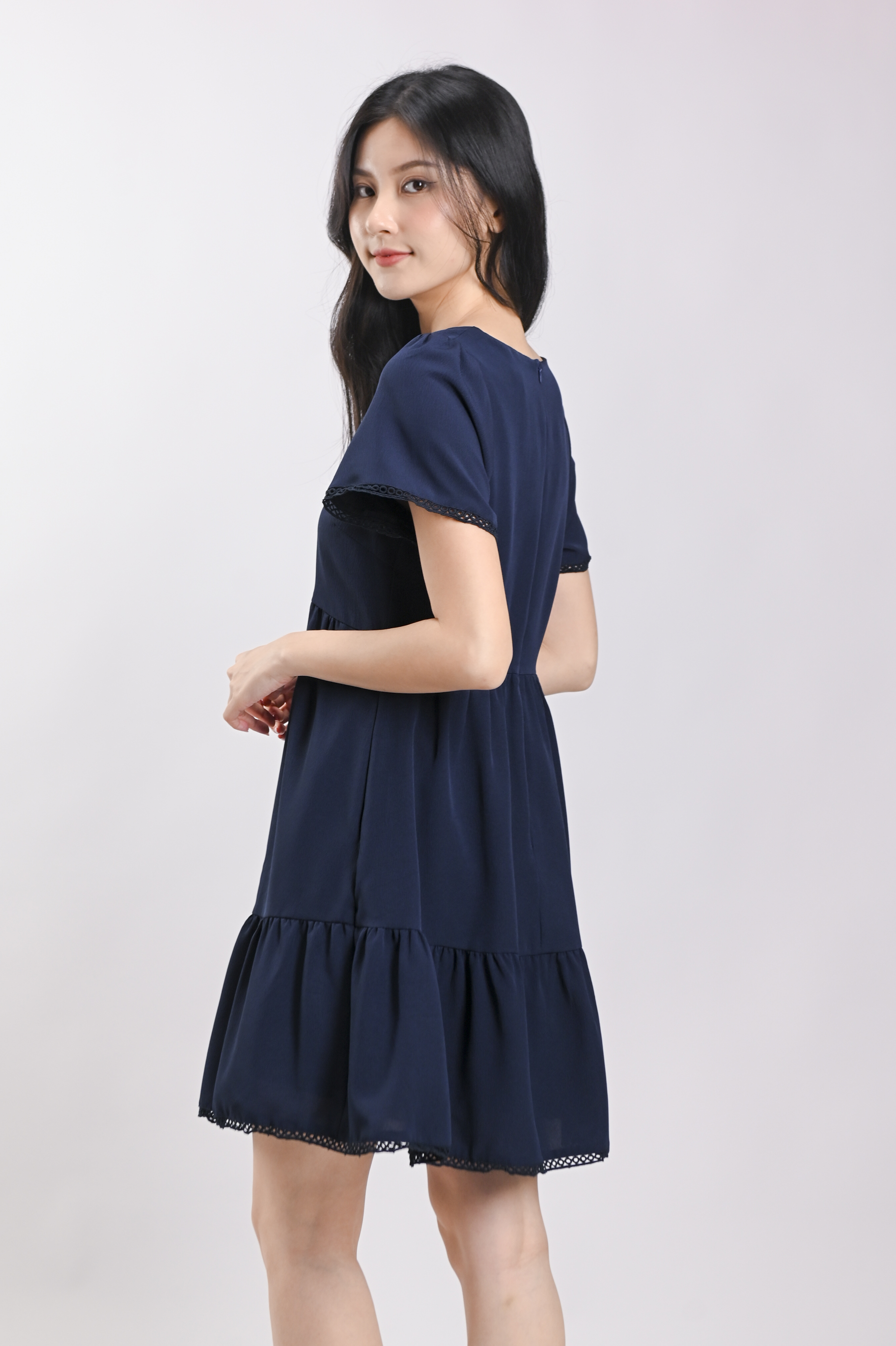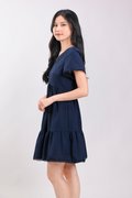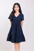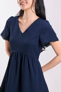 LIVIA LACE-TRIM SLEEVED DRESS IN NAVY
