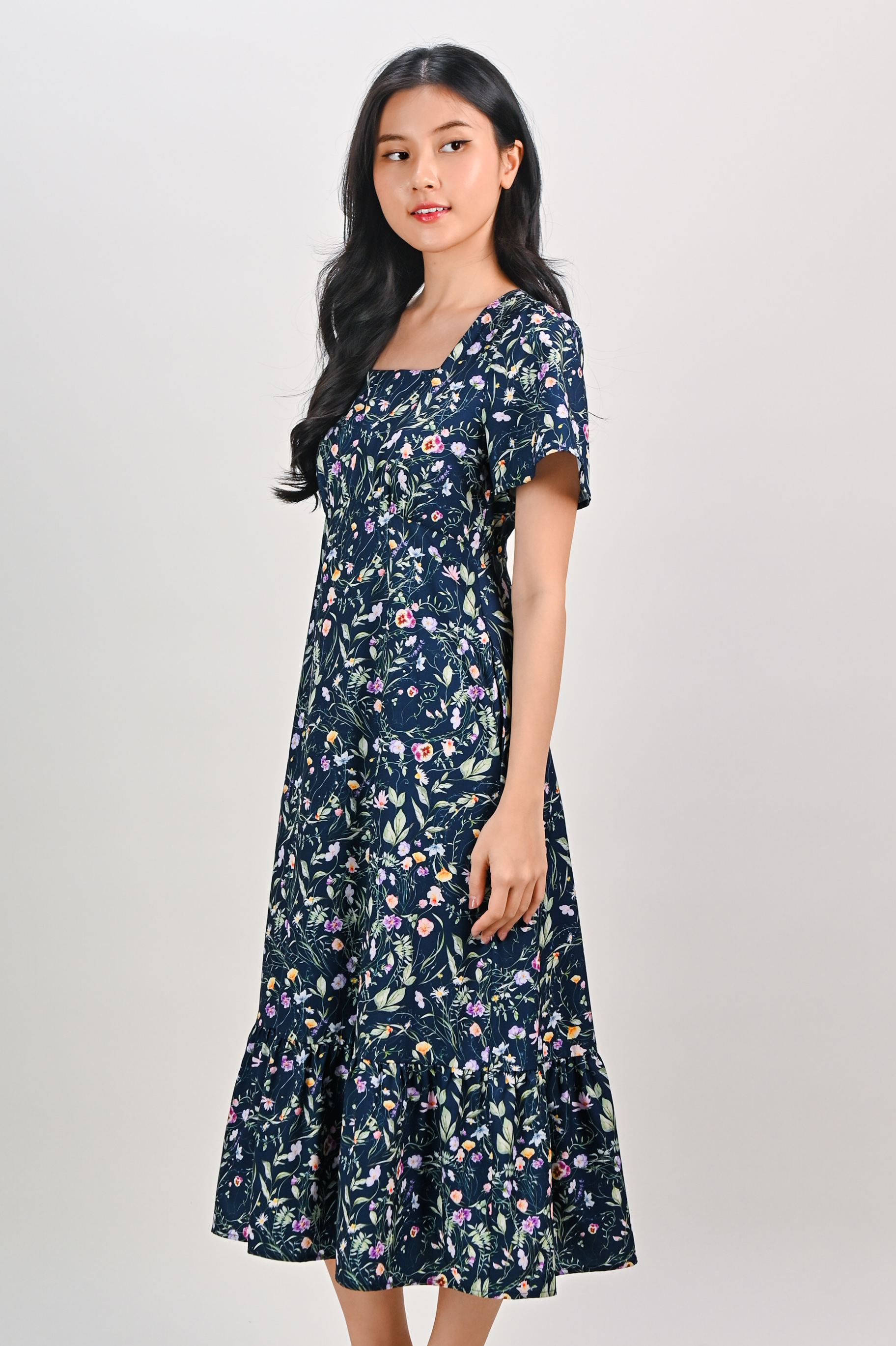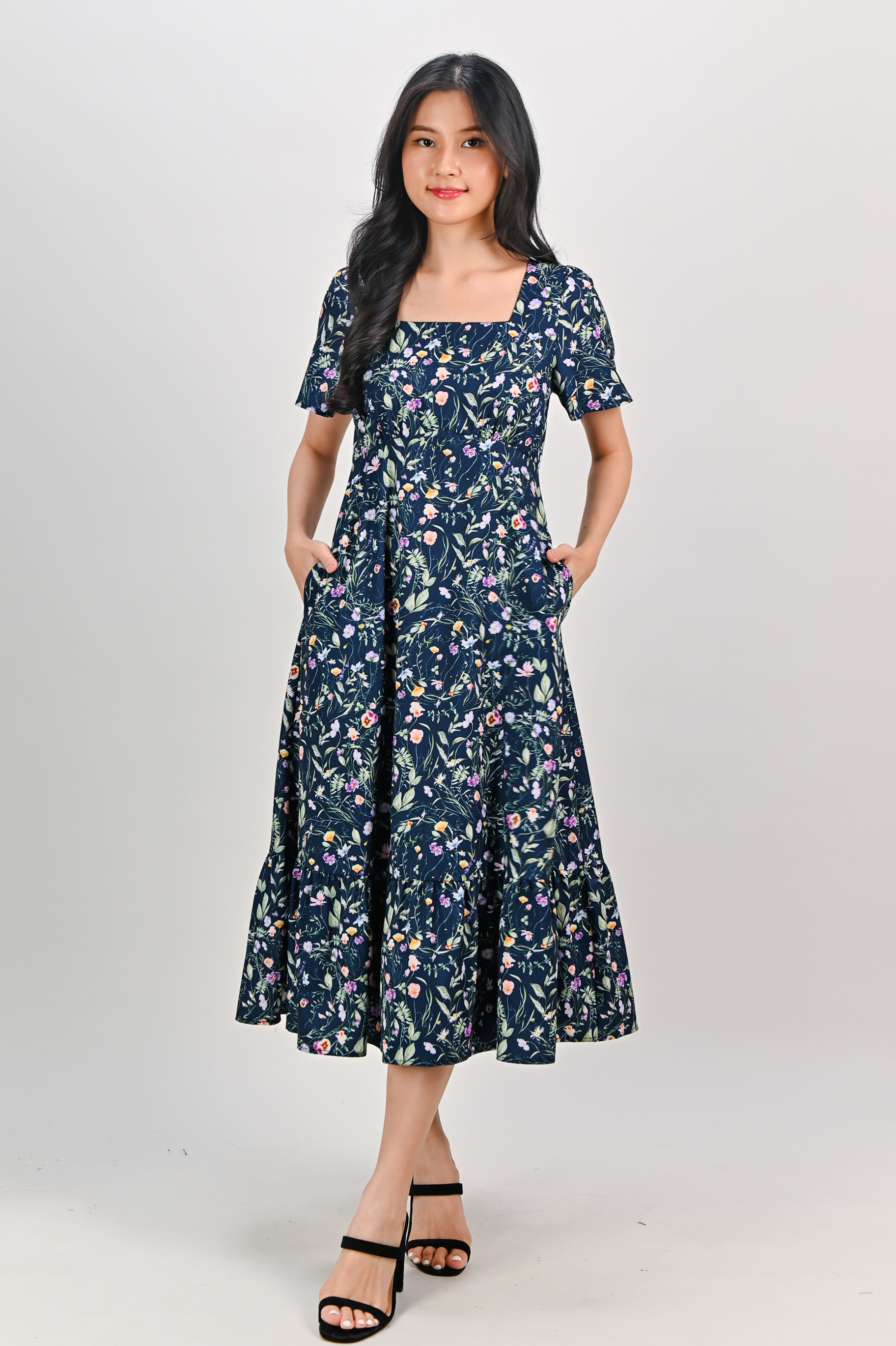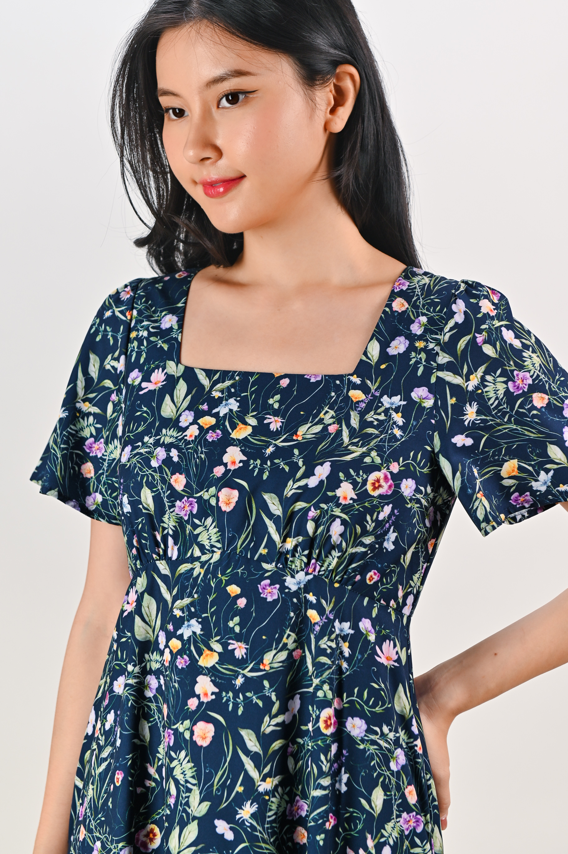 LOLA’S GARDEN SQUARE-NECK DRESS IN NAVY