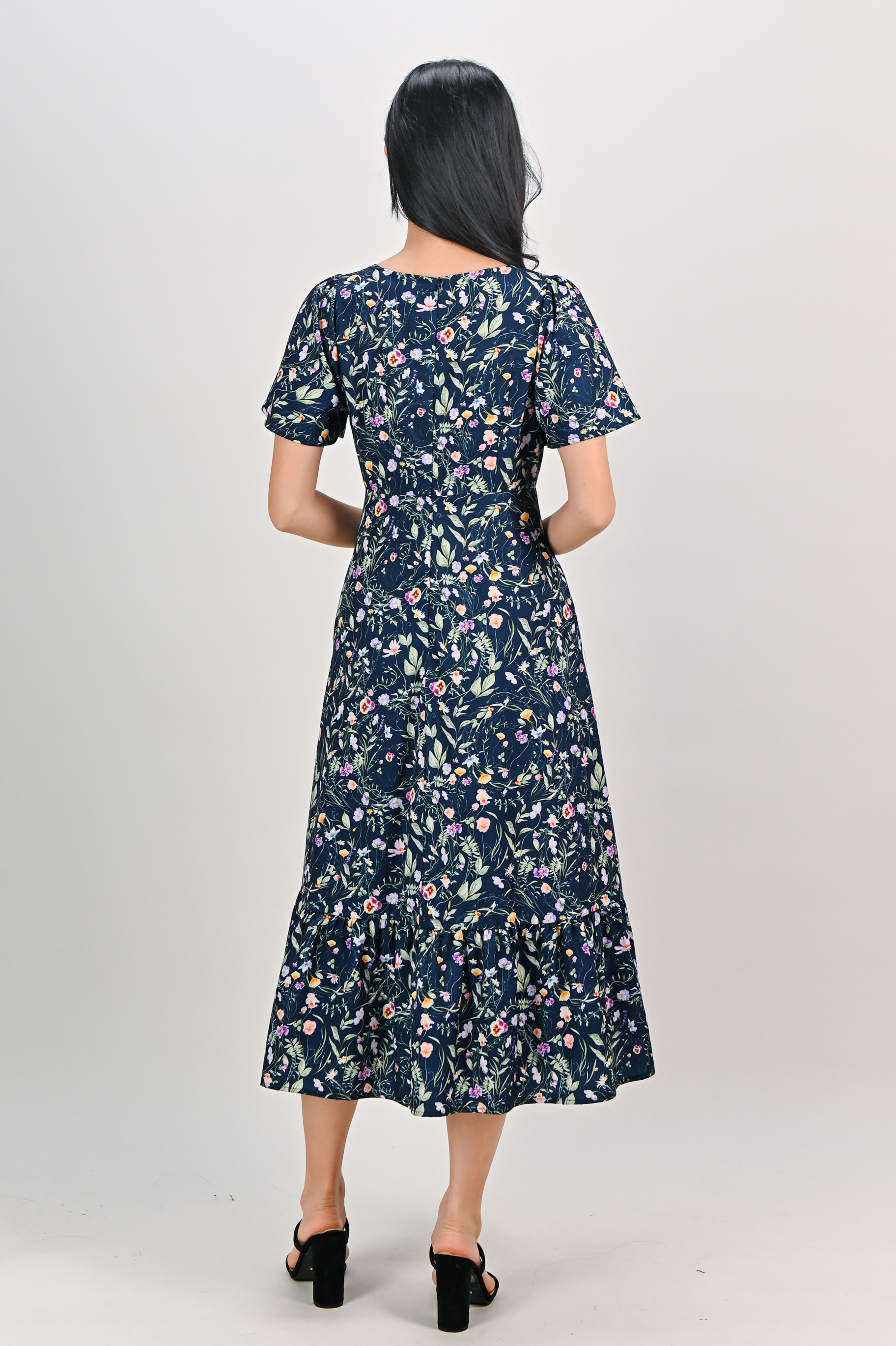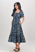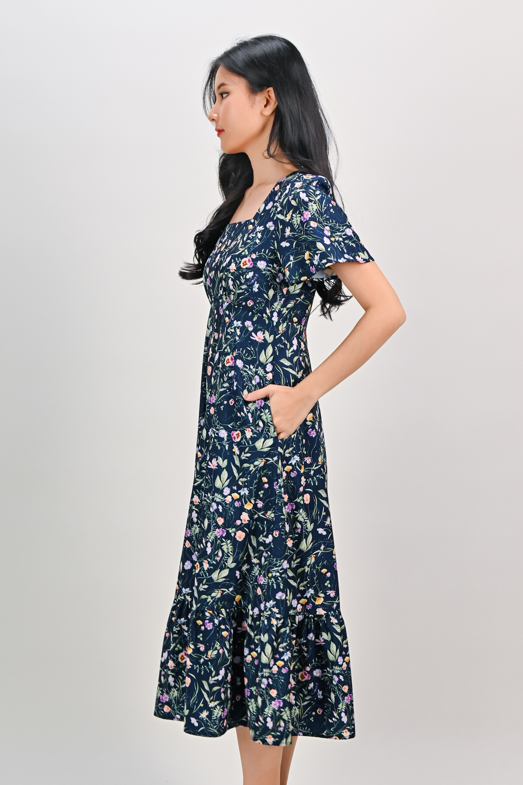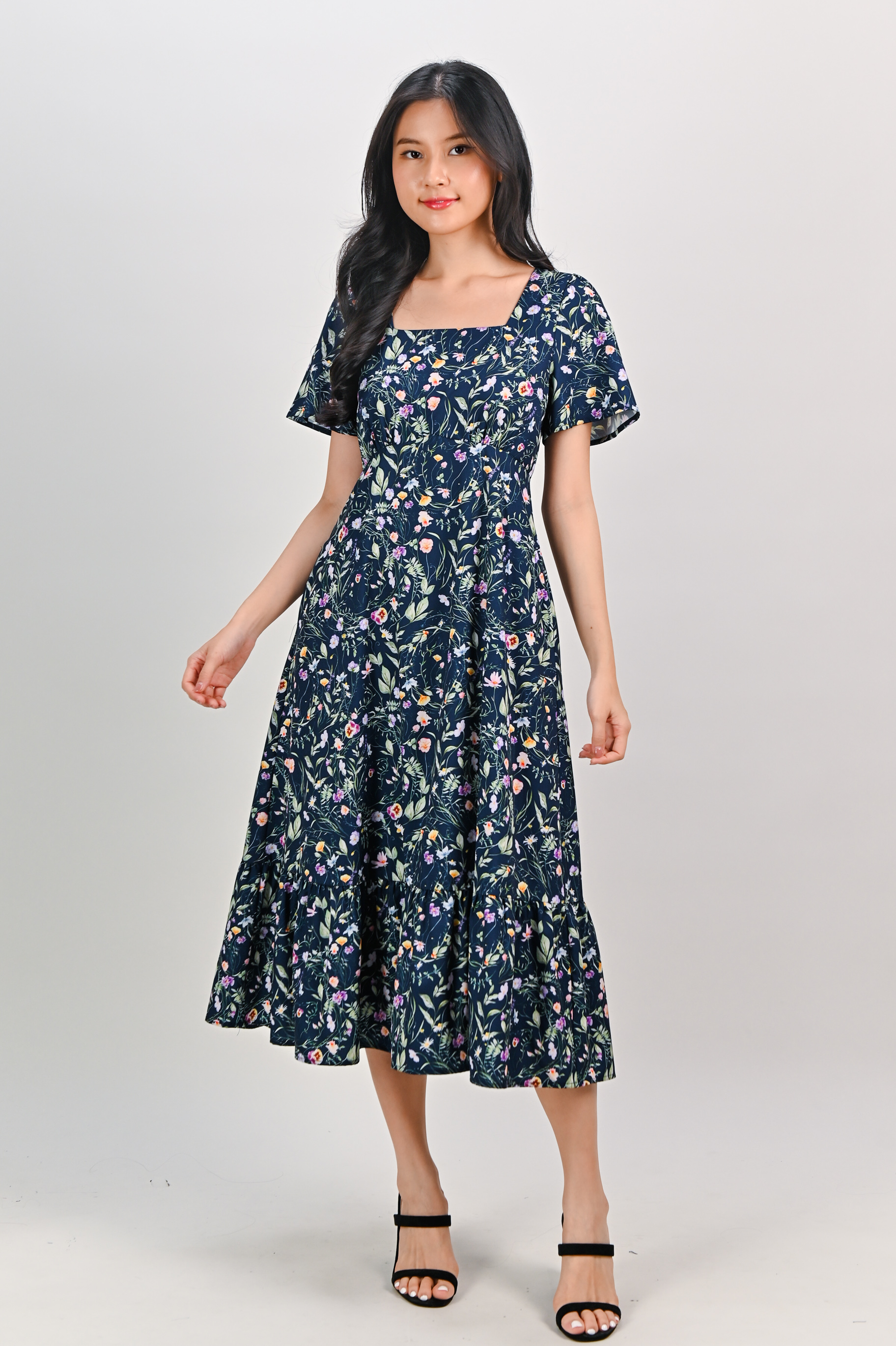 LOLA’S GARDEN SQUARE-NECK DRESS IN NAVY