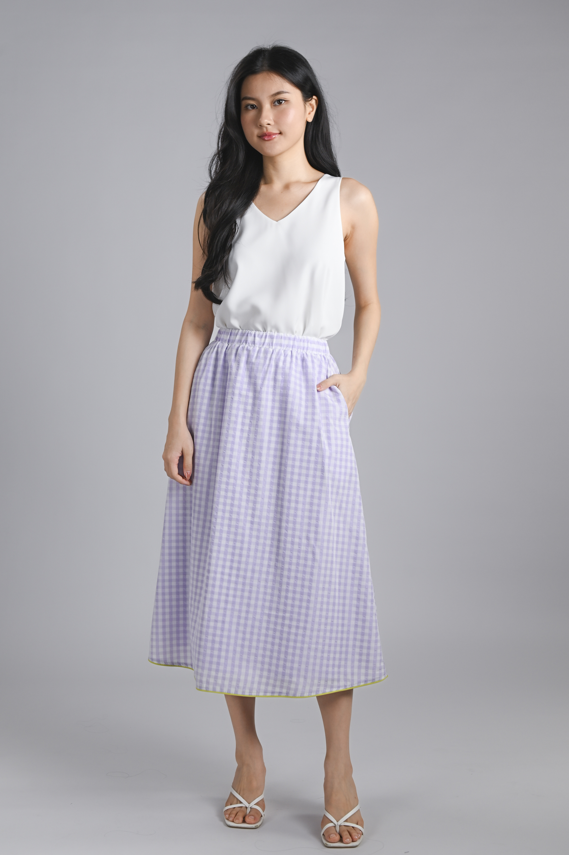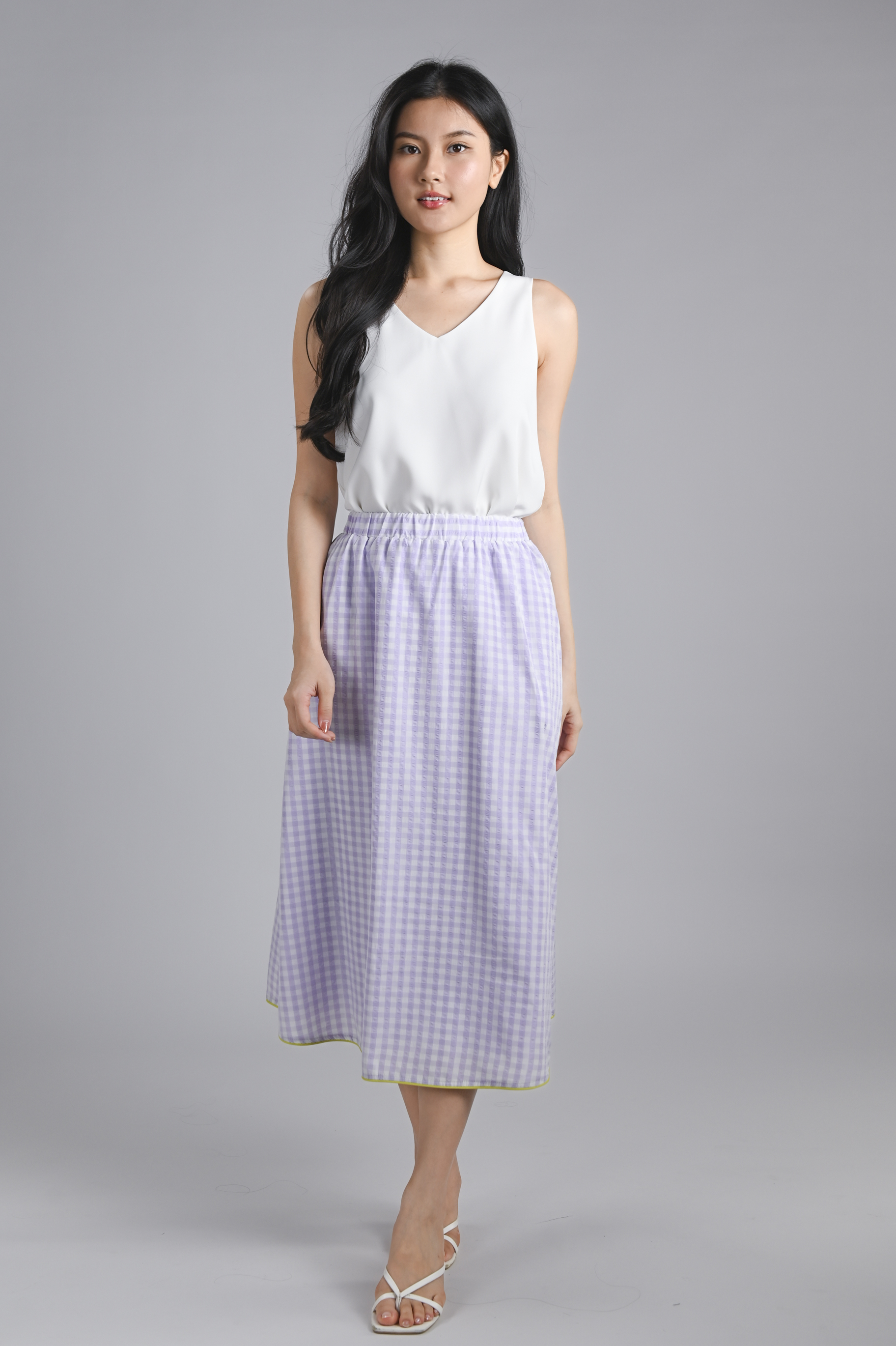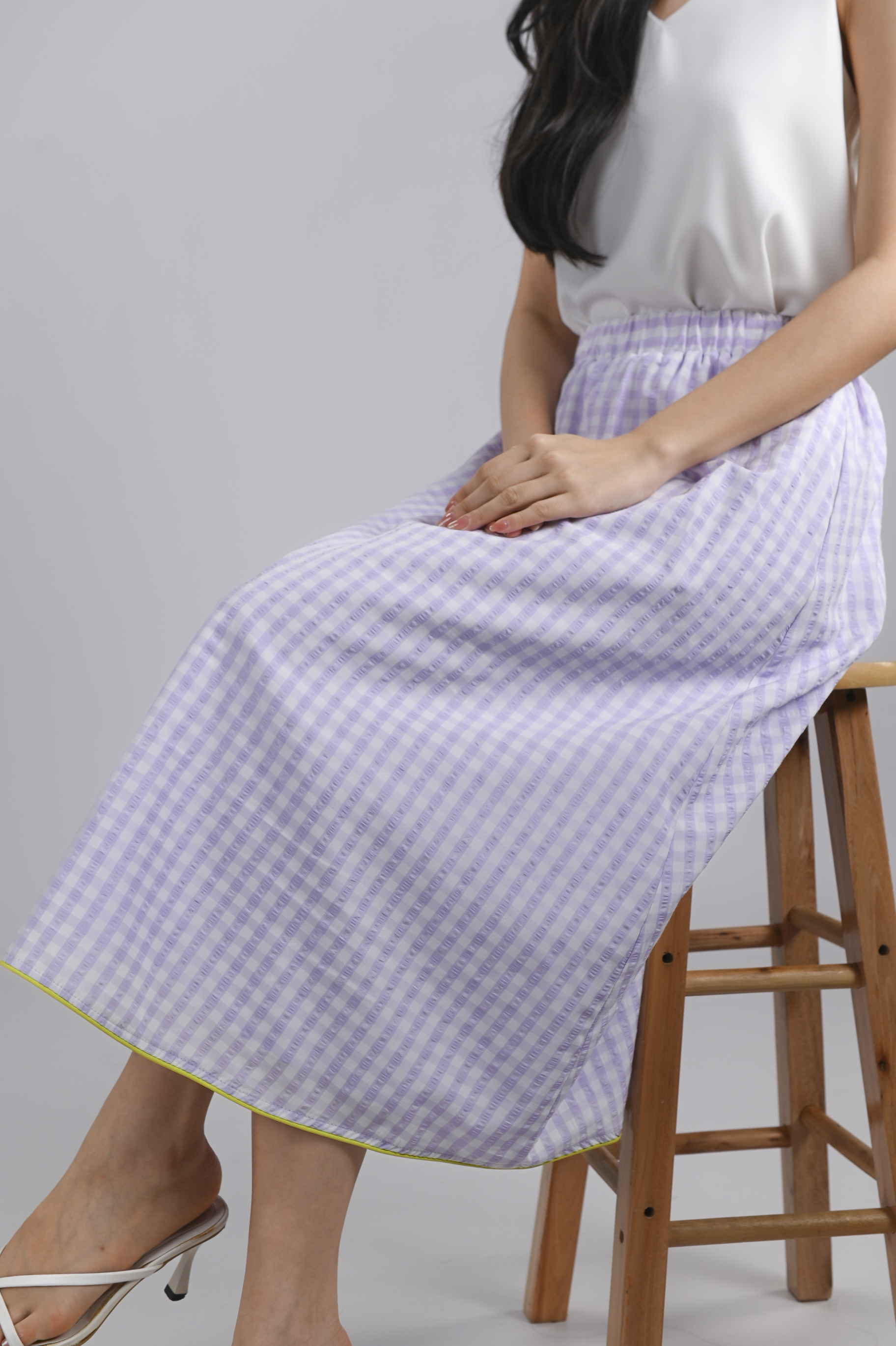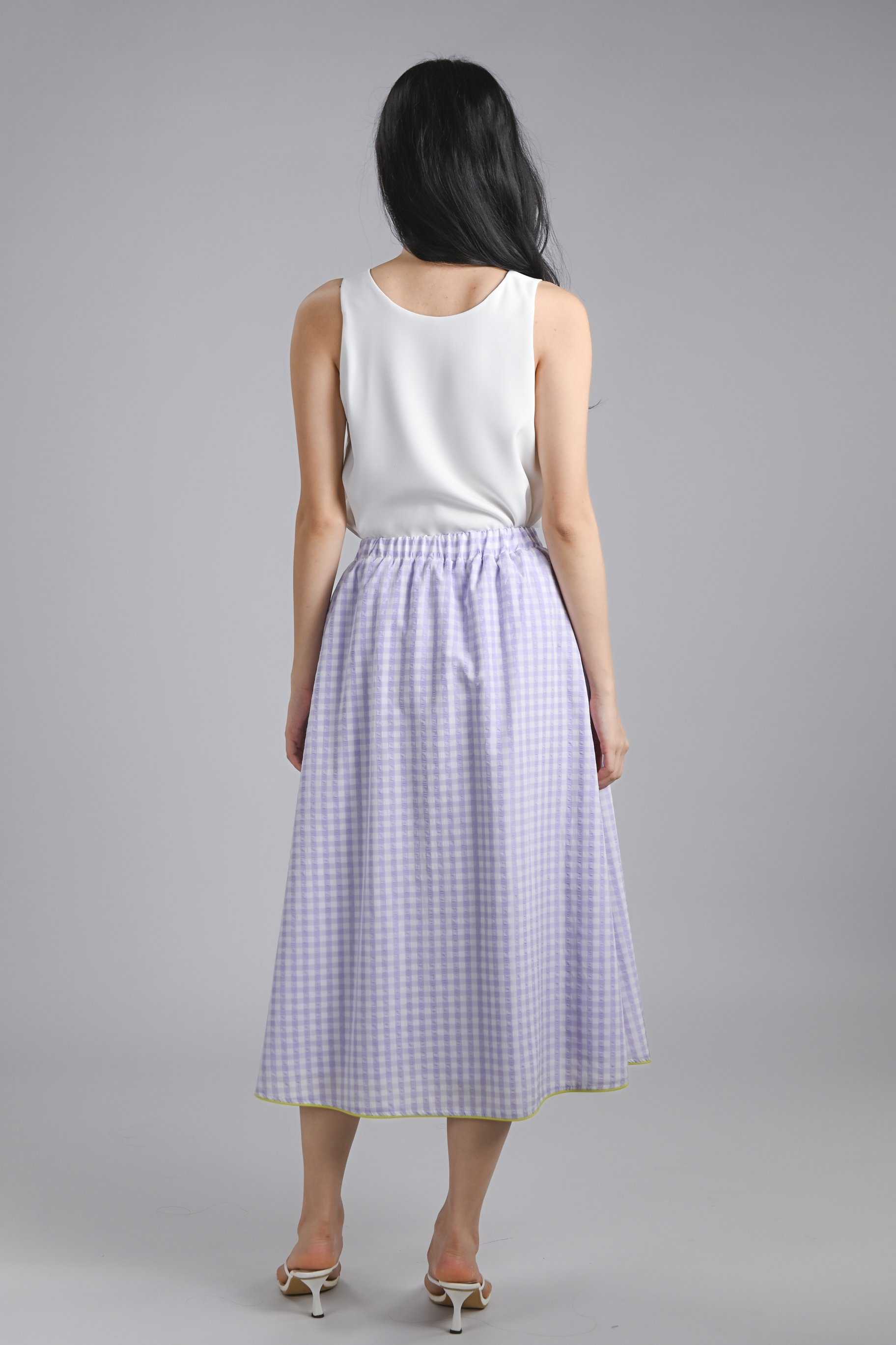 LOTTIE GINGHAM ELASTIC-WAIST SKIRT IN LILAC