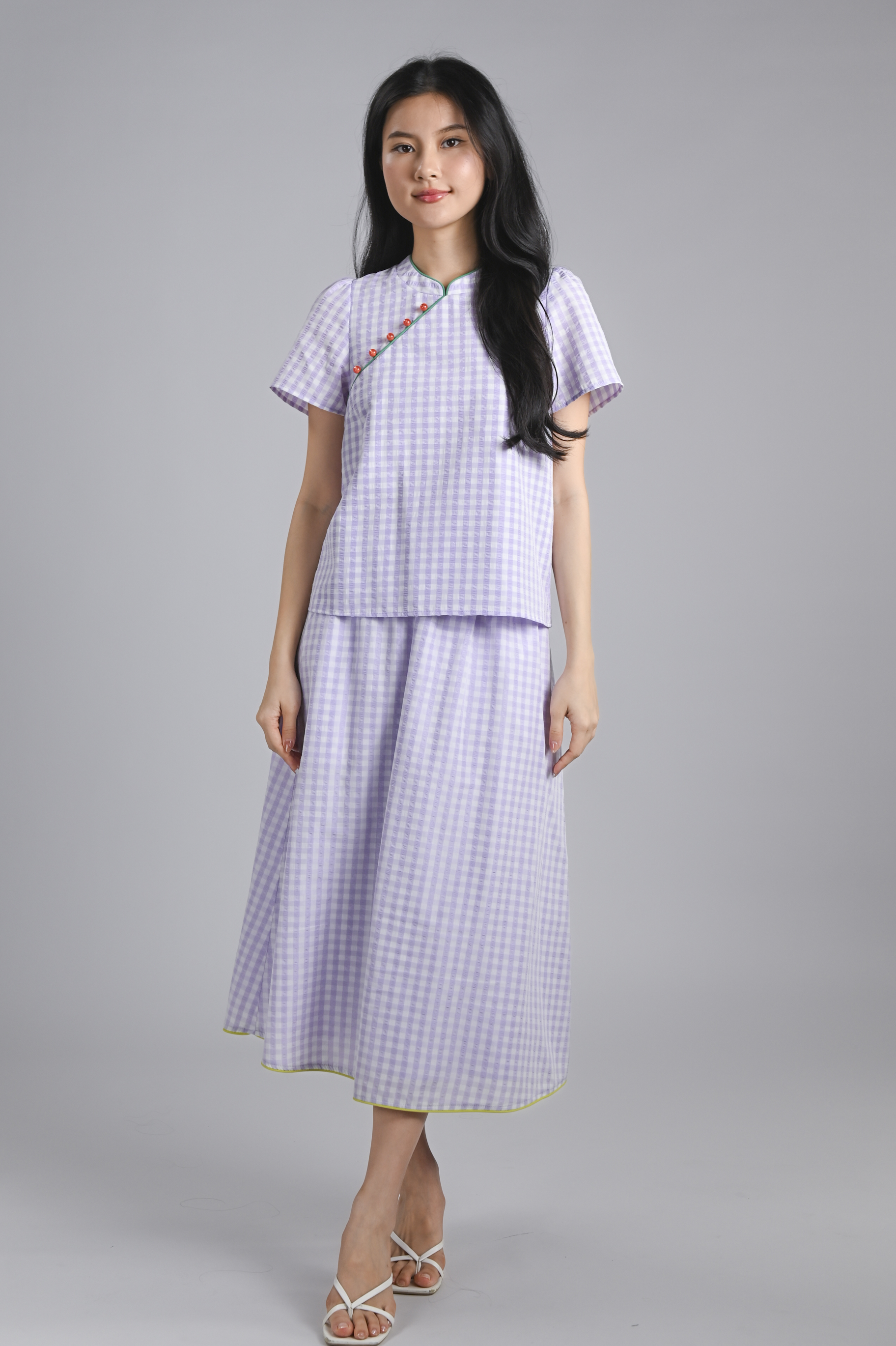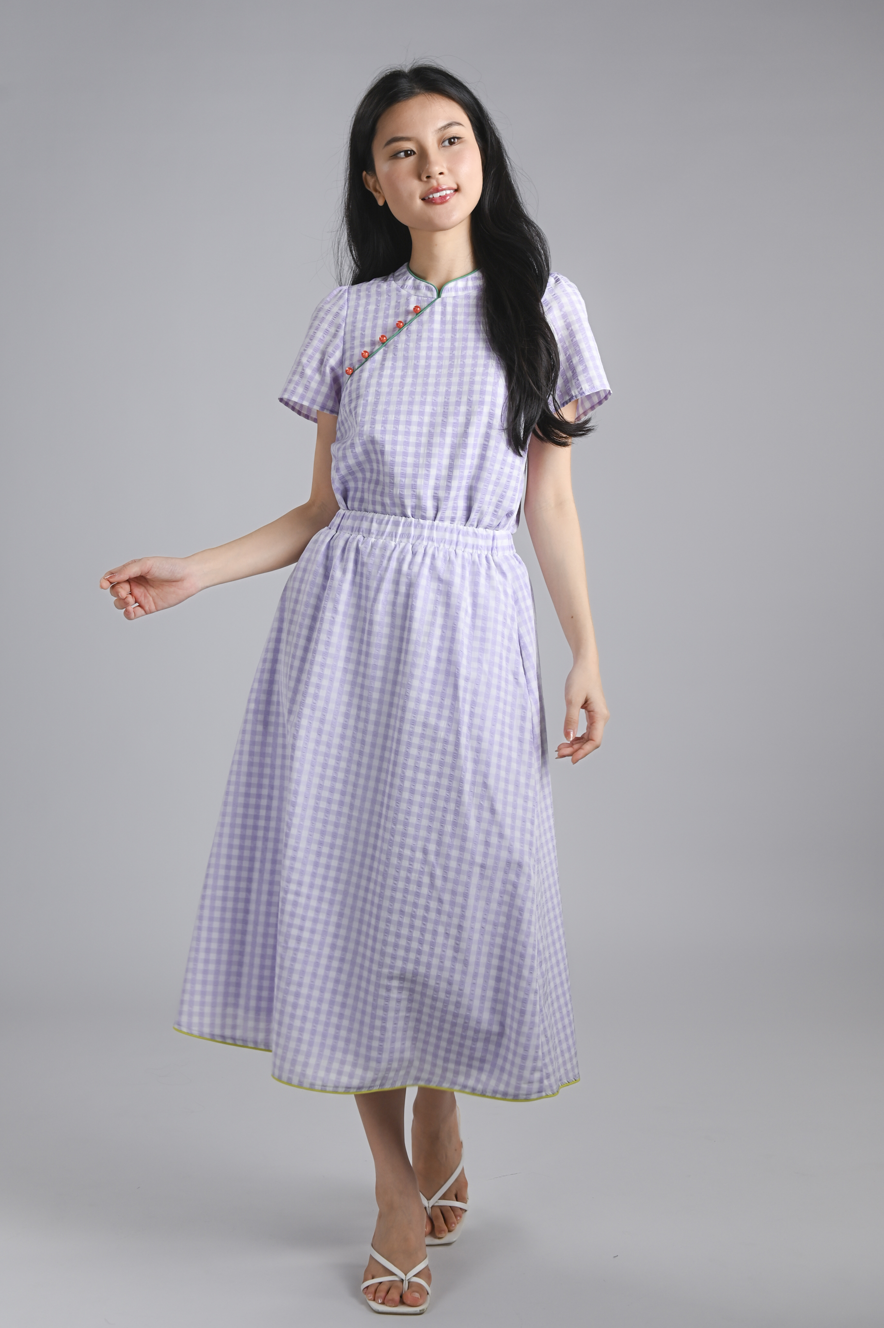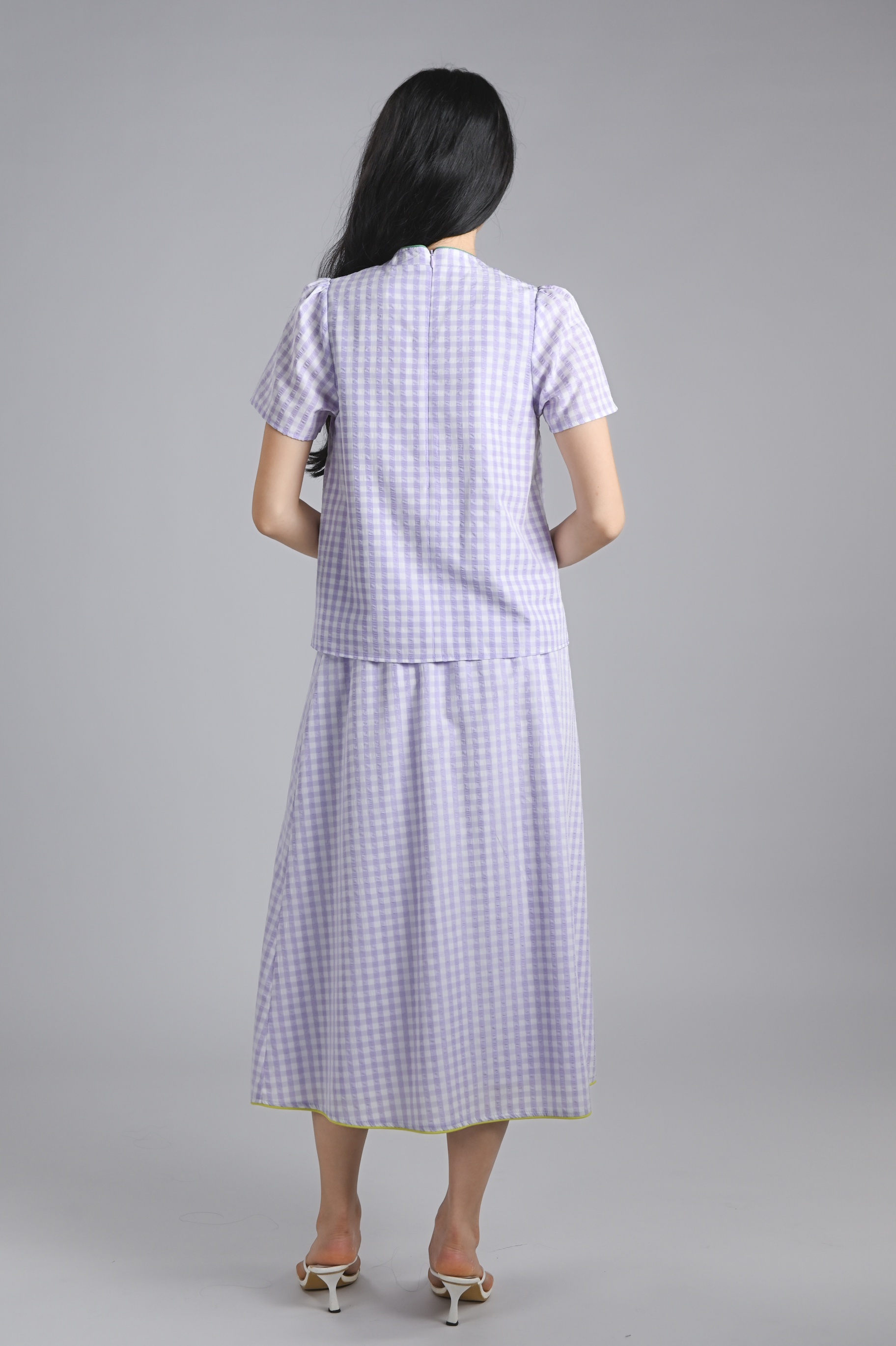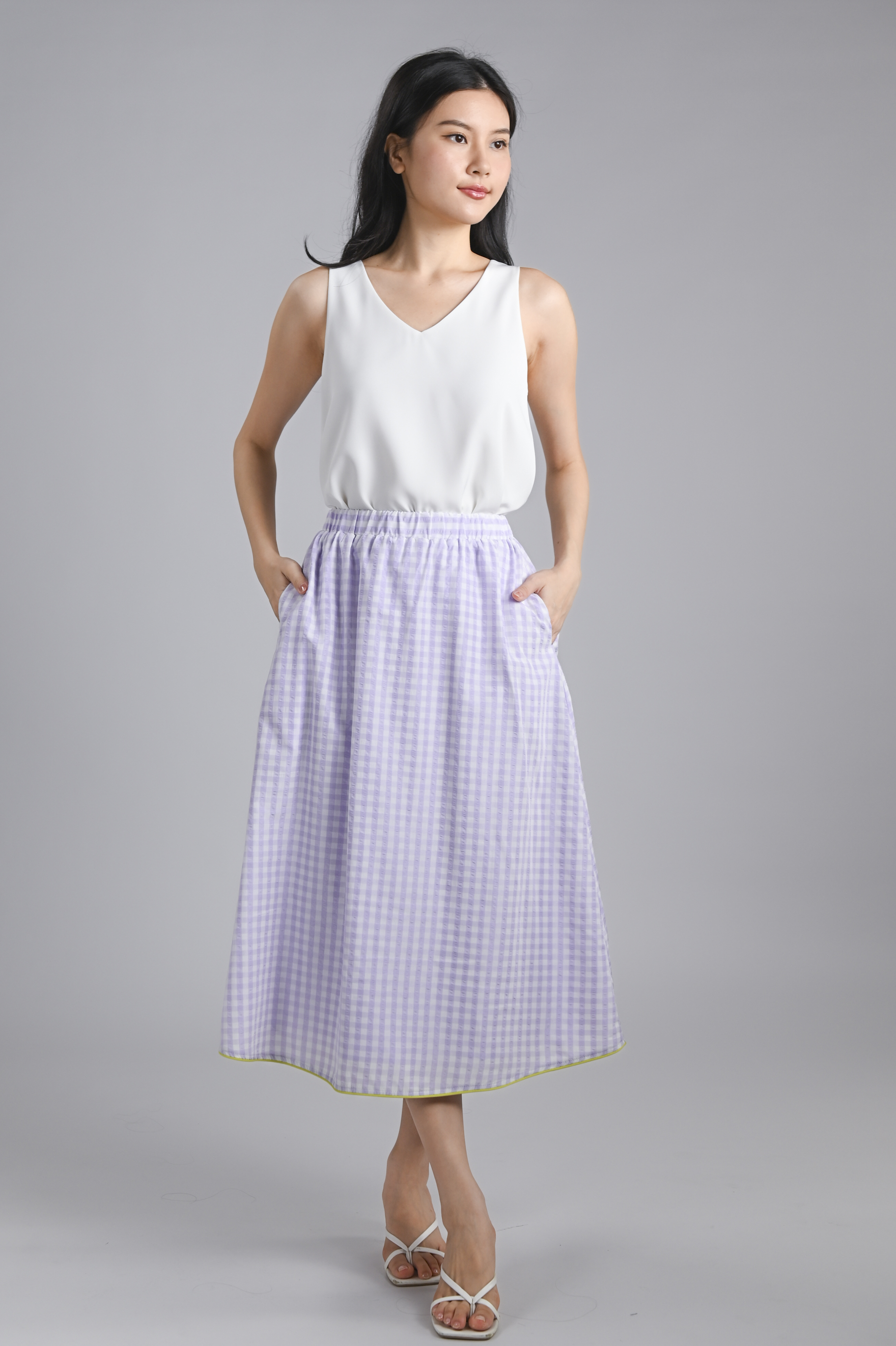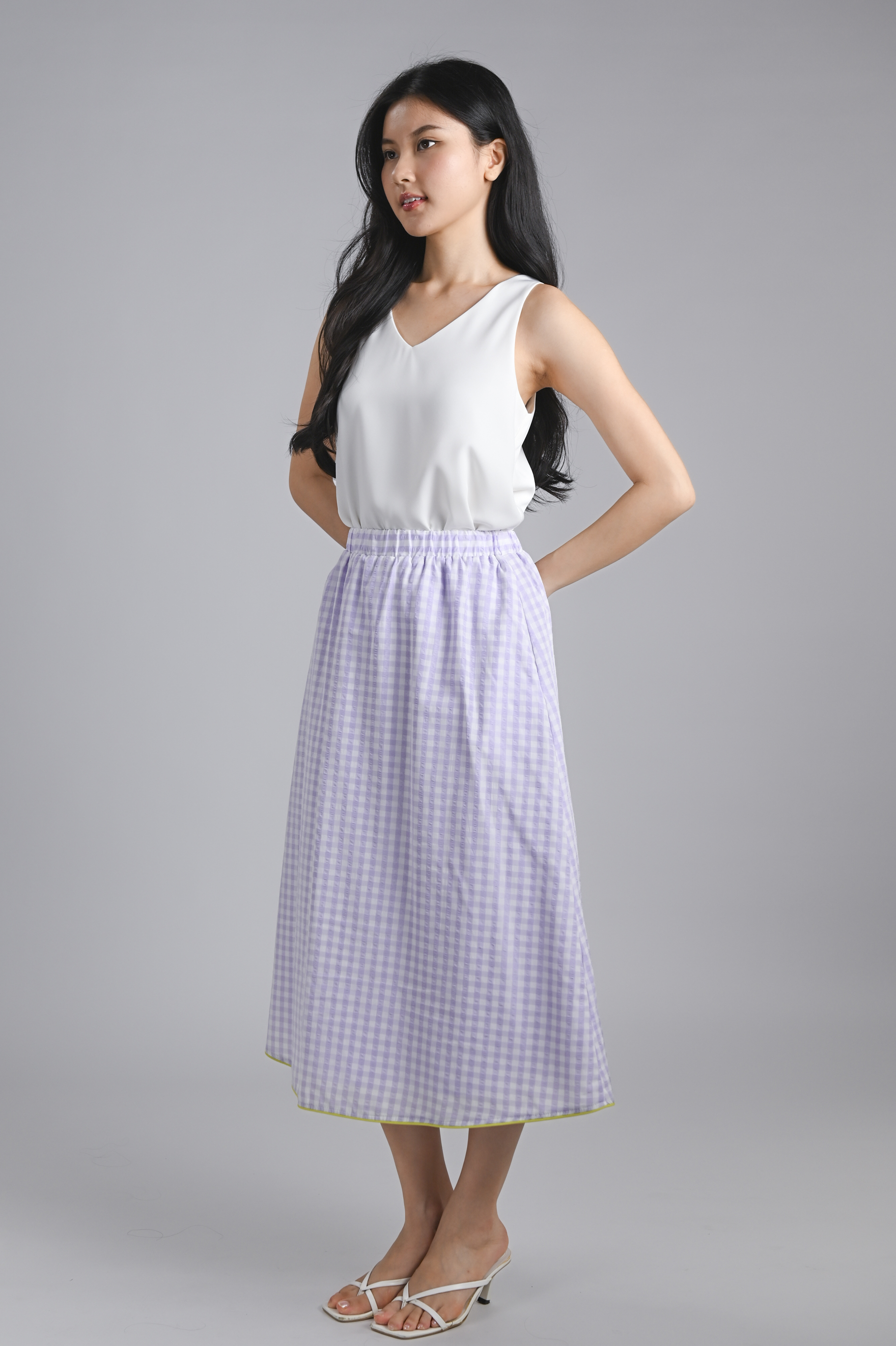 LOTTIE GINGHAM ELASTIC-WAIST SKIRT IN LILAC