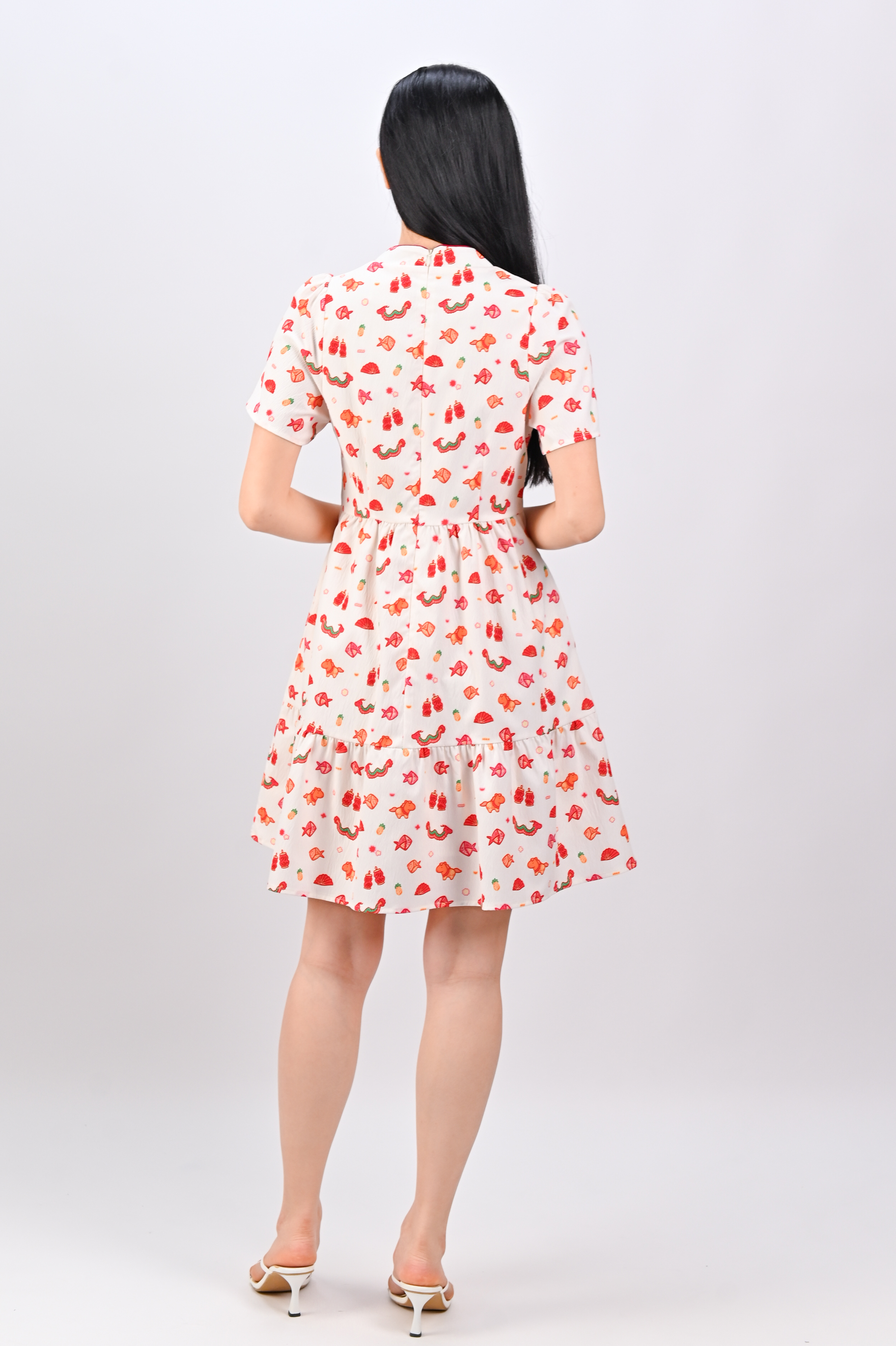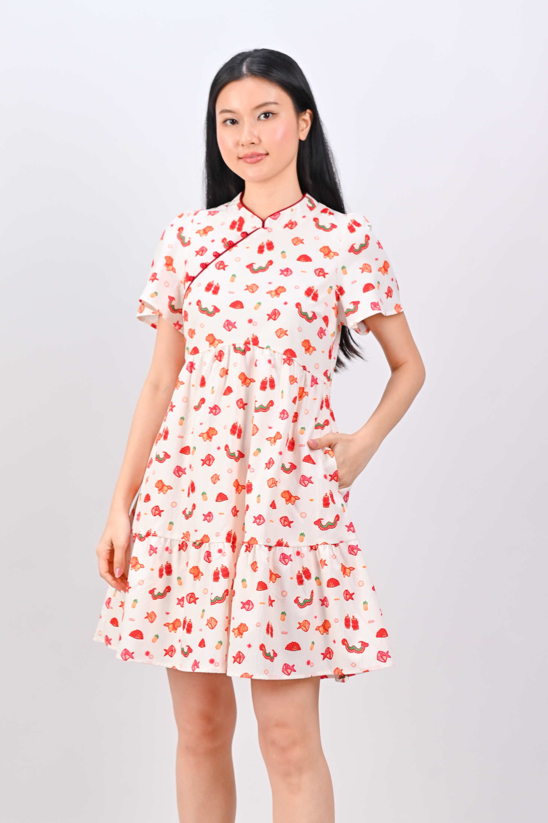 LUCKY CHARMS SLEEVED CHEONGSAM DRESS